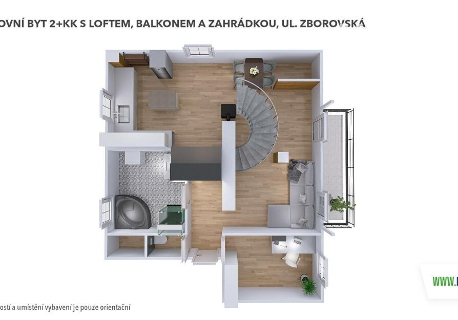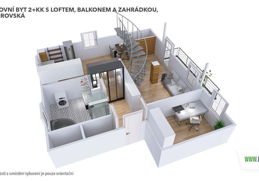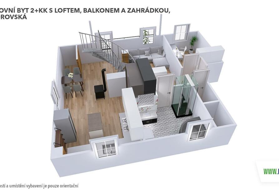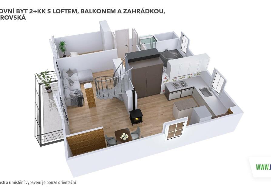 Hledáte k pronájmu něco opravdu specifického? Tak to vás tento byt po rekonstrukci ve velmi zajímavém designu s „nebeským předpokojem“ a zahrádkou určitě zaujme!