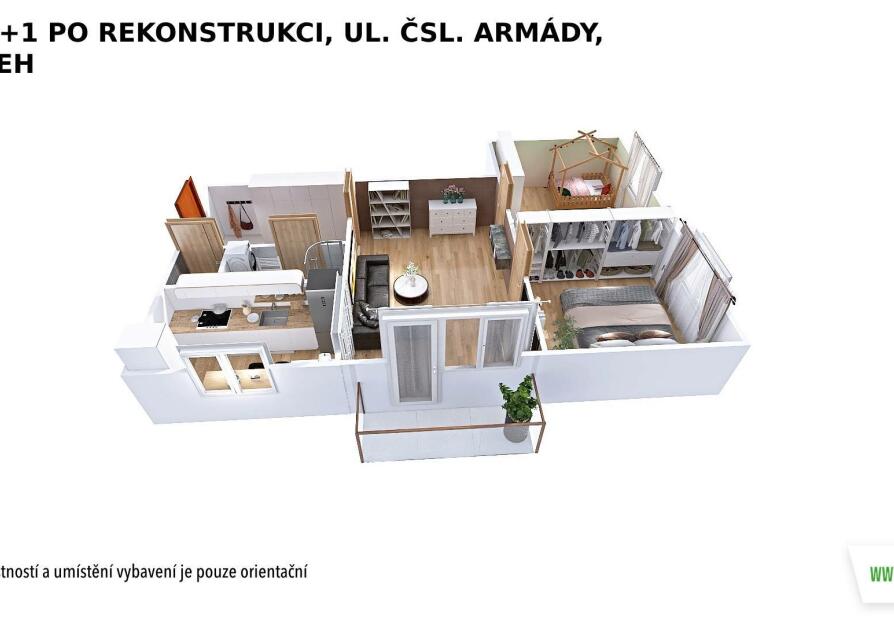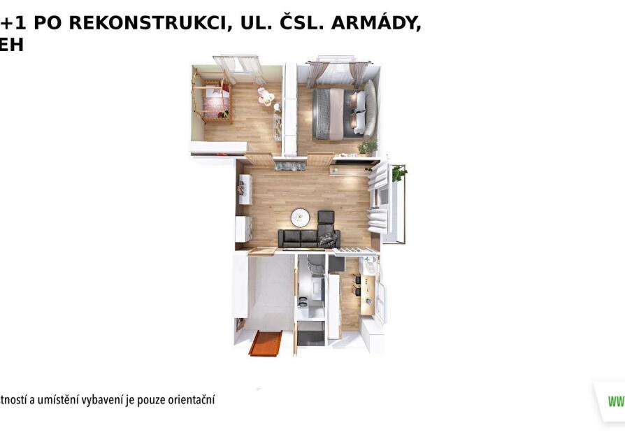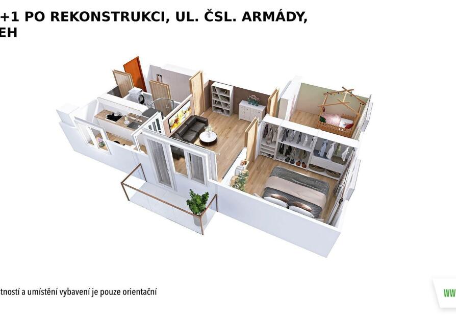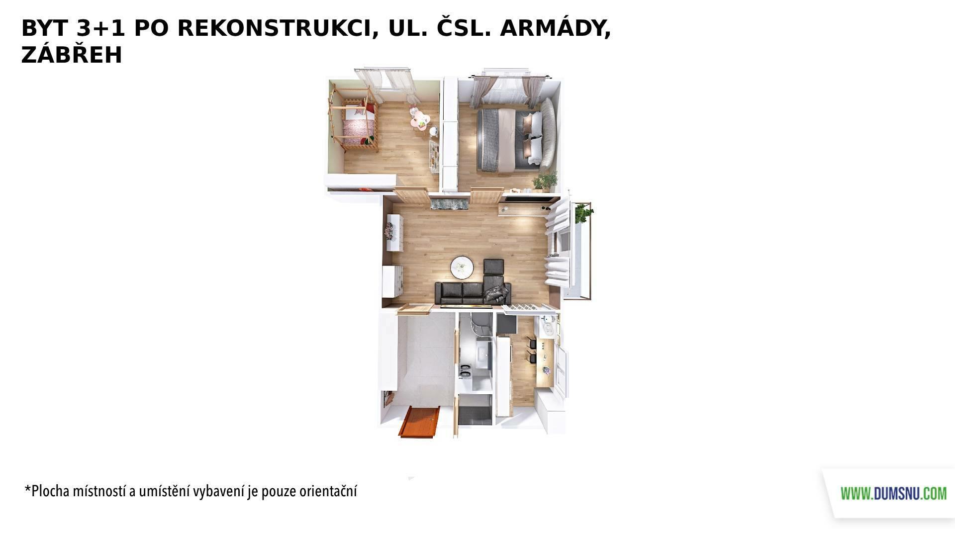 K pronájmu nabízíme zrekonstruovaný byt s balkonem o dispozici 3+1, který se nachází v 5. NP revitalizovaného panelového domu bez výtahu.
