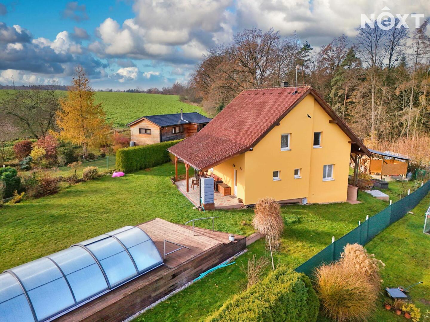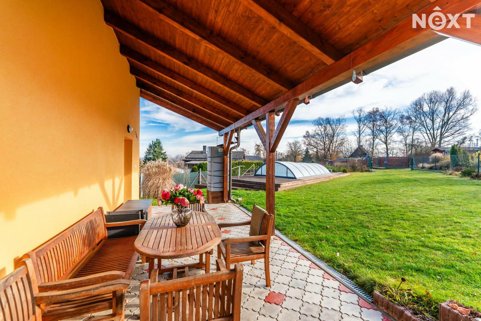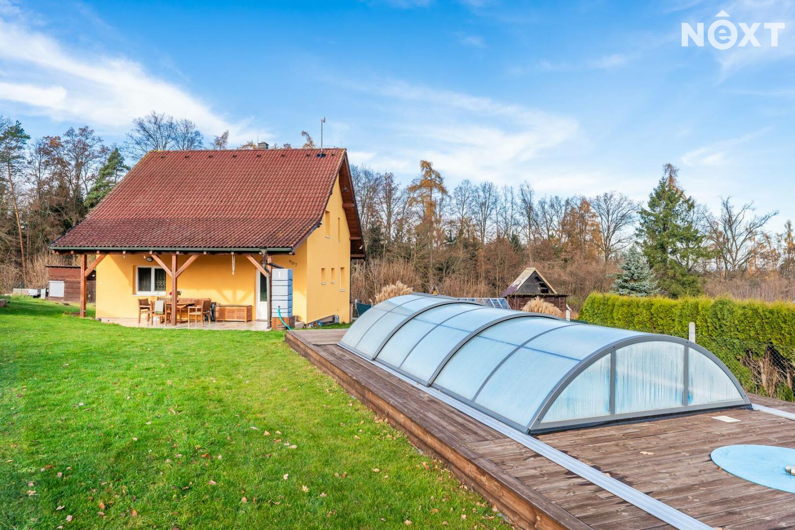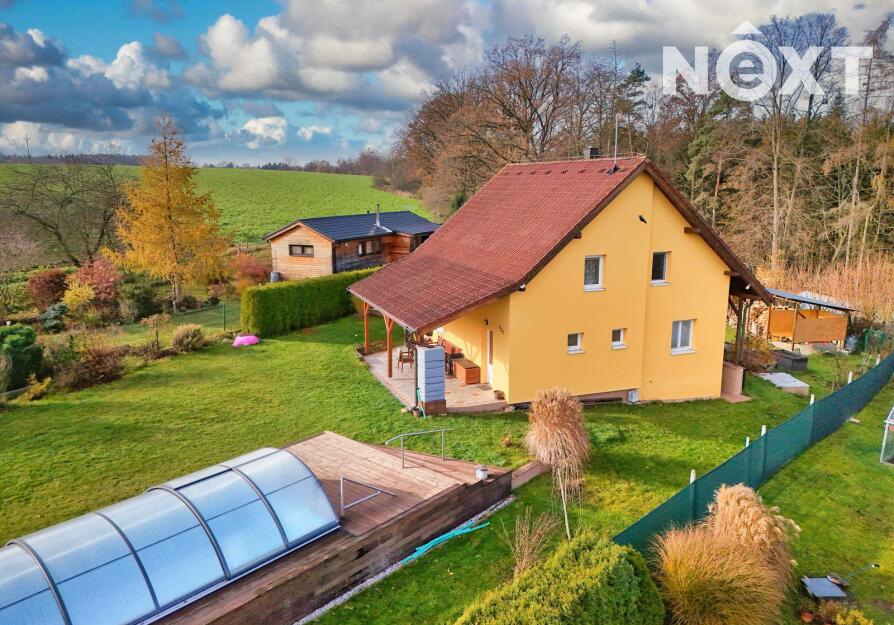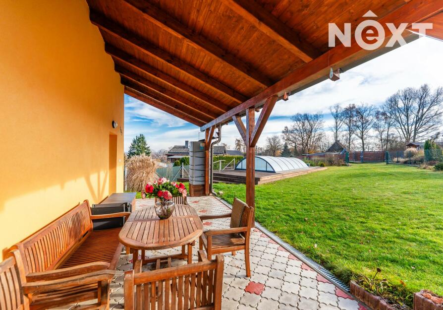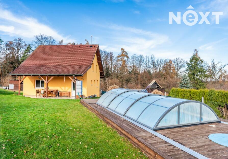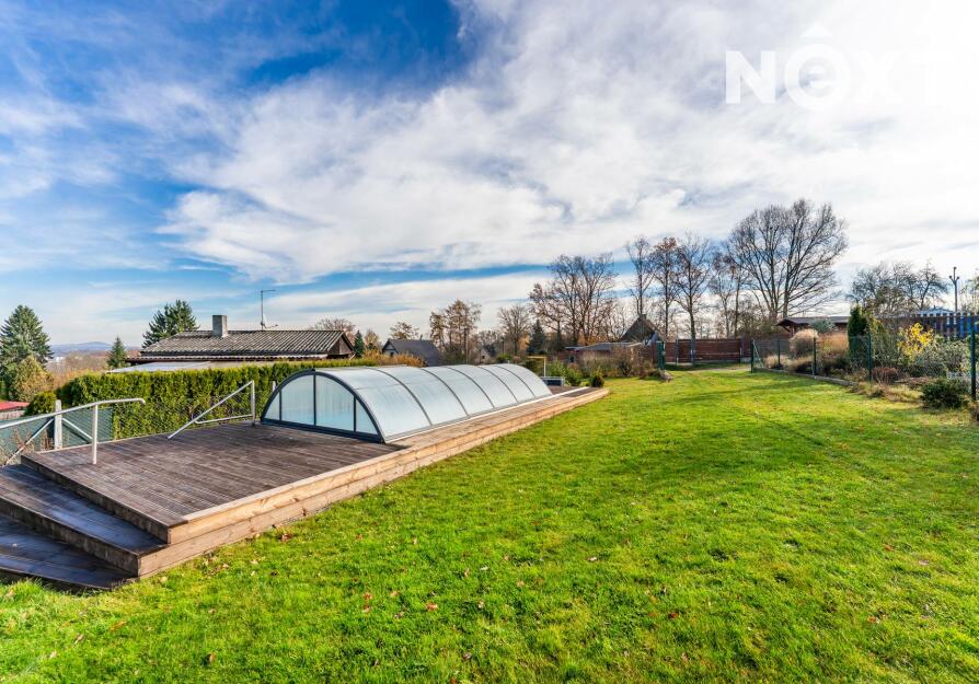 Velkorysý pozemek o rozloze 1 495 m² poskytuje naprosté soukromí a krásný prostor obklopený zelení. Na zahradě najdete zastřešený 7metrový bazén, který nabízí relaxaci po velkou část roku. K tomu příjemná zastřešená terasa, ideální pro večerní posezení, grilování nebo odpočinek u kávy. Částečné podsklepení se sklepem o 10 m² je praktickým místem pro uskladnění vybavení i sezónních věcí.