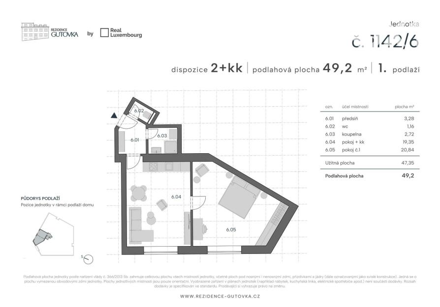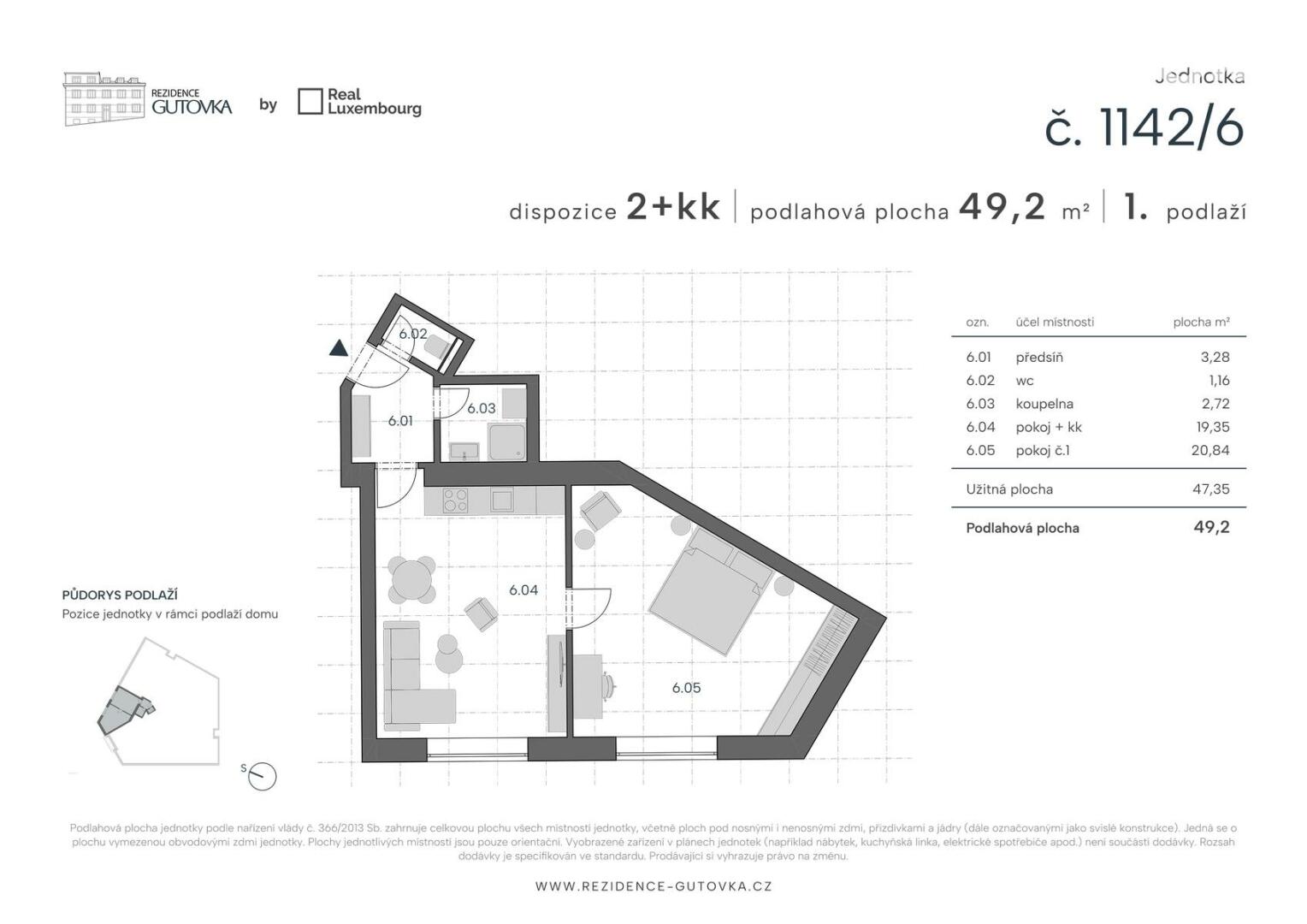 K prodeji nabízíme moderní a nově zrekonstruovanou jednotku s dispozicí 2+KK umístěnou v 1. nadzemním podlaží s celkovou plochou 49,2 m2.
