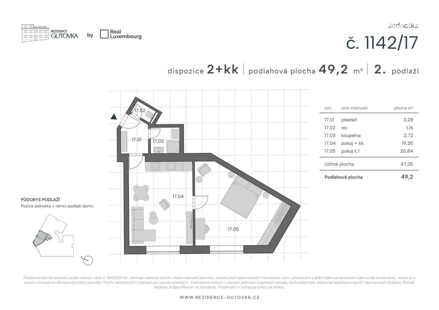 K prodeji nabízíme moderní a nově zrekonstruovanou jednotku s dispozicí 2+KK umístěnou na 2. nadzemním podlaží s celkovou plochou 49,2 m2.