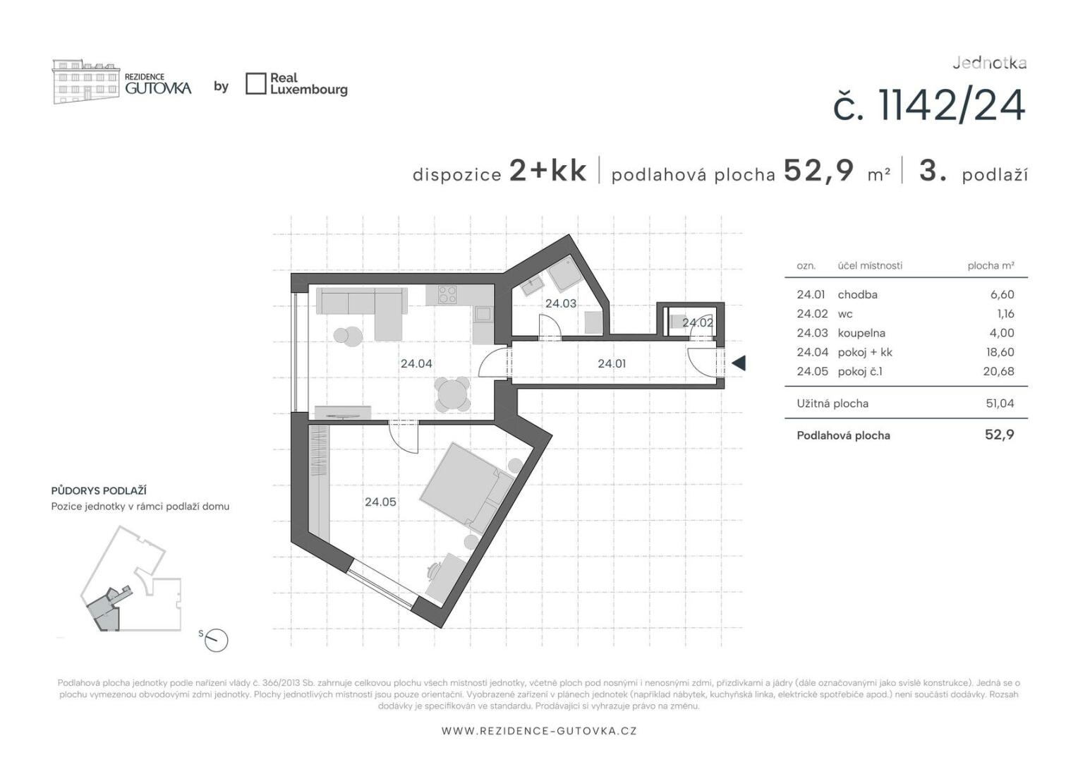 K prodeji nabízíme moderní a nově zrekonstruovanou jednotku s dispozicí 2+KK umístěnou ve 3. nadzemním podlaží s celkovou plochou 49,2 m2.