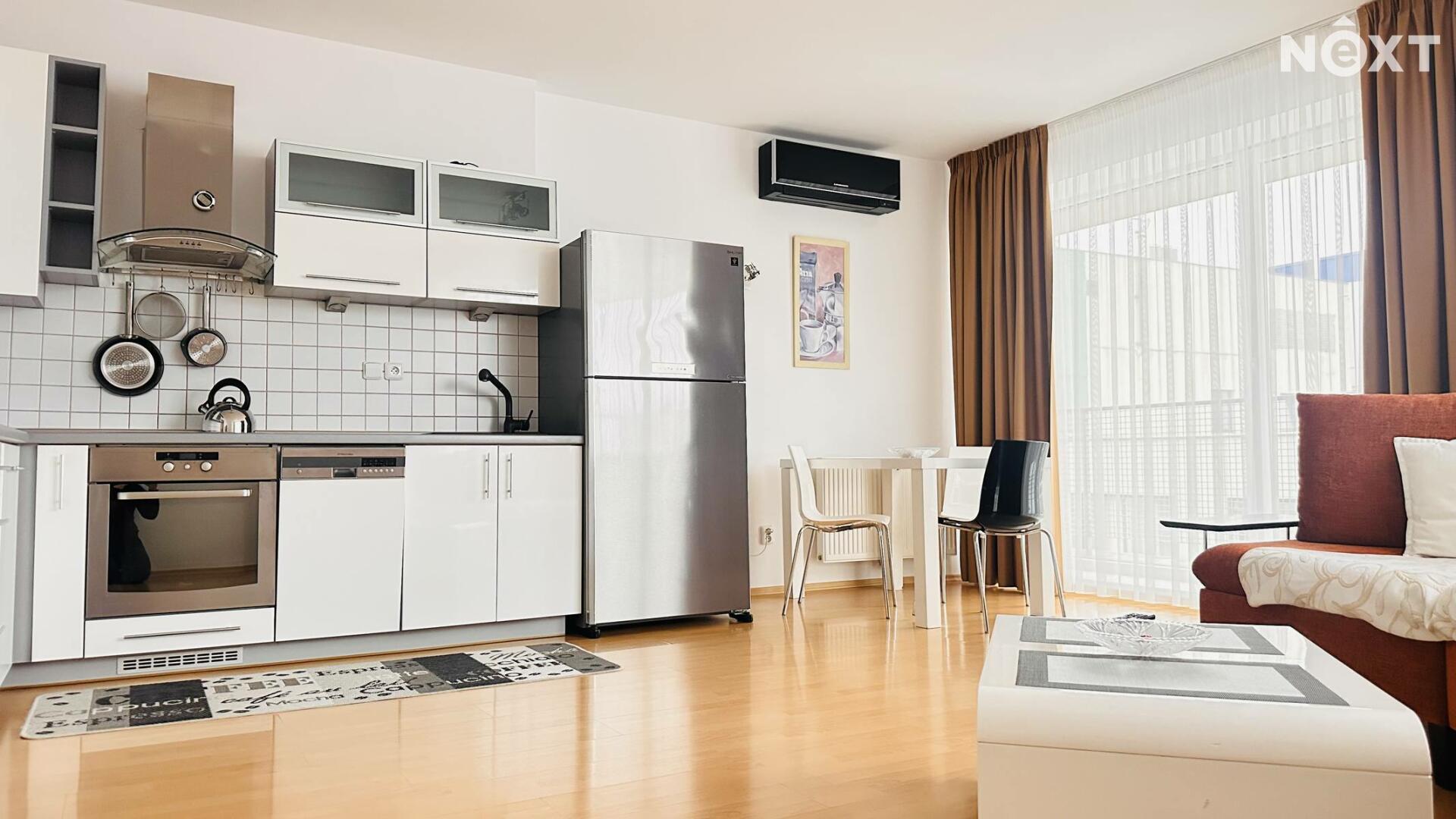 Byt je kompletně zařízen kvalitním designovým nábytkem a připraven k okamžitému nastěhování – stačí si přinést osobní věci. K dispozici je velkorysá šatna a vestavěné skříně v chodbě i ložnici, které poskytují dostatek úložného prostoru. Klimatizace.