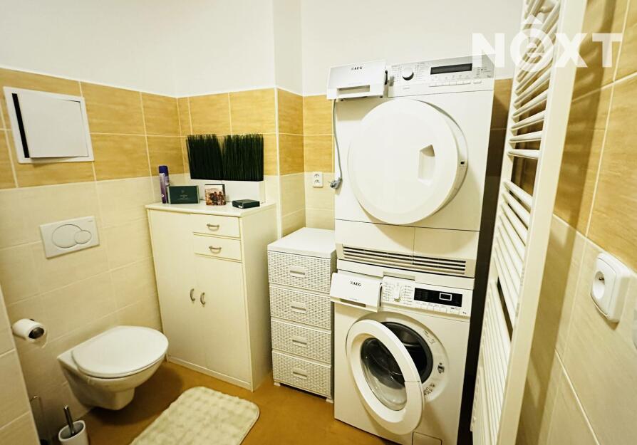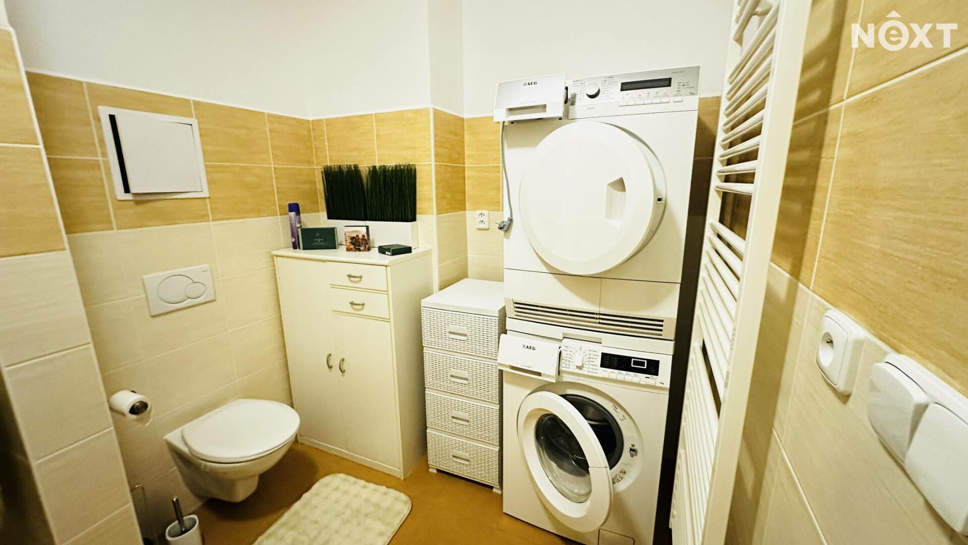 Koupelna je vybavena pračkou a sušičkou. Z lodžie je příjemný výhled a nabízí ideální místo pro relaxaci.