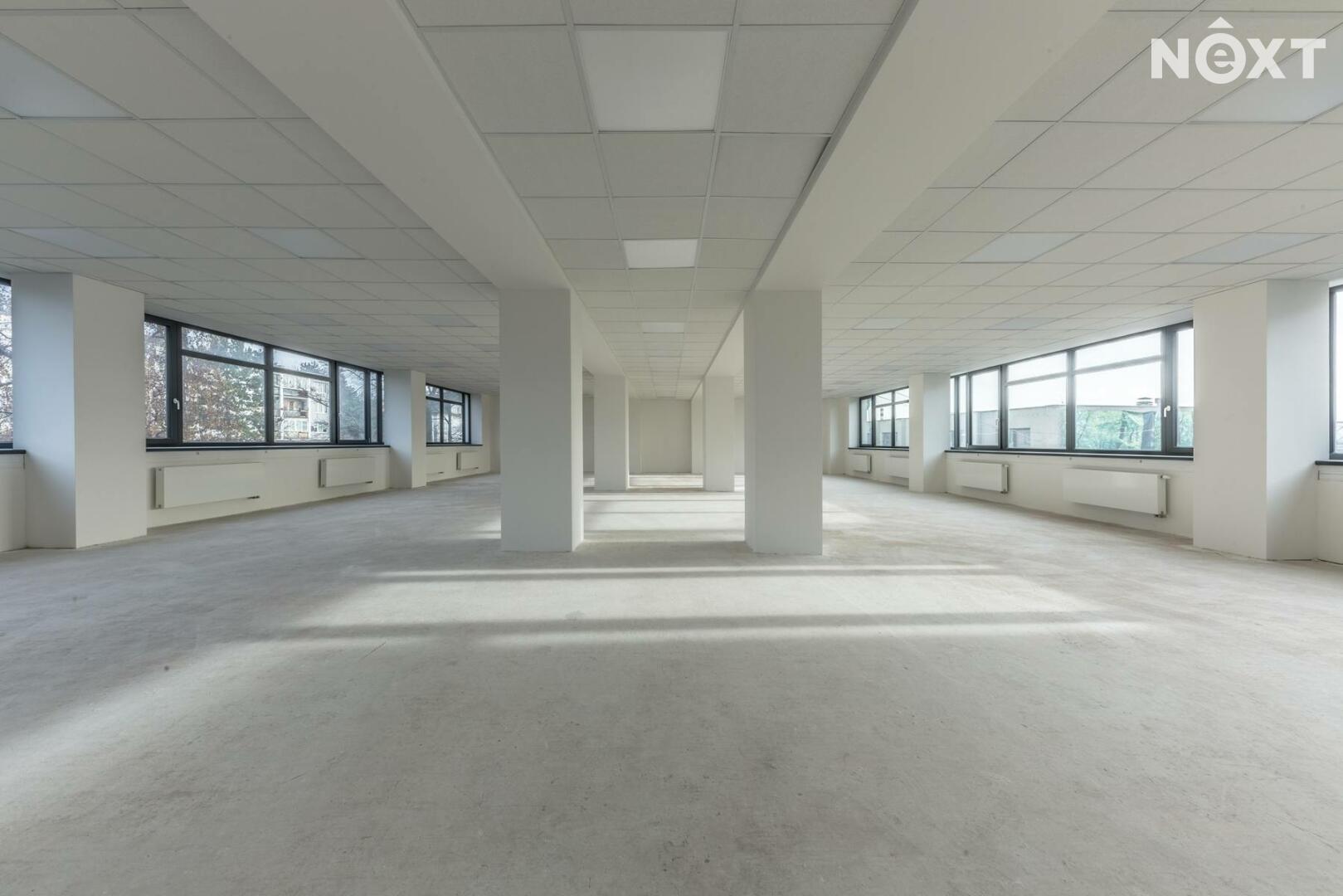 Exkluzivně nabízíme k pronájmu kancelářský prostor o celkové výměře 375 m² ve 4. nadzemním podlaží budovy na adrese Průběžná 76, Praha 10 – Strašnice. Hlavní část patra tvoří otevřený prostor o velikosti 347,35 m², který je možné upravit jako open space nebo rozčlenit na menší kanceláře a zasedací místnosti podle požadavků nájemce. Součástí zázemí jsou předsíň a WC pro ženy (3,48 m² + 6,19 m²), předsíň a WC pro muže (3,45 m² + 9,18 m²), technická místnost (2,44 m²), úklidová místnost (2,85 m²), m²). Patro je připraveno pro vedení datových rozvodů v podhledech, nabízí možnost instalace klimatizace, disponuje rozvody vody a kanalizace, ústředním vytápěním radiátory, silnoproudem i slaboproudem a napojením na vzduchotechnické trasy. Podlahy jsou betonové v hlavním open space a keramické v sociálním zázemí; stěny tvoří sádrové omítky a stropy kazetové SDK podhledy. Standardní výška stropu je přibližně 2,6 m. Prostor je přístupný výtahem i schodištěm a je vhodný pro dlouhodobé administrativní nebo kombinované využití díky dobré dostupnosti MHD, napojení na hlavní pražské tahy a občanské vybavenosti v bezprostředním okolí. Pro komunikaci uvádějte evidenční číslo zakázky N115209.