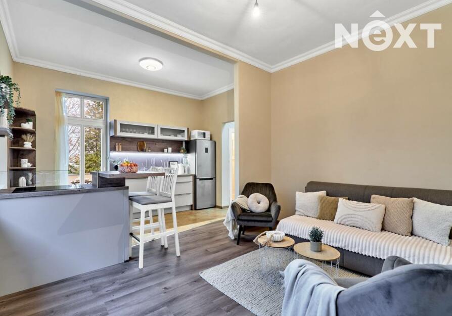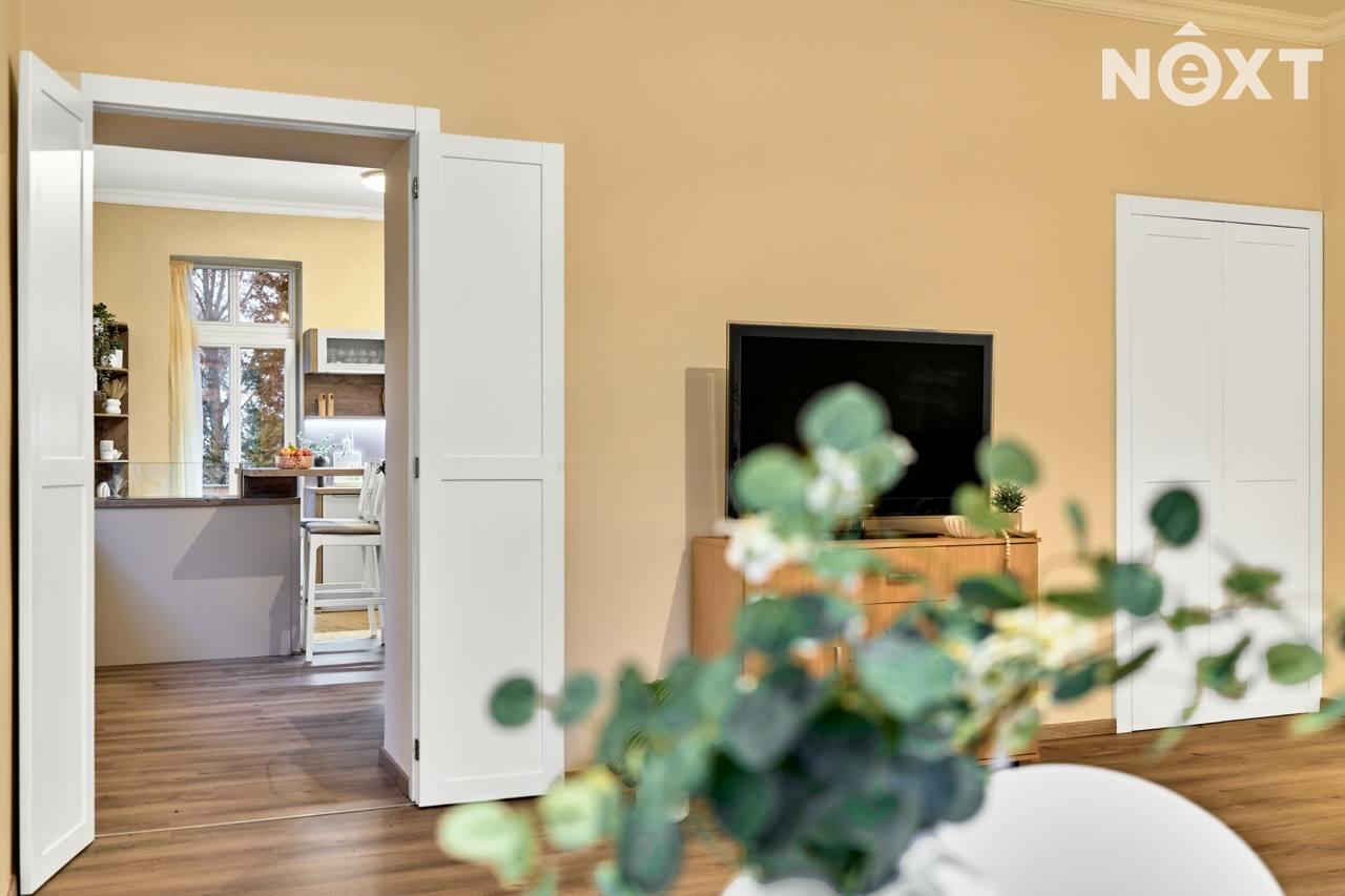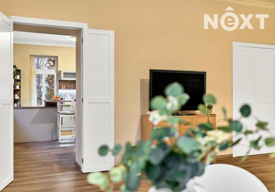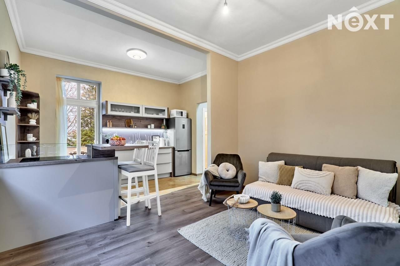 For sale: a bright and fully renovated 2+kk (1-bedroom) apartment with a floor area of 59.6 m² (incl. cellar), located on the 1st floor of the elegant Kühnl Villa in the sought-after residential area of Poděbradská 1309/1, Karlovy Vary.