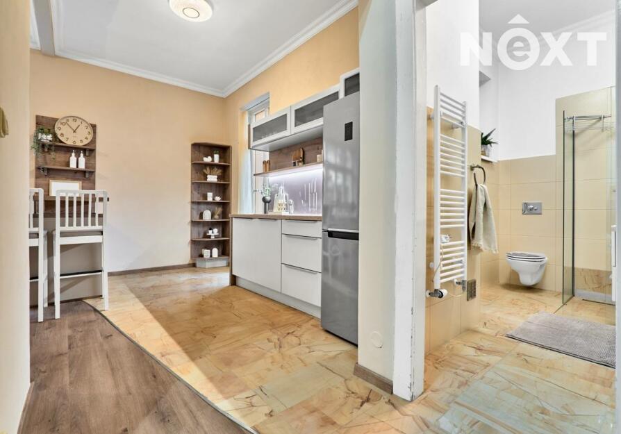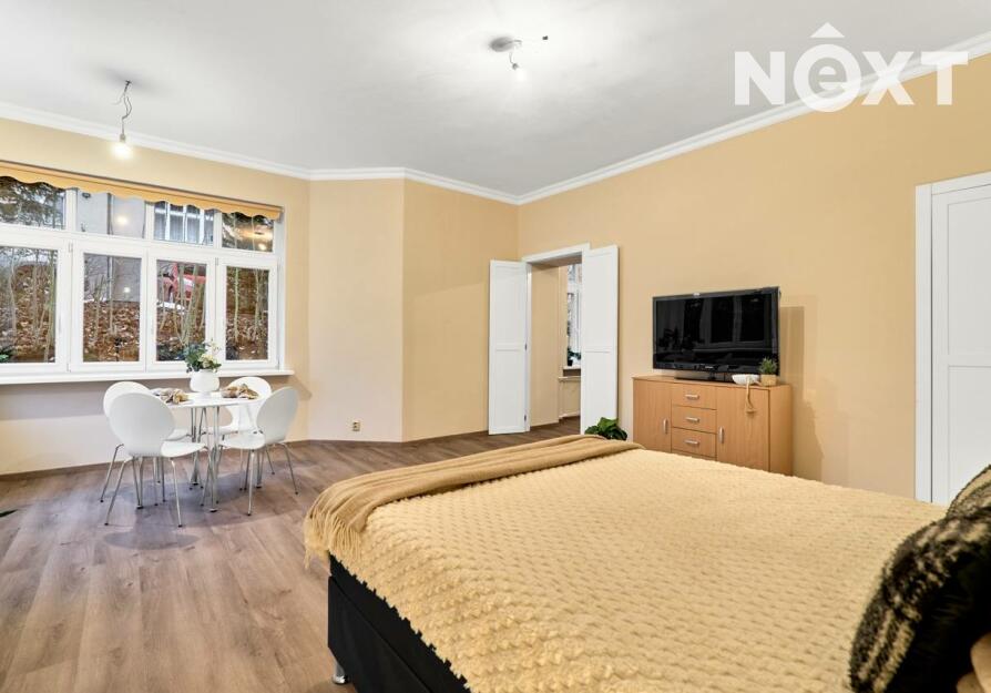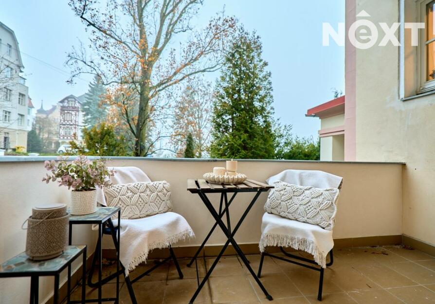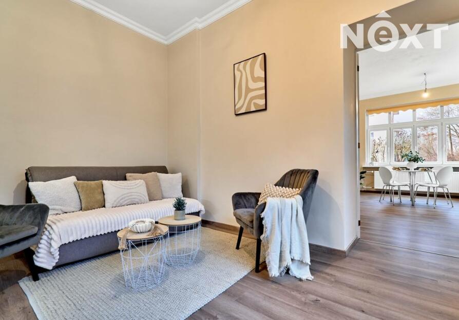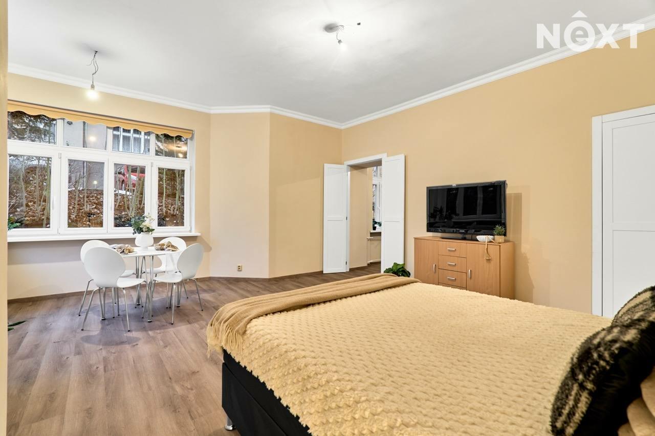 For sale: a bright and fully renovated 2+kk (1-bedroom) apartment with a floor area of 59.6 m² (incl. cellar), located on the 1st floor of the elegant Kühnl Villa in the sought-after residential area of Poděbradská 1309/1, Karlovy Vary.