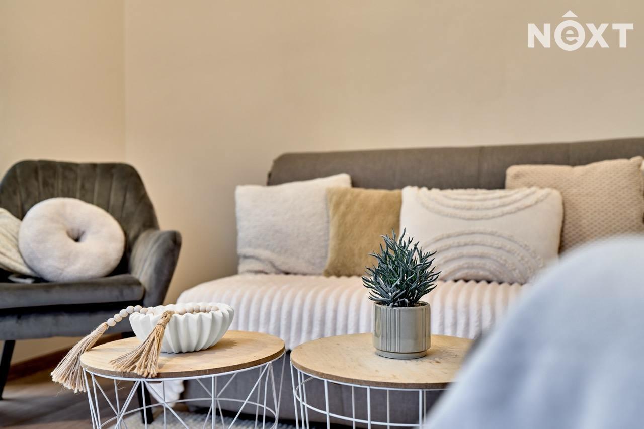 The apartment features a cozy 4.5 m² balcony, a complete reconstruction from 2018–2020 (incl. bathroom, windows, doors, and chimney flue with fireplace connection), and central gas heating.