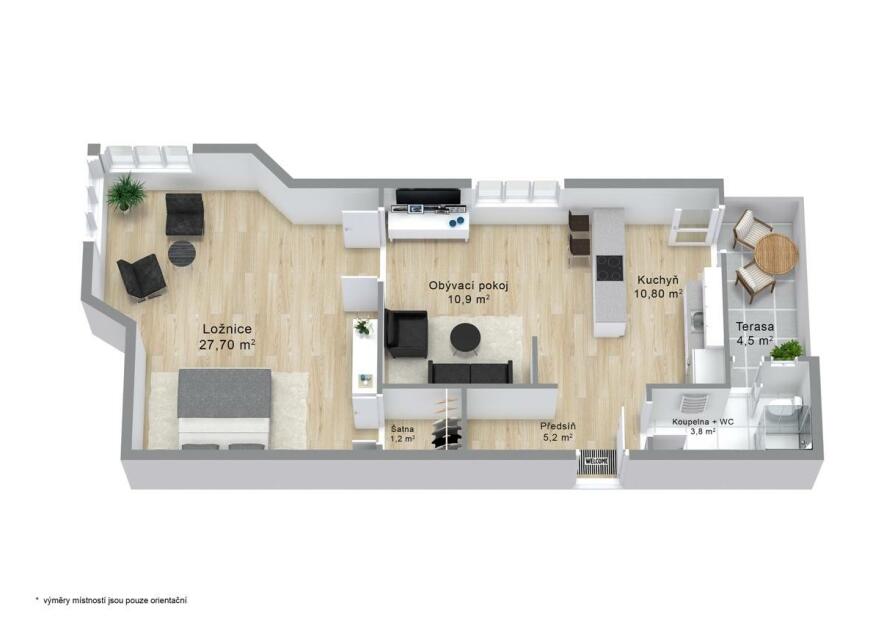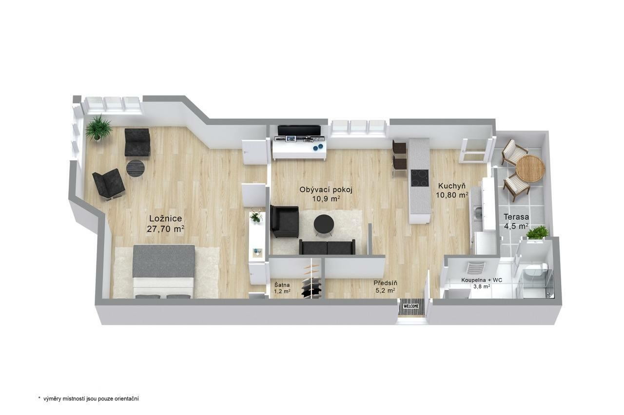 Součástí bytu je také příjemný balkón o výměře 4,5 m², který poskytuje klidné místo pro ranní kávu či večerní odpočinek – jeho plocha se do celkové výměry nezapočítává.