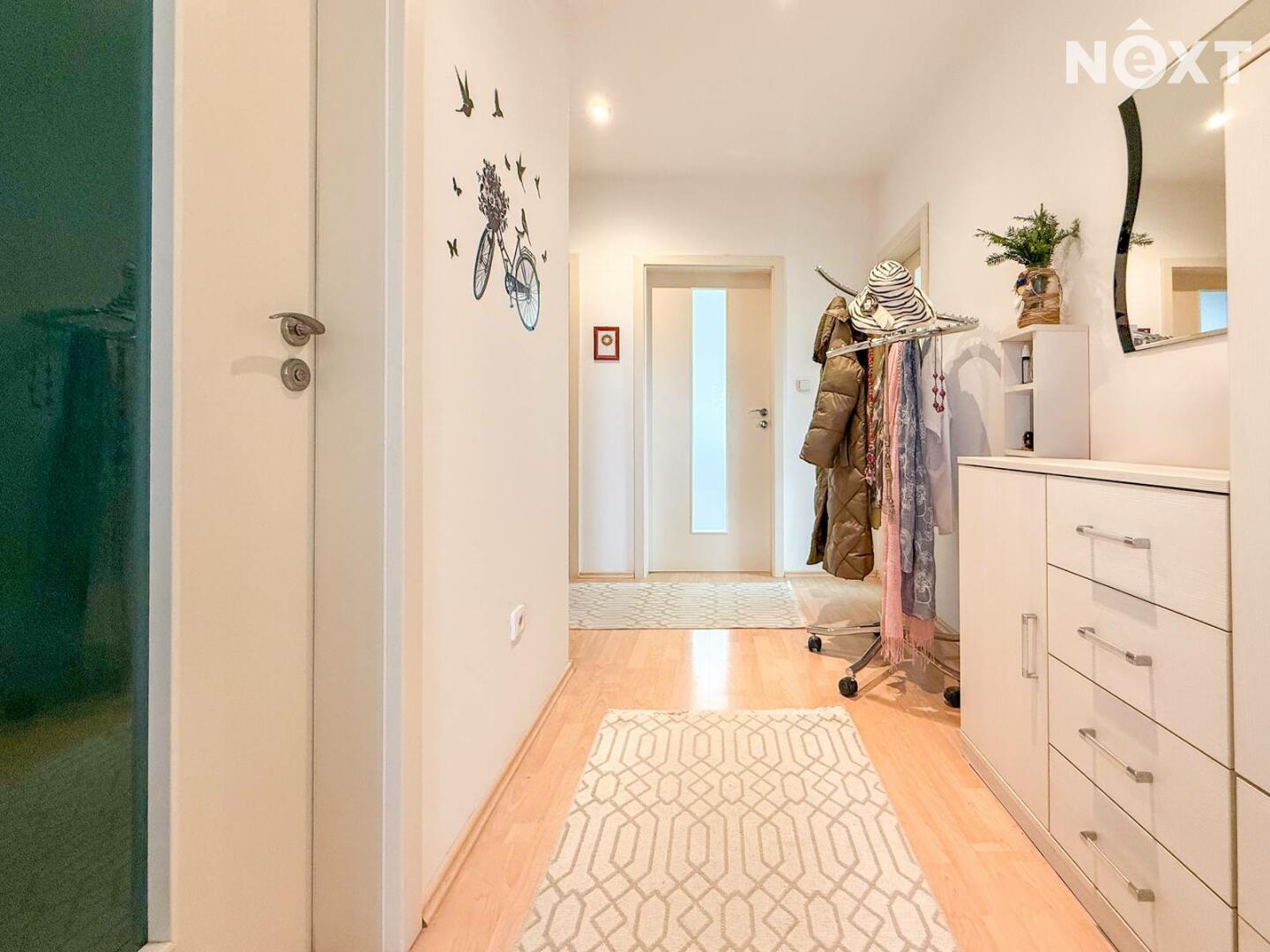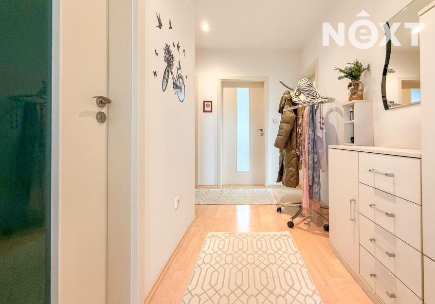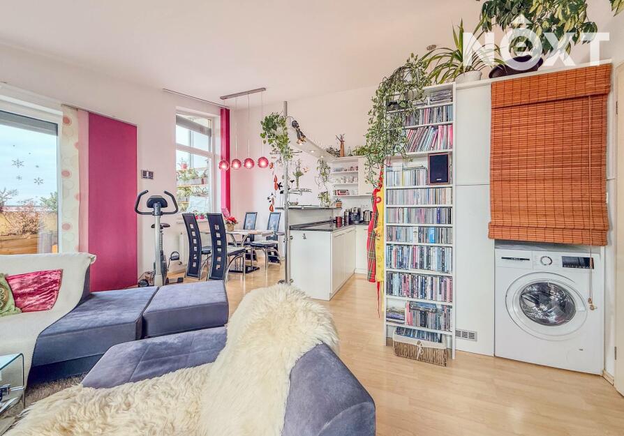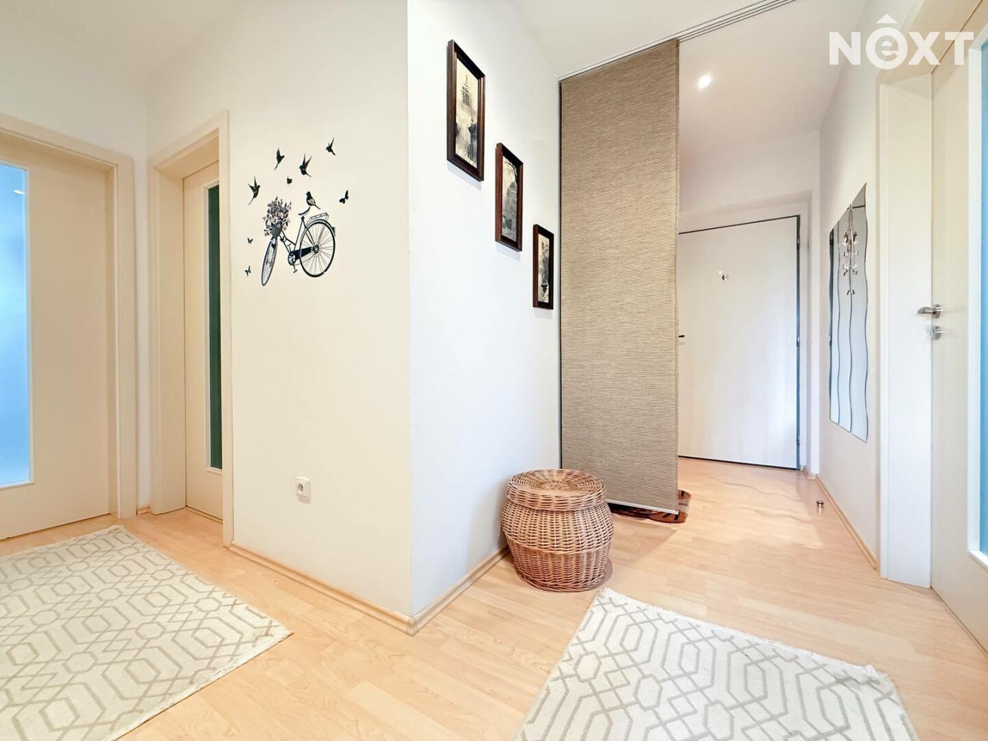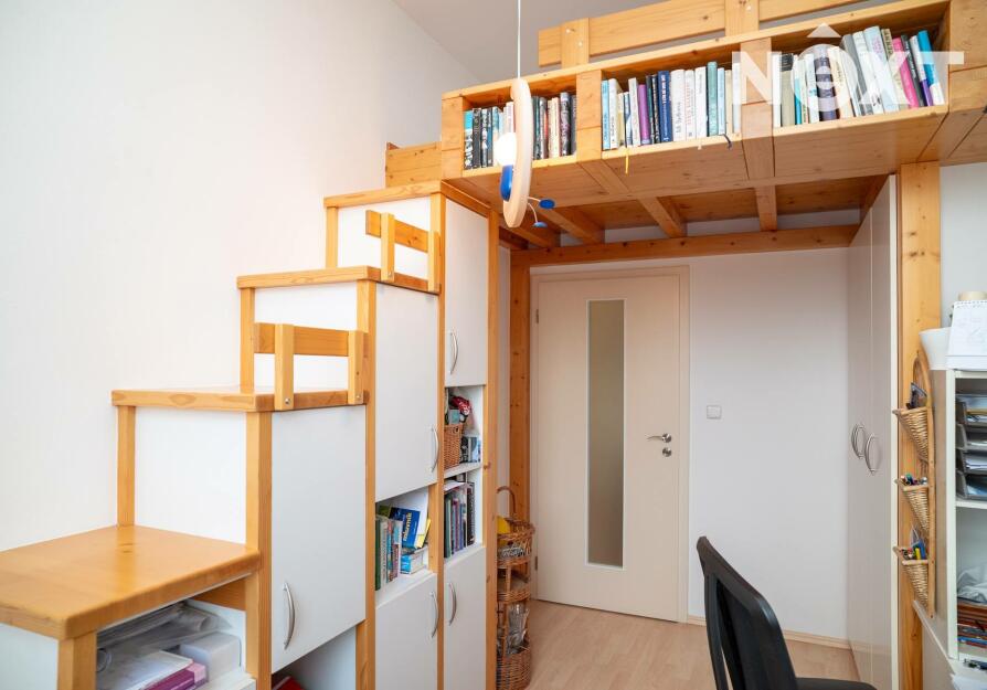 Byt je světlý, prakticky řešený a vybavený klimatizační jednotkou, díky které je zajištěn komfort i v nejteplejších dnech. Součástí bytu je velká koupelna spojená s WC, která je vybavena vanou a nabízí dostatek prostoru pro veškeré koupelnové vybavení. Velkým benefitem je také prostorná předsíň, která poskytuje široké možnosti pro úložné prostory, vestavěné skříně nebo další vybavení podle představ nového majitele. Dispozice dále zahrnuje dvě útulné ložnice a obývací pokoj s kuchyňským koutem a přímým vstupem na terasu.