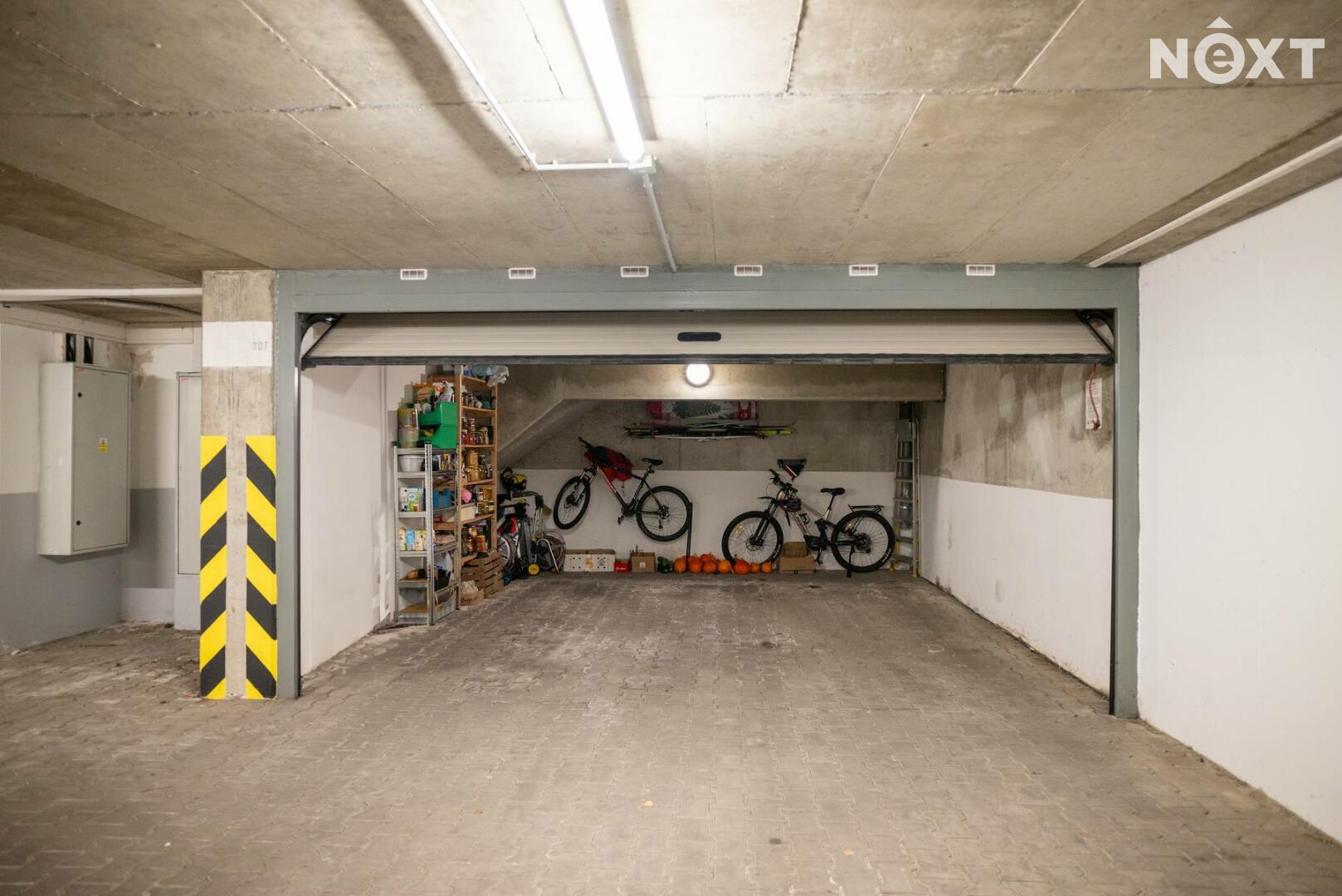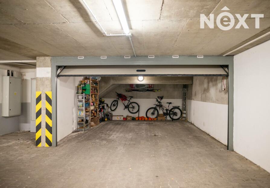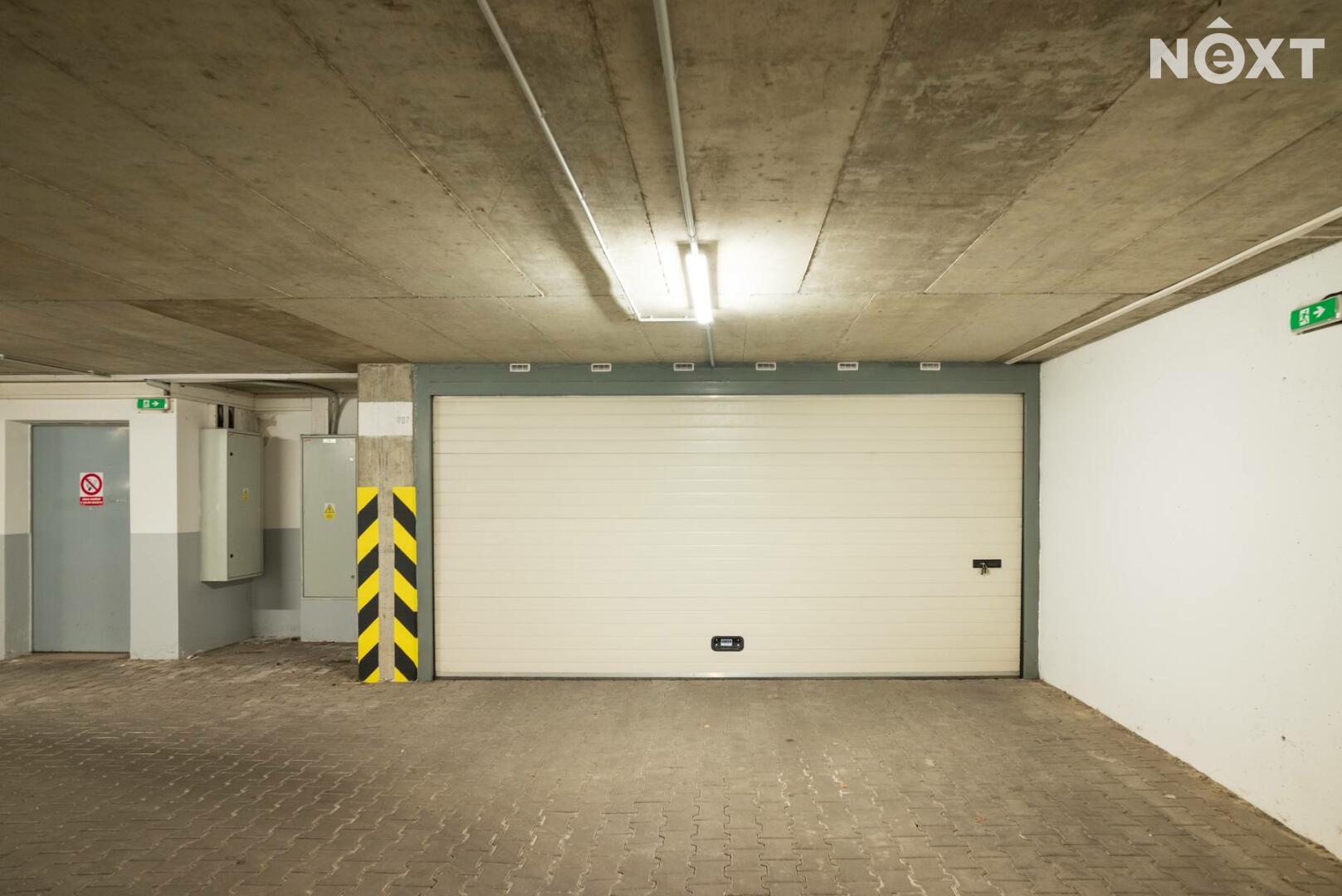 K bytu je možné dokoupit dvojgaráž o výměře 25 m², která se nachází přímo v domě. Díky své velikosti poskytuje komfortní parkování pro dvě auta i další prostor pro uskladnění sezónních věcí. Cena garáže činí 1.000.000 Kč.