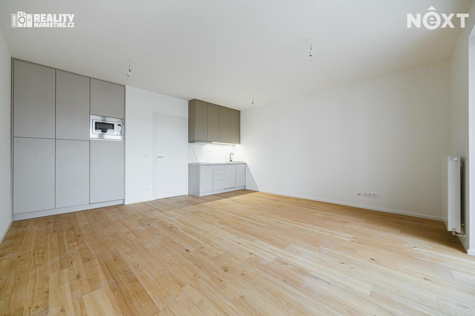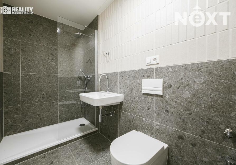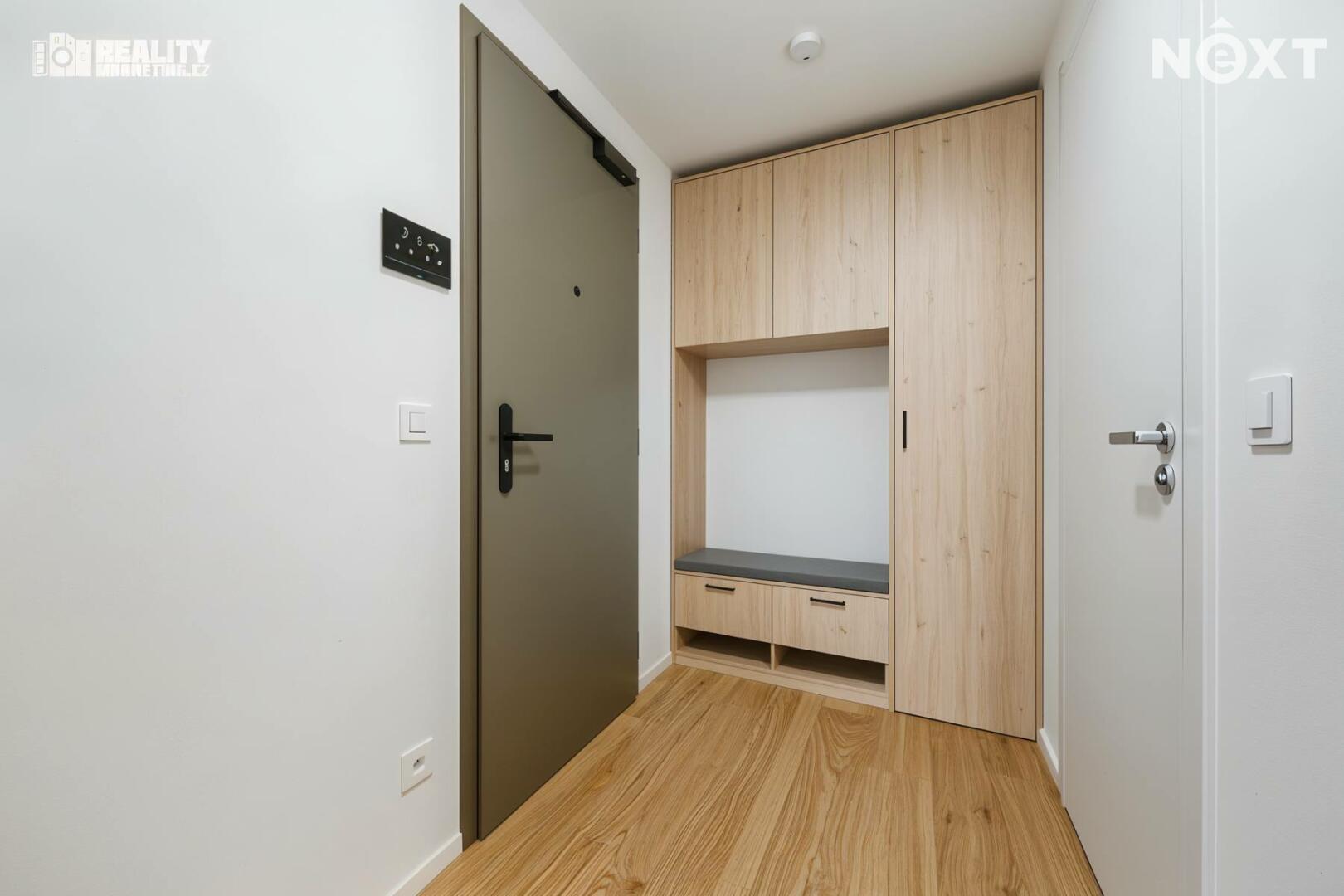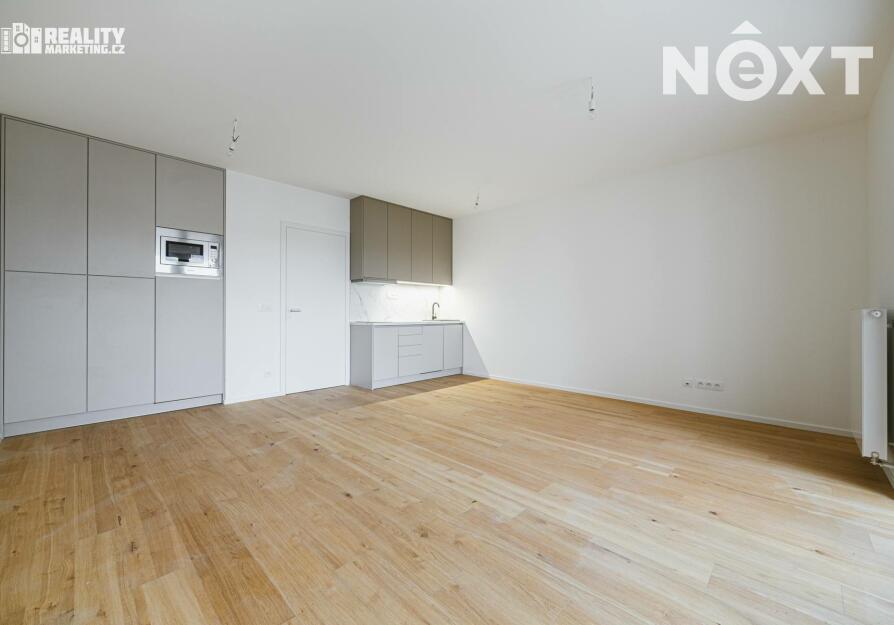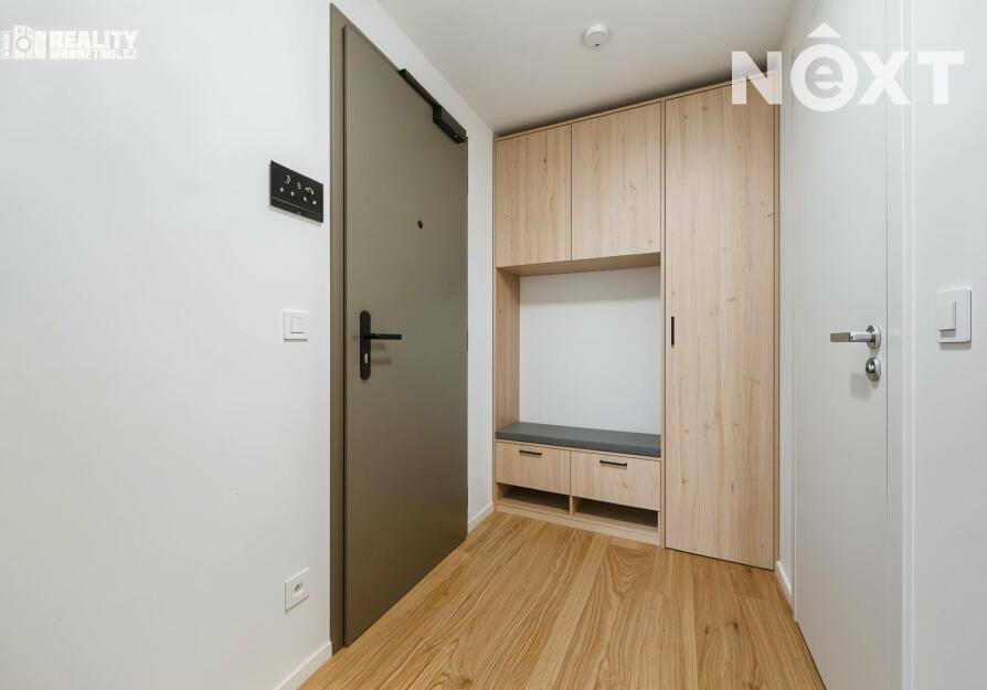 Součástí bytu je kuchyňská linka na míru v moderních neutrálních barvách, vybavená spotřebiči: dřez, myčka, lednice, digestoř a mikrovlnná trouba. Vestavná skříň má úložný prostor pro oblečení i šaty a využívá každý centimetr prostoru. Koupelna nabízí sprchový kout, závěsné WC, umyvadlo a prostor pro pračku i sušičku.