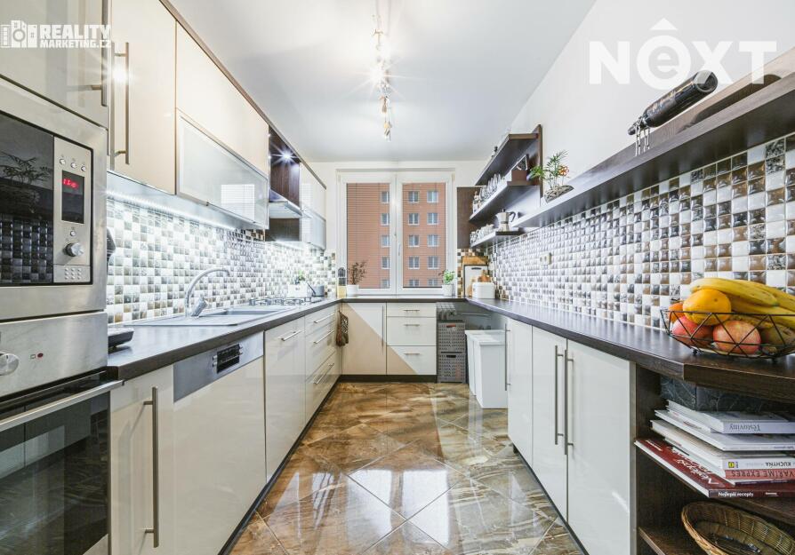 Součástí rozsáhlé rekonstrukce, která proběhla před cca 9 lety, je kuchyňská linka na míru včetně vestavných značkových spotřebičů (plynová varná deska, digestoř, lednice, pečicí trouba, myčka, mikrovlnná trouba), odhlučnění stropů, a také instalace bezpečnostních vstupních dveří, které společně s kamerovým systémem a vstupem na čip poskytují nadstandardní pocit bezpečí.