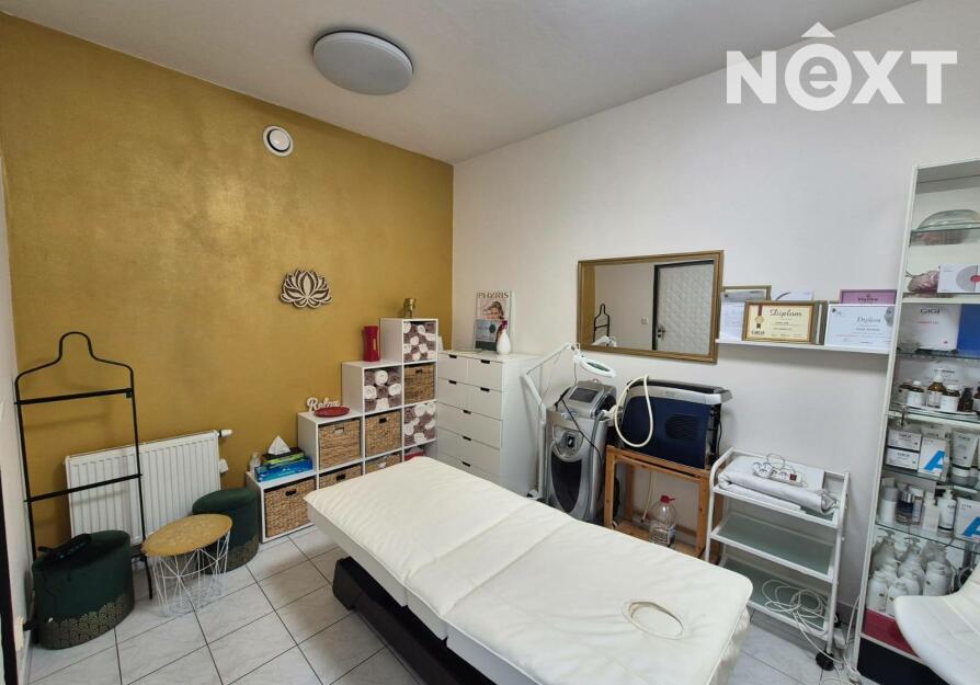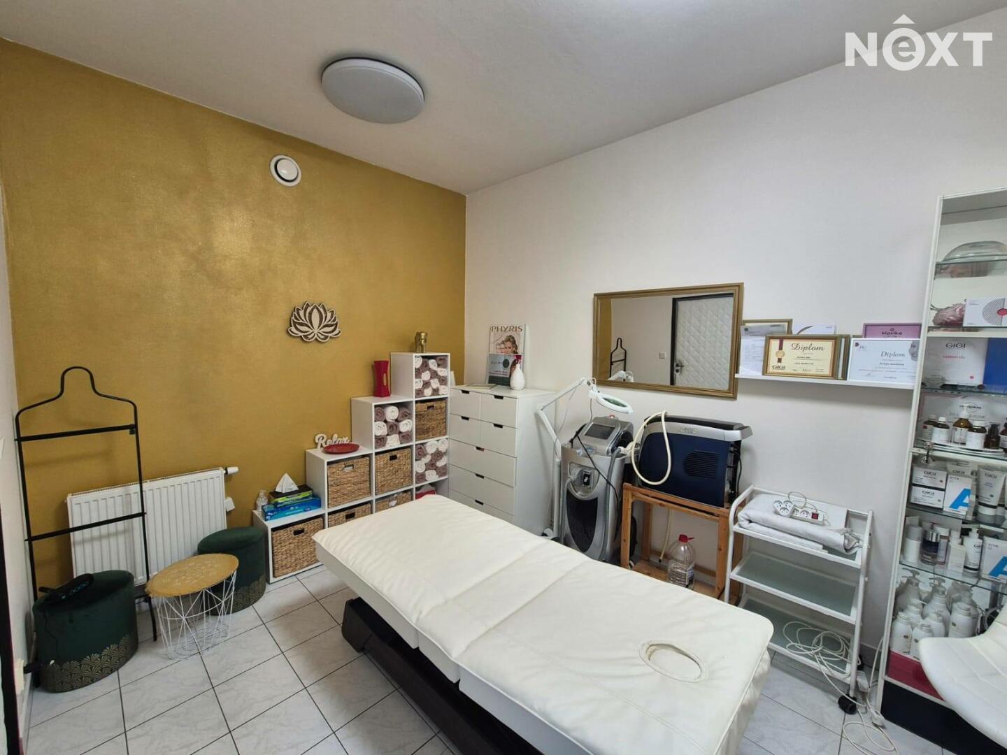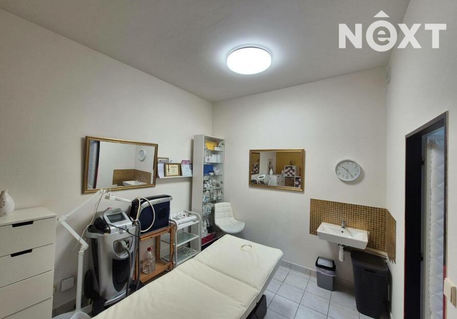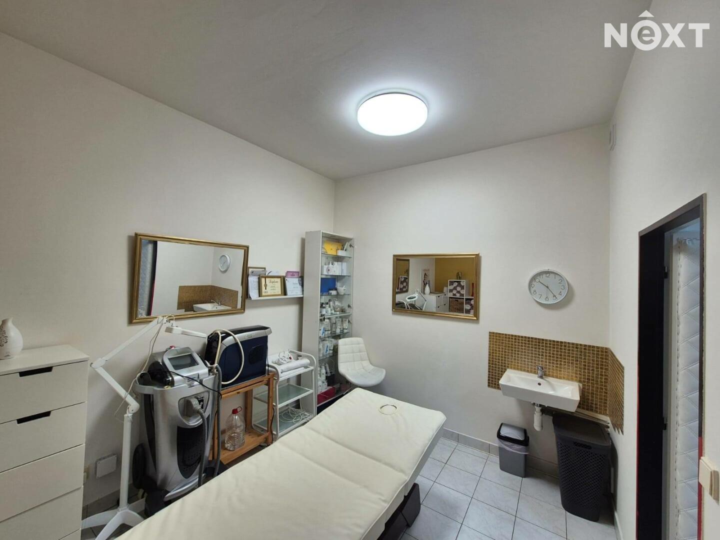 Prostor je plně vybaven nábytkem, který čítá elektrické masážní lůžko, elektrické pedikérské křeslo, a další nábytek, viz foto.