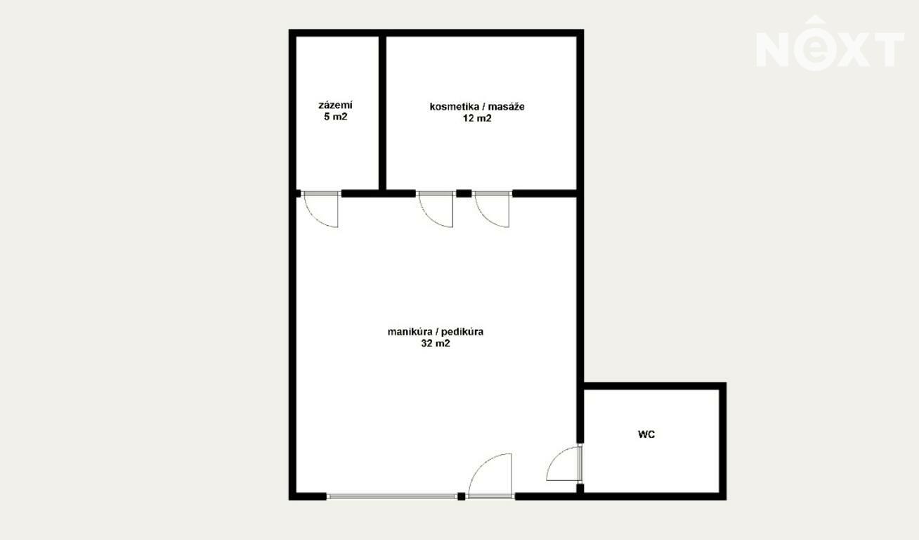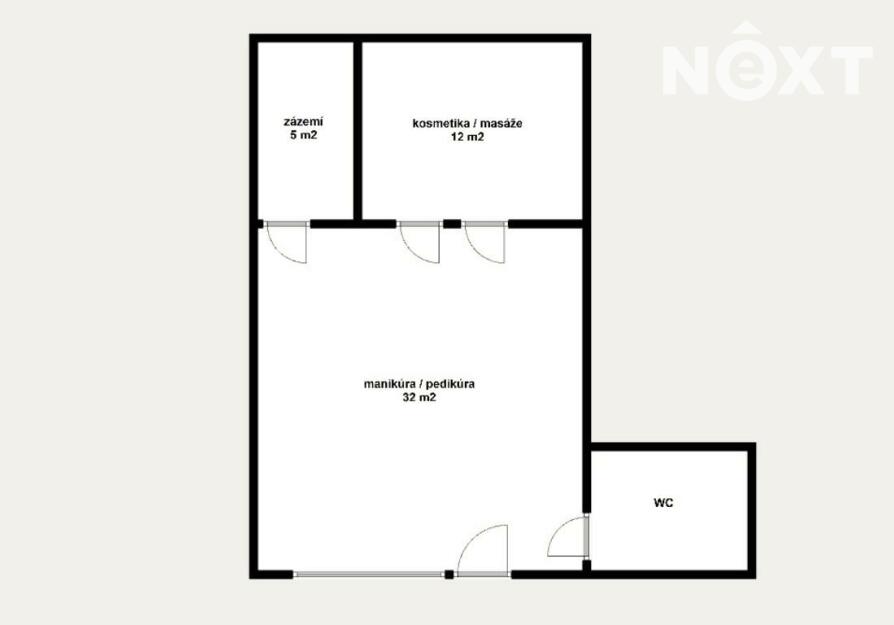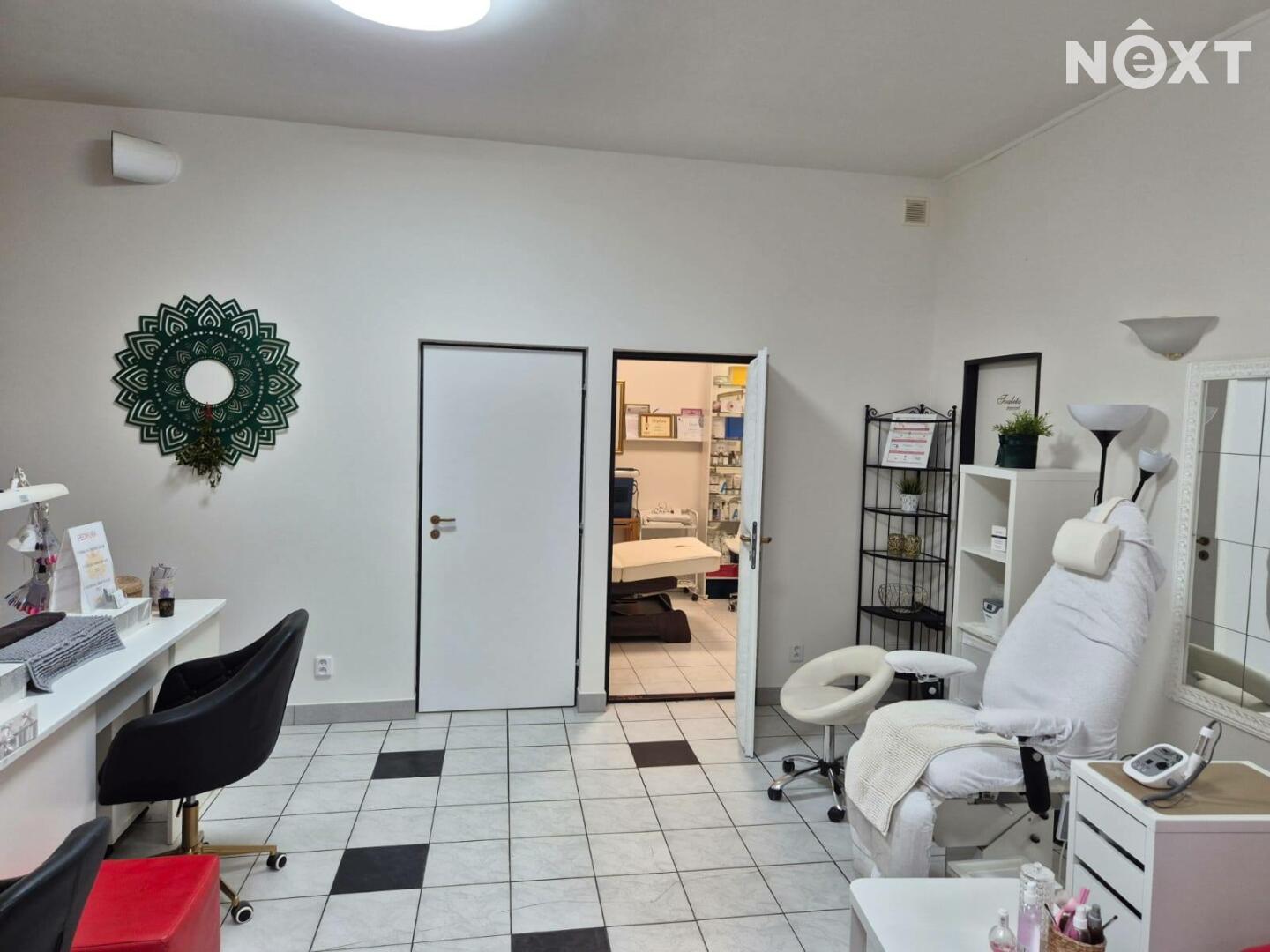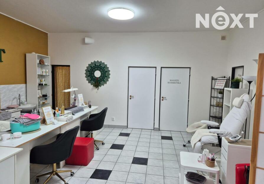 Prostor je plně vybaven nábytkem, který čítá elektrické masážní lůžko, elektrické pedikérské křeslo, a další nábytek, viz foto.