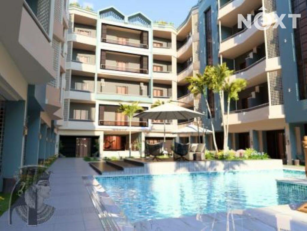 Moderní vzhled rezortu - 3 bazény, jeden bude v zimě vyhřívaný, 2 střešní panoramatické bazény. Pool bar, restaurace, recepce, 24h security, výtahy
