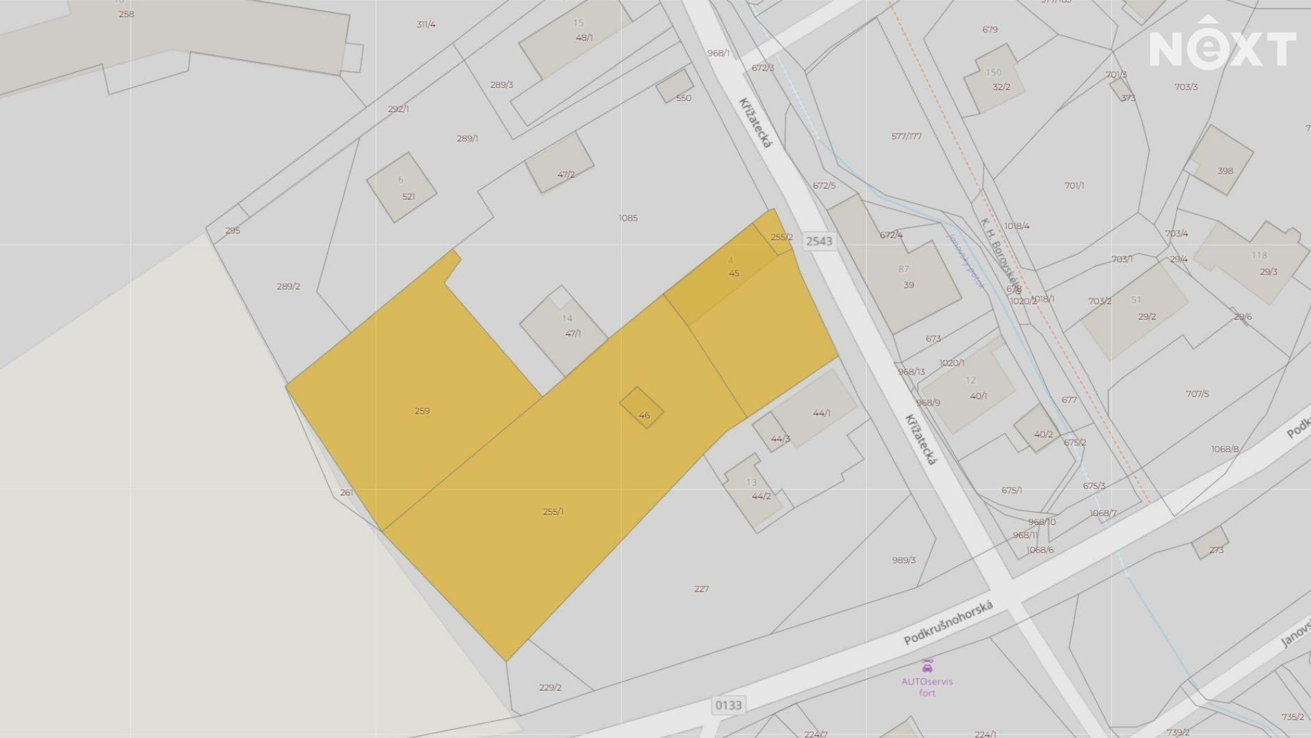 Na prodej: rozlehlé pozemky pro výstavbu rodinných domů, Křížatecká 4, Litvínov – Janov (celkem 4 368 m²)