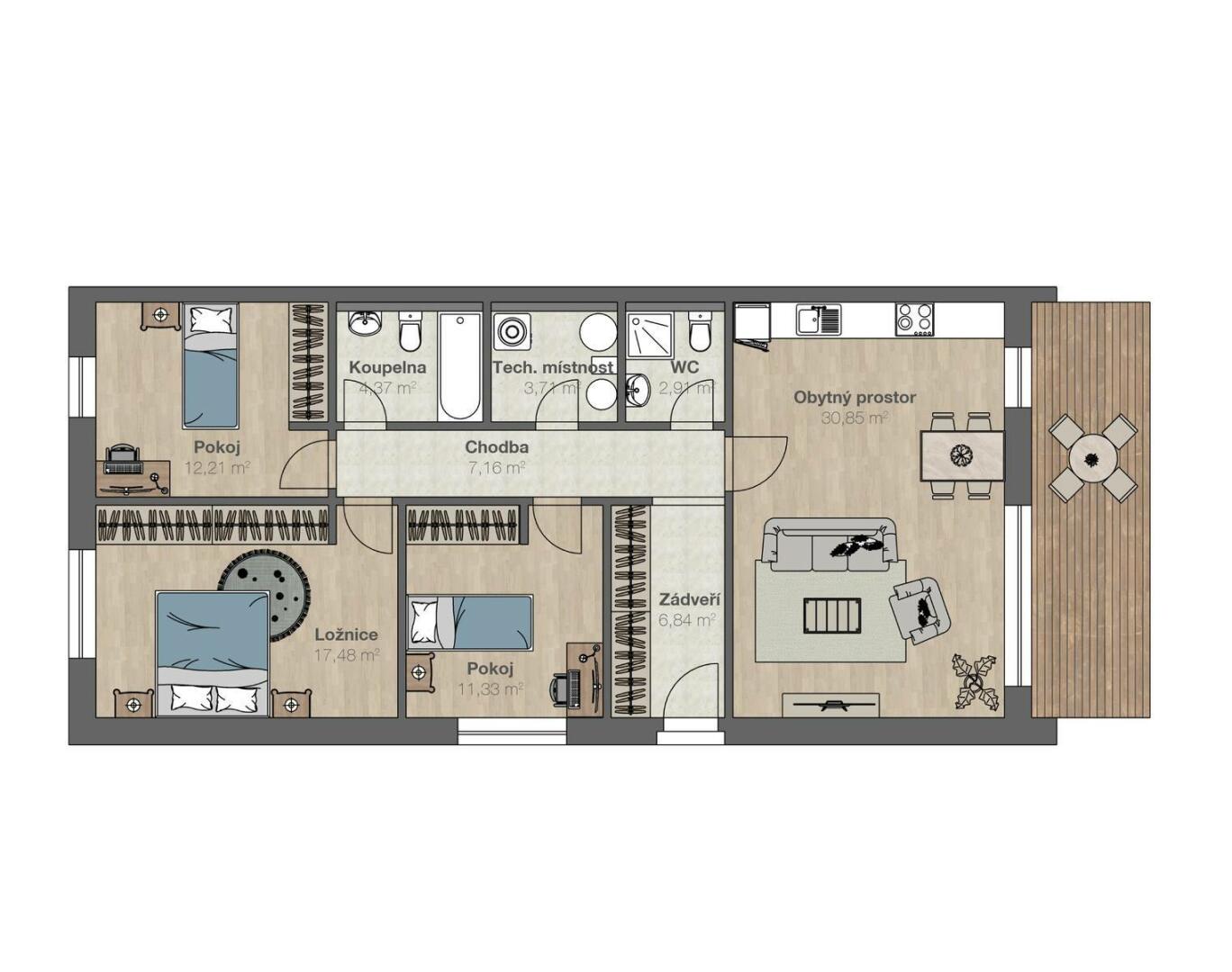 Pokud chcete opustit ruch velkoměsta, máte úžasnou příležitost žít v klidné lokalitě ve vlastním RD s pozemkem o výměře 799 m2. Osada Sklenka, spadající pod obec Strančice, je unikátní svojí polohou, pouhých 17 minut autem do OC Chodov. Absenci občanské vybavenosti, bohatě vyvažuje kouzlo pár desítek původních domů s malebnými vzrostlými zahradami, které utváří příjemné klidné bydlení jak pro rodiny s dětmi, tak seniory, hledající život v přírodě s dostupností veškerých služeb během několika minut v blízkém okolí. Uzavřený developerský projekt se skládá z pěti rodinných jednopodlažních domů o dvou bytových jednotkách, 4kk o výměře 97 m2, podlahové vytápění - tepelné čerpadlo s přípravou na instalaci fotovoltaiky, dvě koupelny s WC. Domy disponují vlastními vrtanými studnami. Součástí je parkovací stání pro dvě auta na pozemku. Každý dům bude kompletně zateplen a vybaven předokenními žaluziemi ve všech oknech. Ve všech pokojích a na chodbě budou instalovány vestavěné šatní skříně. Aktuálně jsou postaveny a zkolaudovány tři domy se dvěma jednotkami a poslední dva domy projektu se dokončují. Plánovaný termín dokončení je 3Q roku 2026. Jsme schopni zajistit financování a současně nastavit správný harmonogram prodeje např. bytu, aby vše navazovalo s výstavbou a nastěhováním. Pouze u nás Vám zajistíme moderní financování až na 35 let, bez ohledu na věk a prokazování příjmů, či nutnosti předkládat daňové přiznání (u podnikatelů). Zeptejte se nás a bydlete chytře. Pro více informací a případné prohlídky nás neváhejte kontaktovat. Pro komunikaci uvádějte evidenční číslo zakázky N115355.