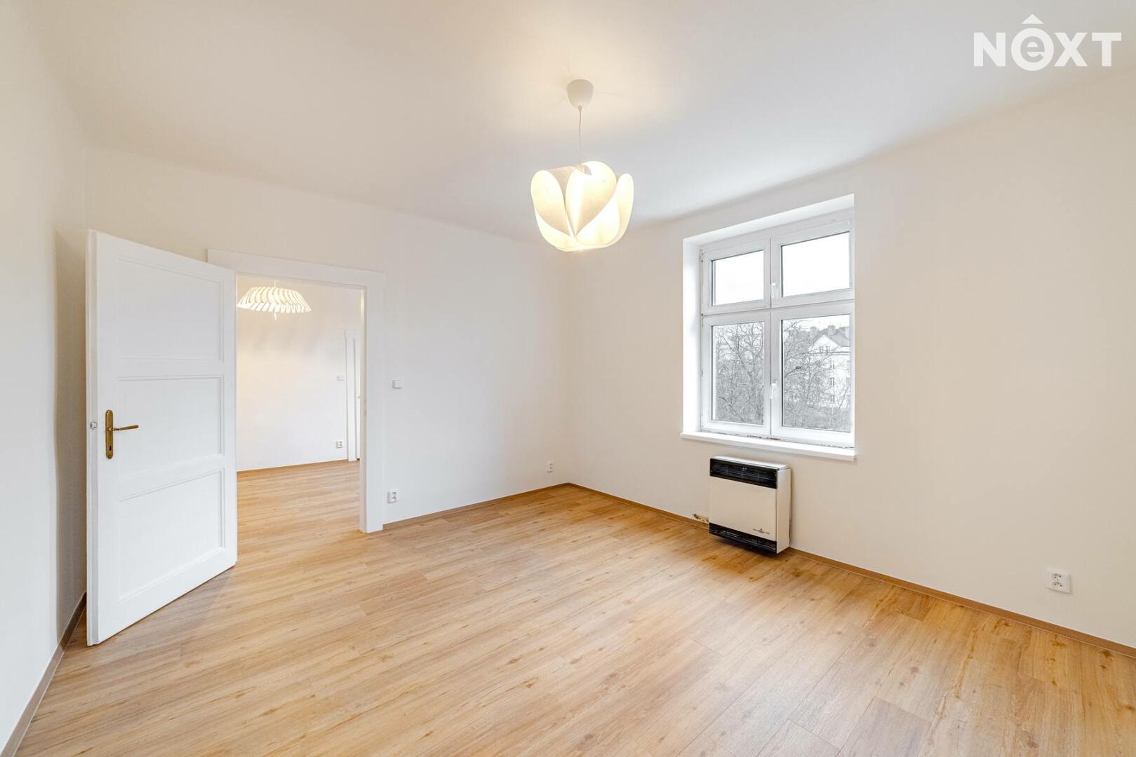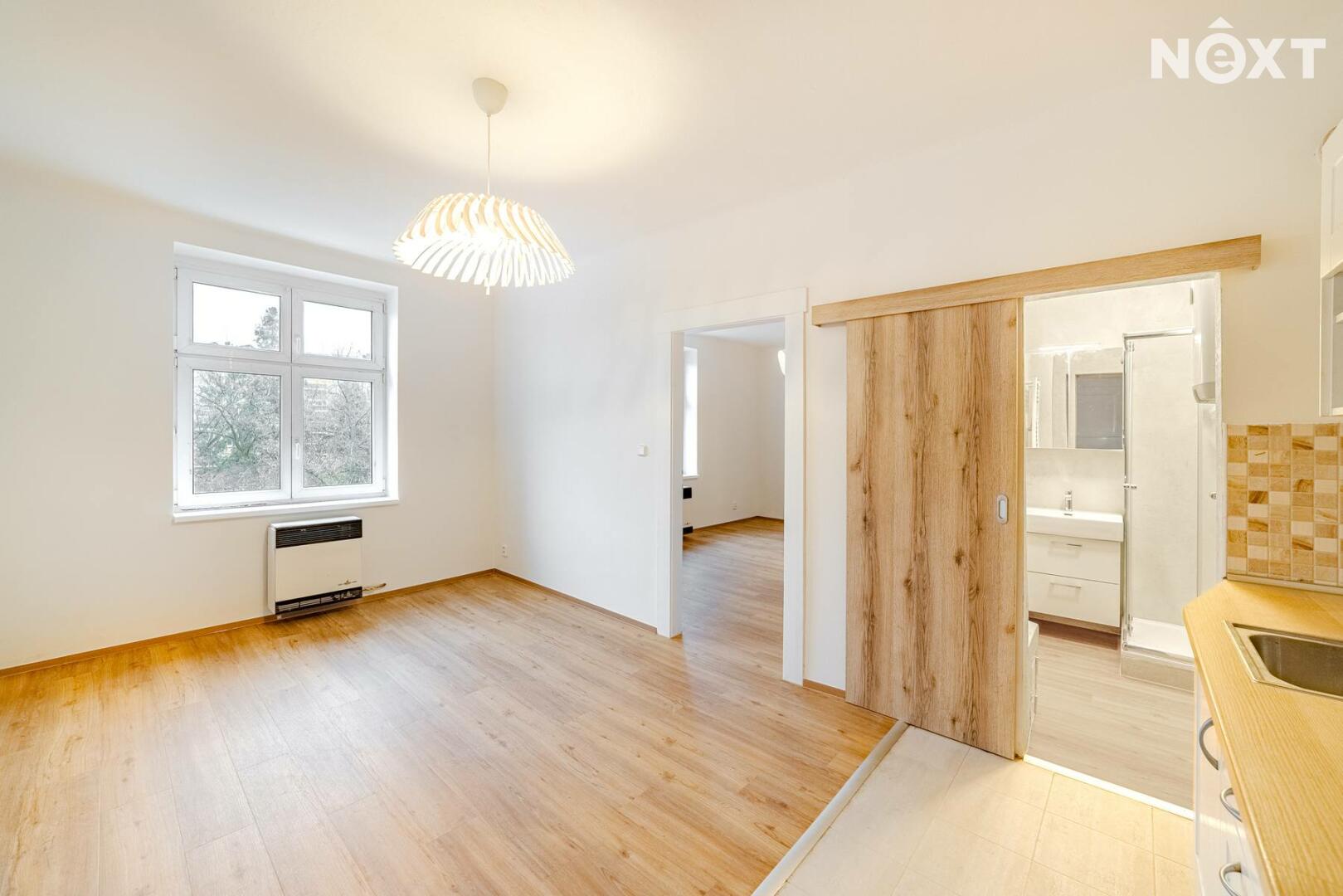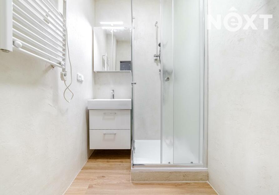 Byt prošel rekonstrukcí do současné podoby v roce 2025. Kuchyňská linka se spotřebiči (varná deska, odsavač par). Po dohodě možnost lednice, pračky a myčky. Stropy cca 3,2 m, úložných prostor. Koupelna je vybavena sprchovým koutem, umývadlem a přípravou pro pračku.