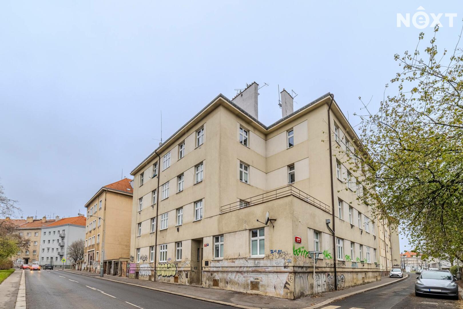 Byt se nachází v druhém patře cihlového domu z cca 40 let minulého století, vzdáleného cca 1 min chůze od busu linky 188 a 3 min chůze od zastávky tramvaje 3,4,5, 11,14,17,18, 21,24 popřípadě cca 10 minut chůze k metru C Pankrác a k OC Arkády Pankrác.