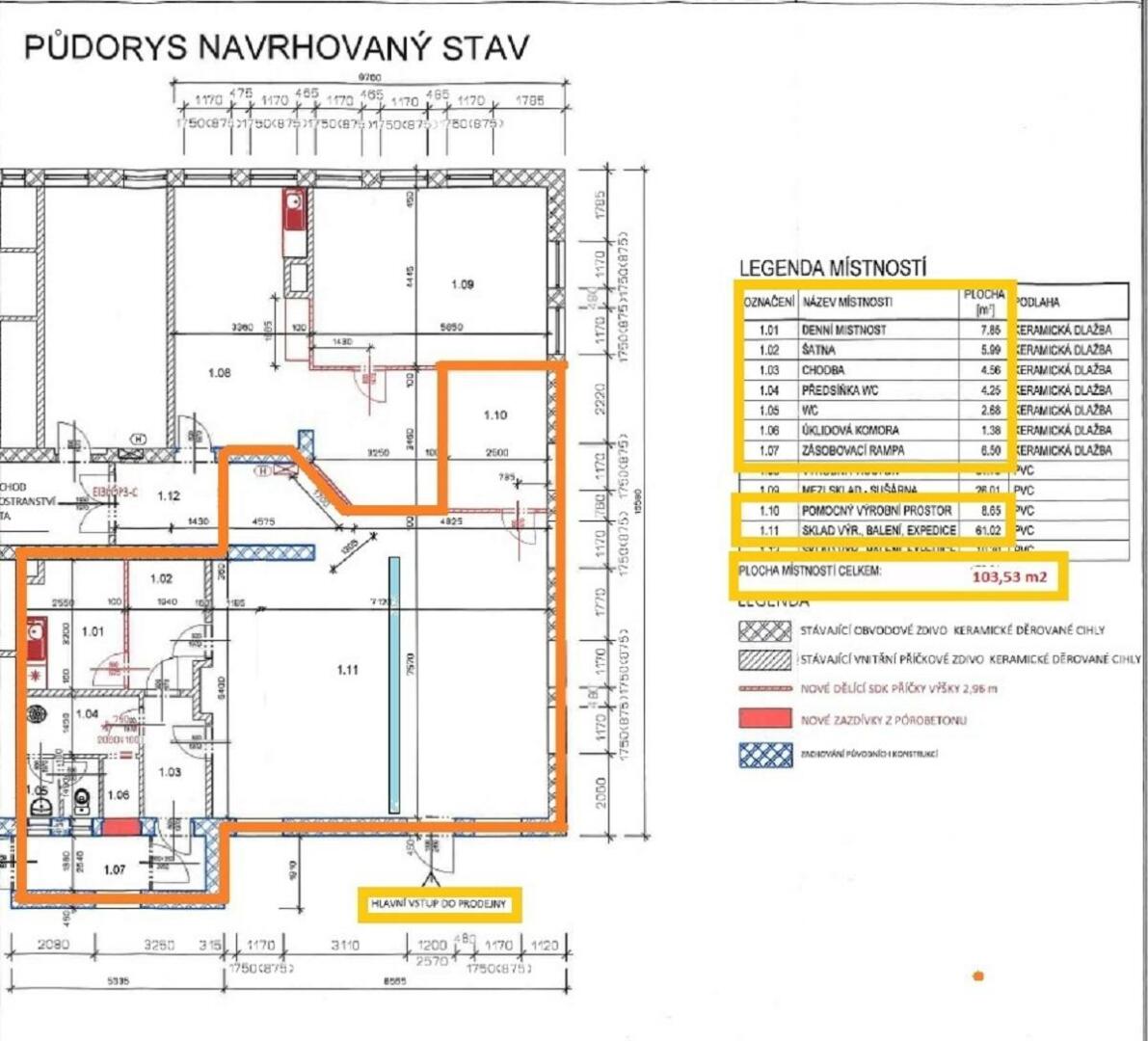 Jedná se o vzájemně propojené místnosti, kancelář, sociální zázemí, vlastní menší skladové prostory, a prodejní plocha, vše o celkové využitelné ploše cca 103 m2.
