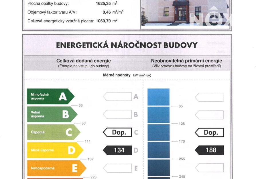 Objekt je vytápěn dálkově s rozvody jednotlivými radiátory.