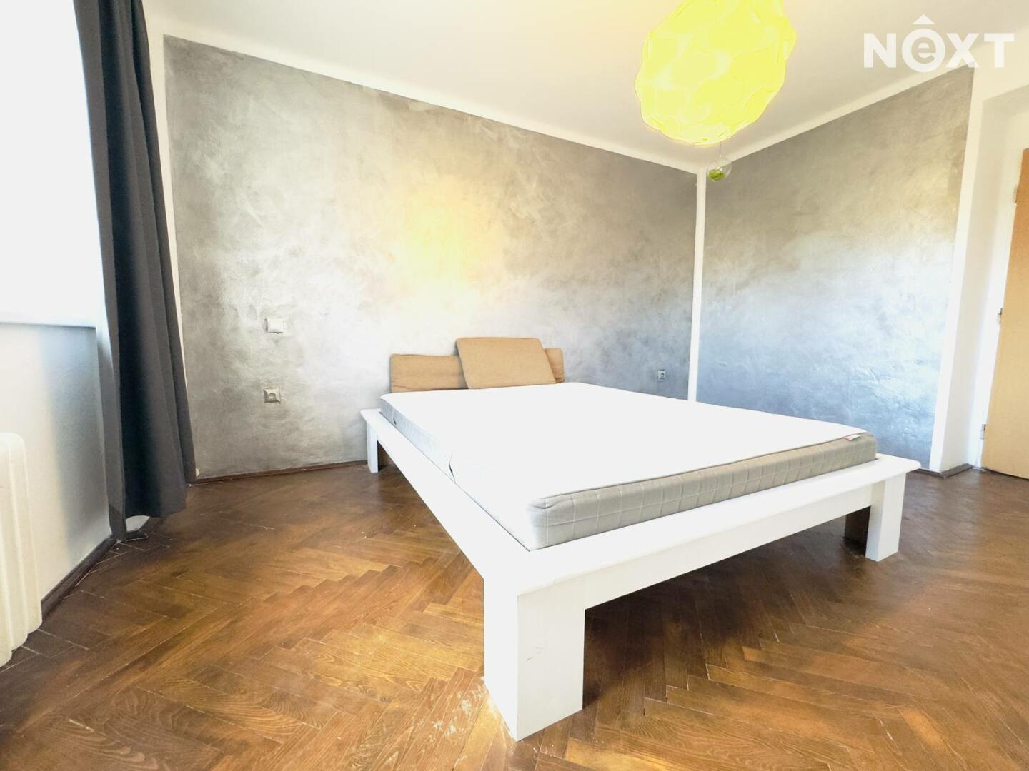 Už při vstupu do bytu vás přivítá vstupní hala s vestavěnou skříní, která elegantně vyřeší veškeré úložné potřeby. Odsud se vydáváme do ložnice – místnosti, kde převládá klid a měkké světlo. Dekorativní stěna dodává prostoru charakter, dřevěná podlaha hřeje a místnost působí jako bezpečné útočiště po dlouhém dni.