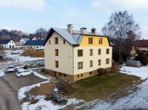 Dům je zateplený, nová fasáda, nová střecha, plastová okna.