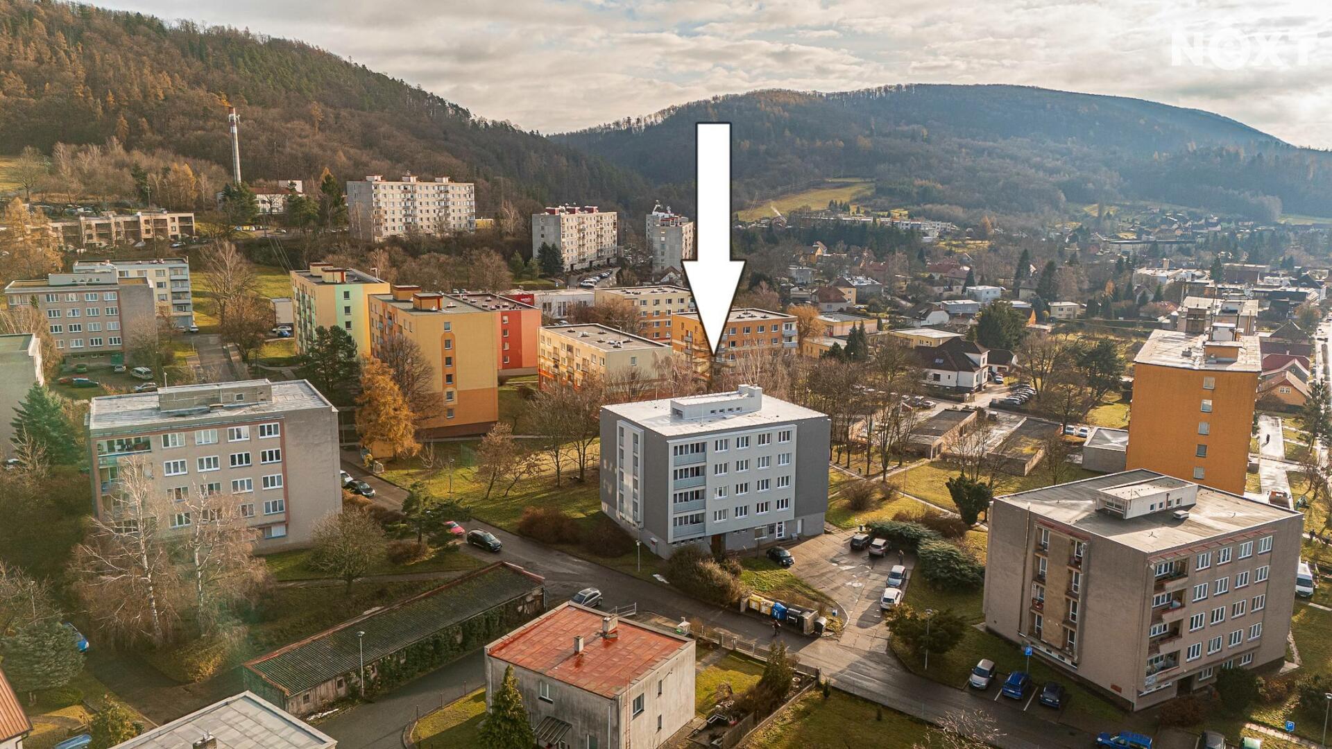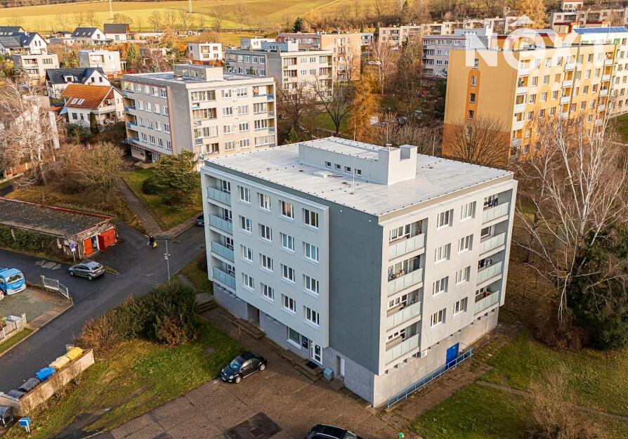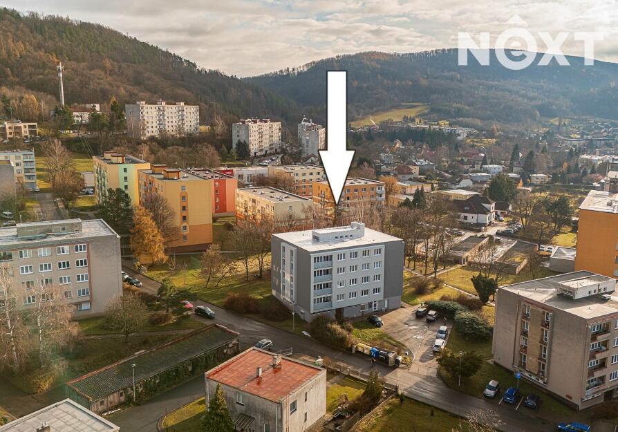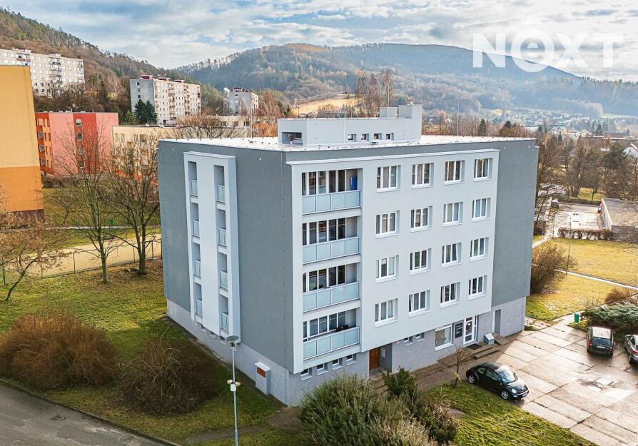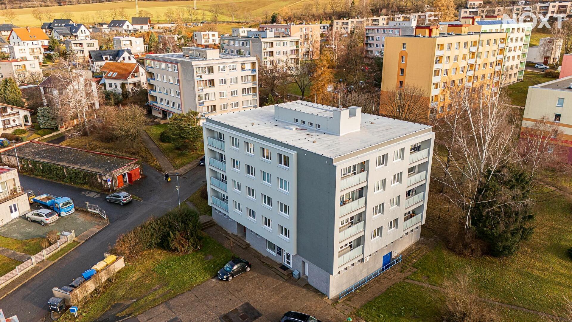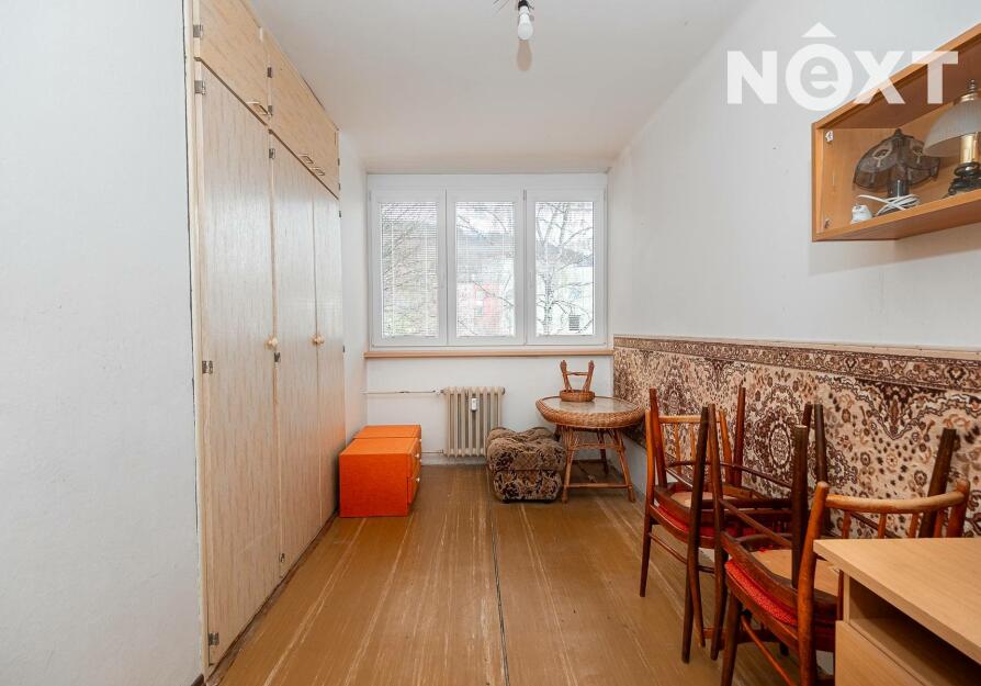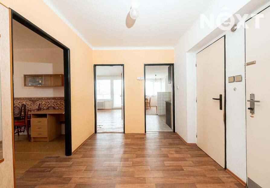 Dispozice bytu: obývací pokoj se vstupem na lodžii, ložnice, kuchyně, koupelna - vana, samostatné WC, chodba, komora. K bytu náleží sklep 2m².