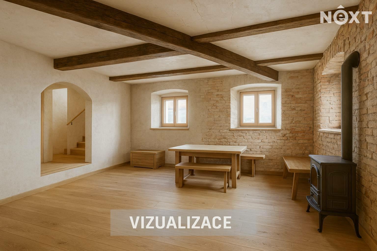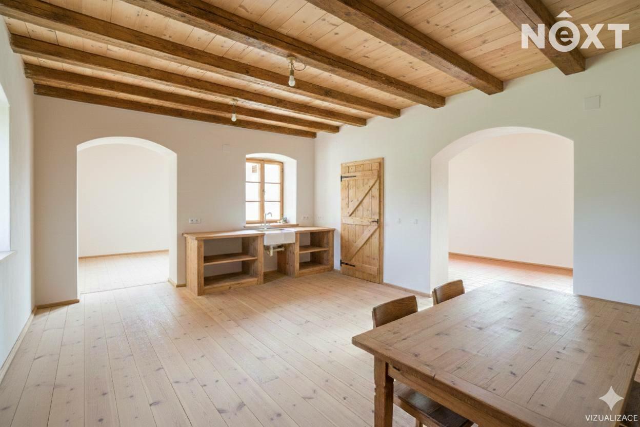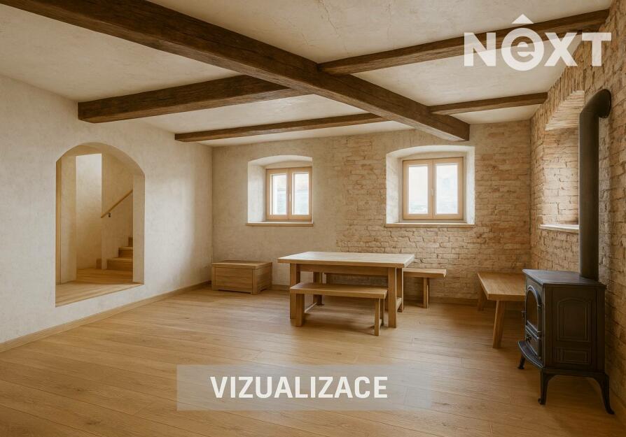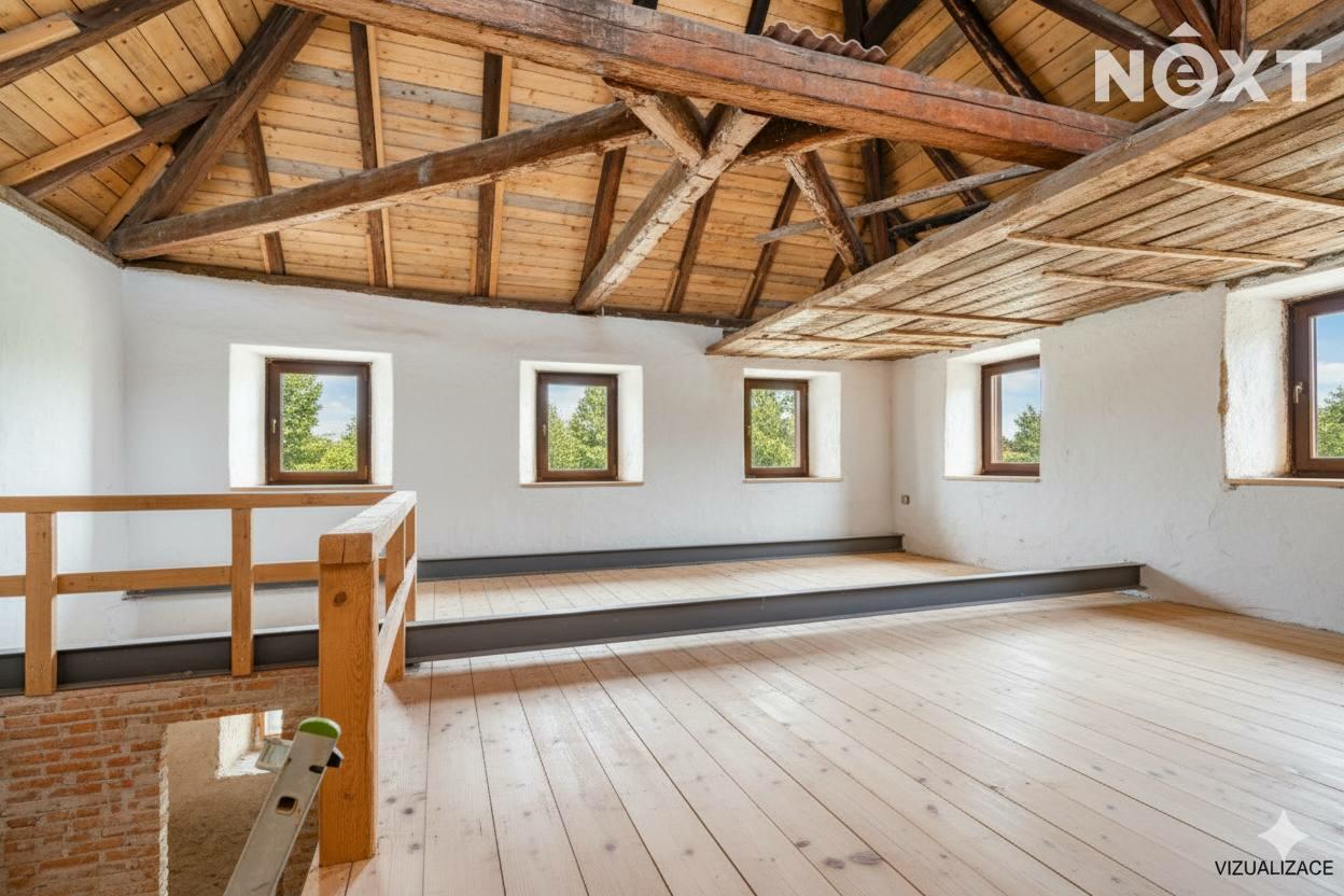 Na domě proběhla většina bouracích a přípravných prací. Dům nabízí výjimečný potenciál – lze dotvořit obytné plochy, pracovat s otevřenými krovy, vybudovat terasu nad stodolou a prostor využít pro rodinné bydlení, rekreaci či kombinaci s ateliérem/dílnou.