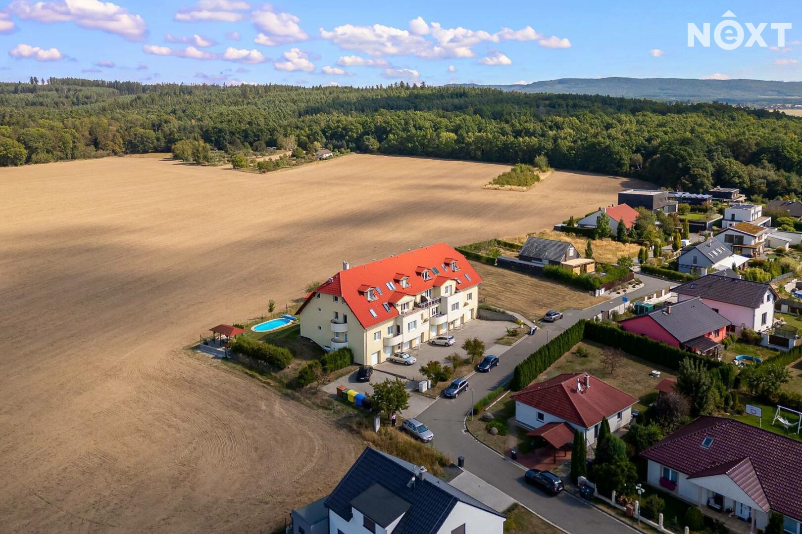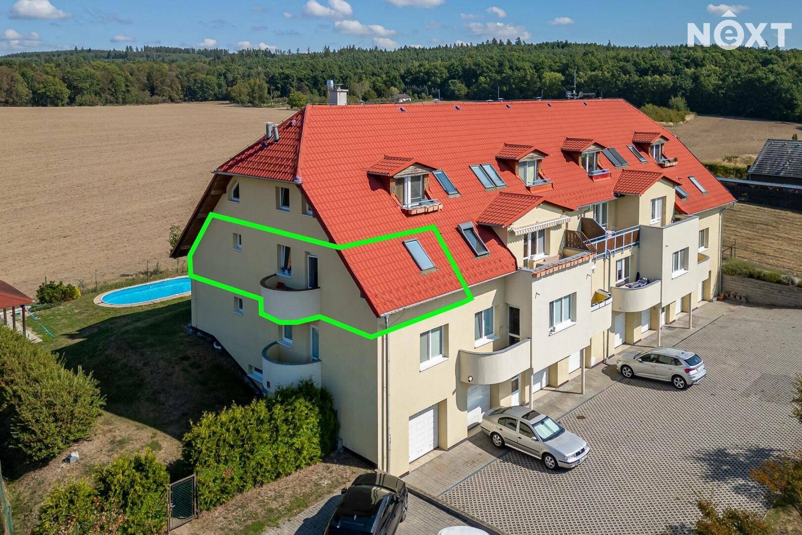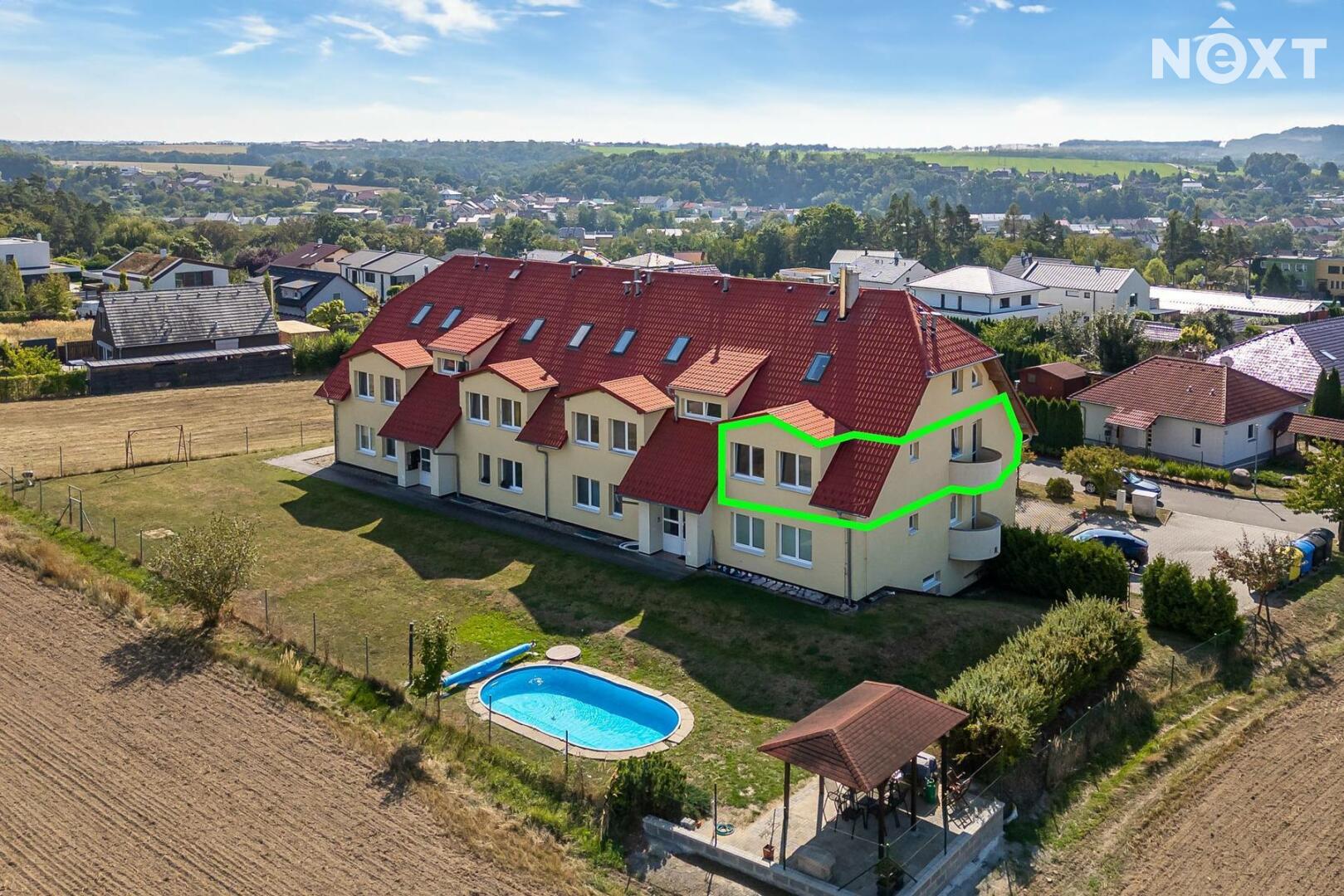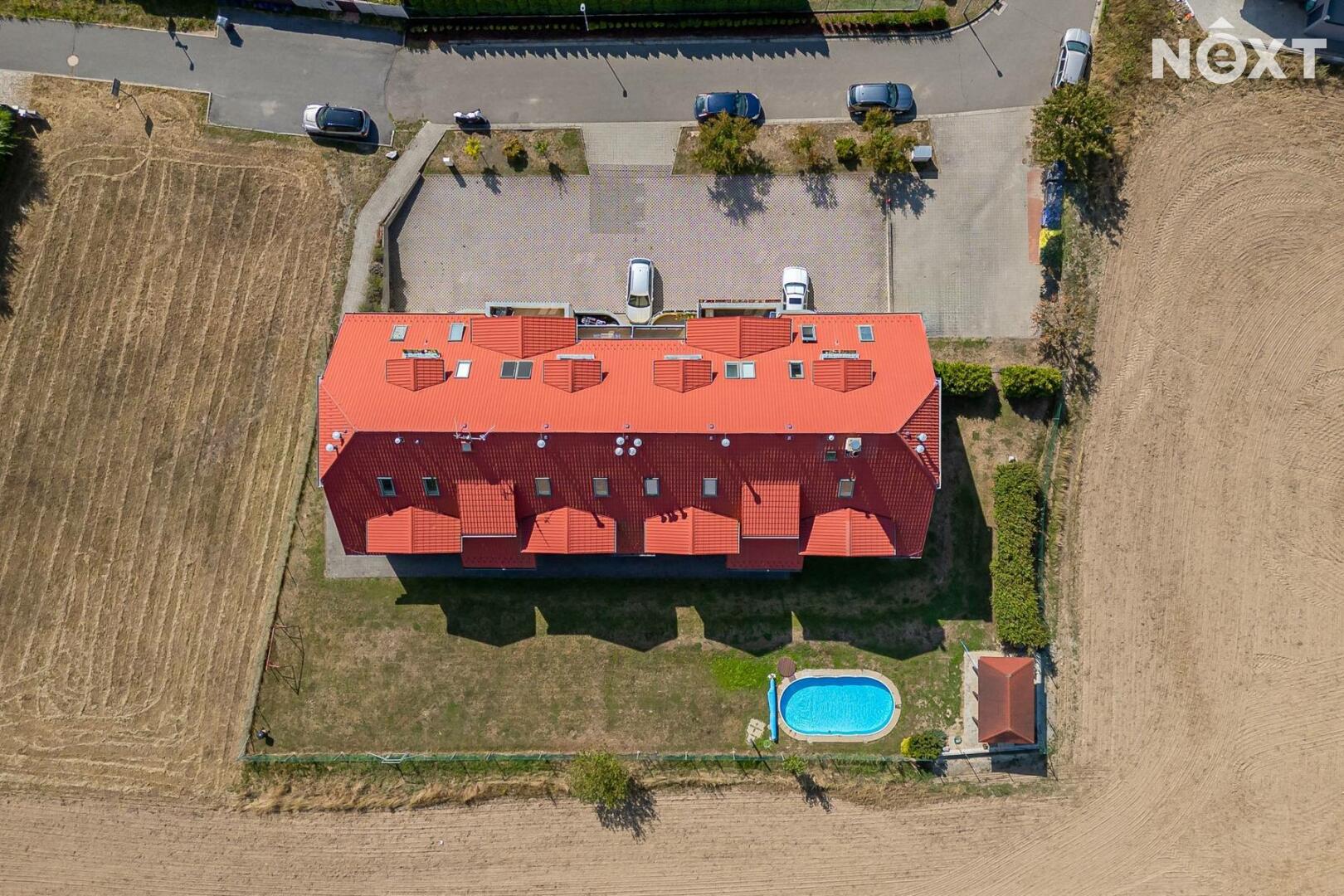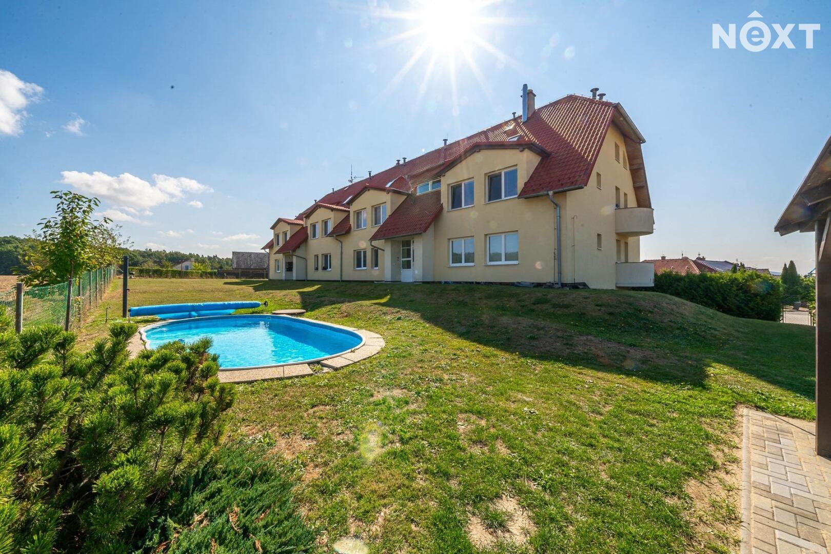 • společné vybavení domu: bazén, venkovní posezení, oplocená zahrada, kolárna, parkování přímo u domu