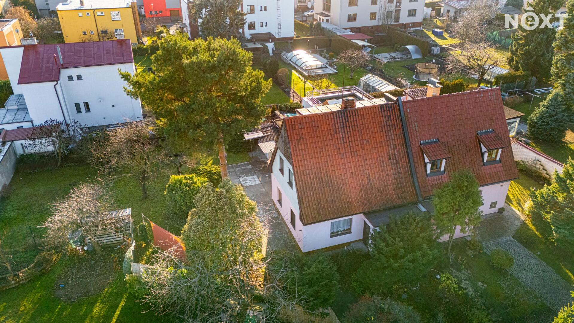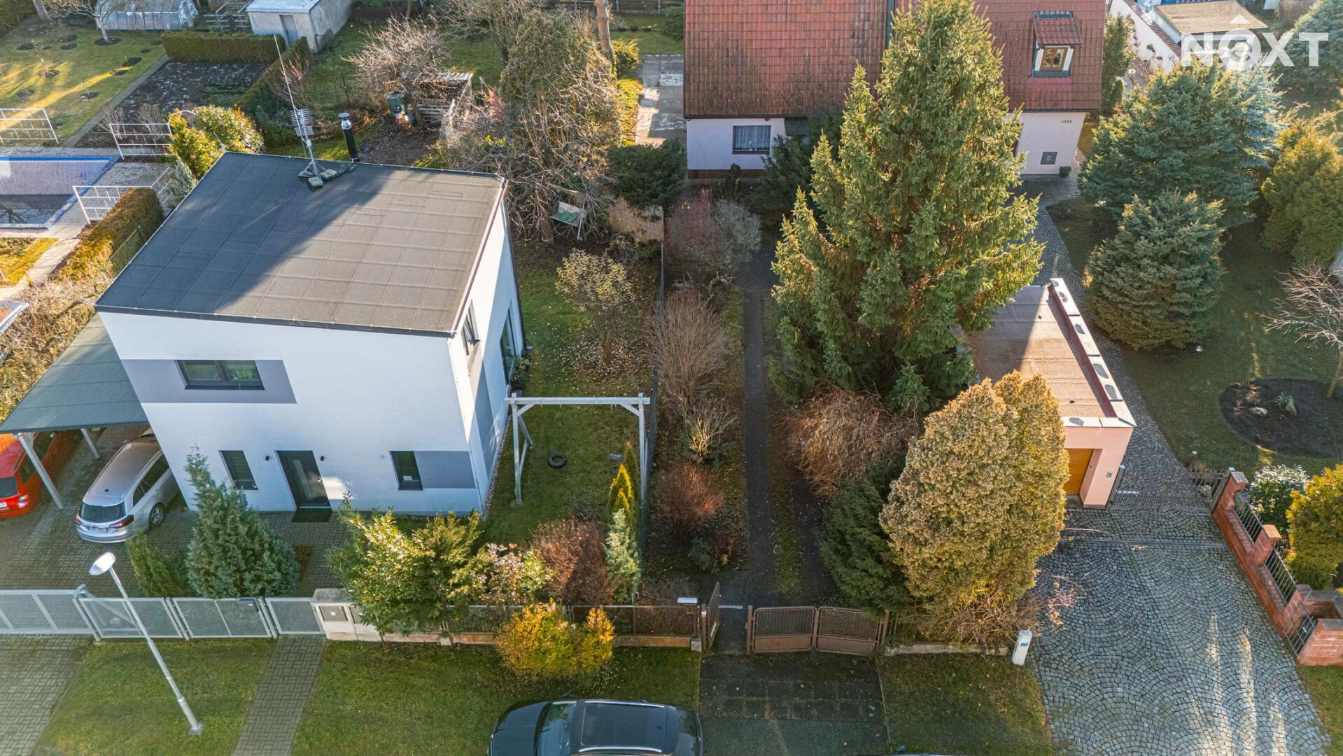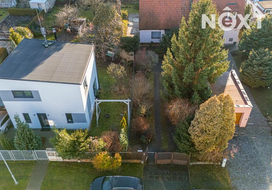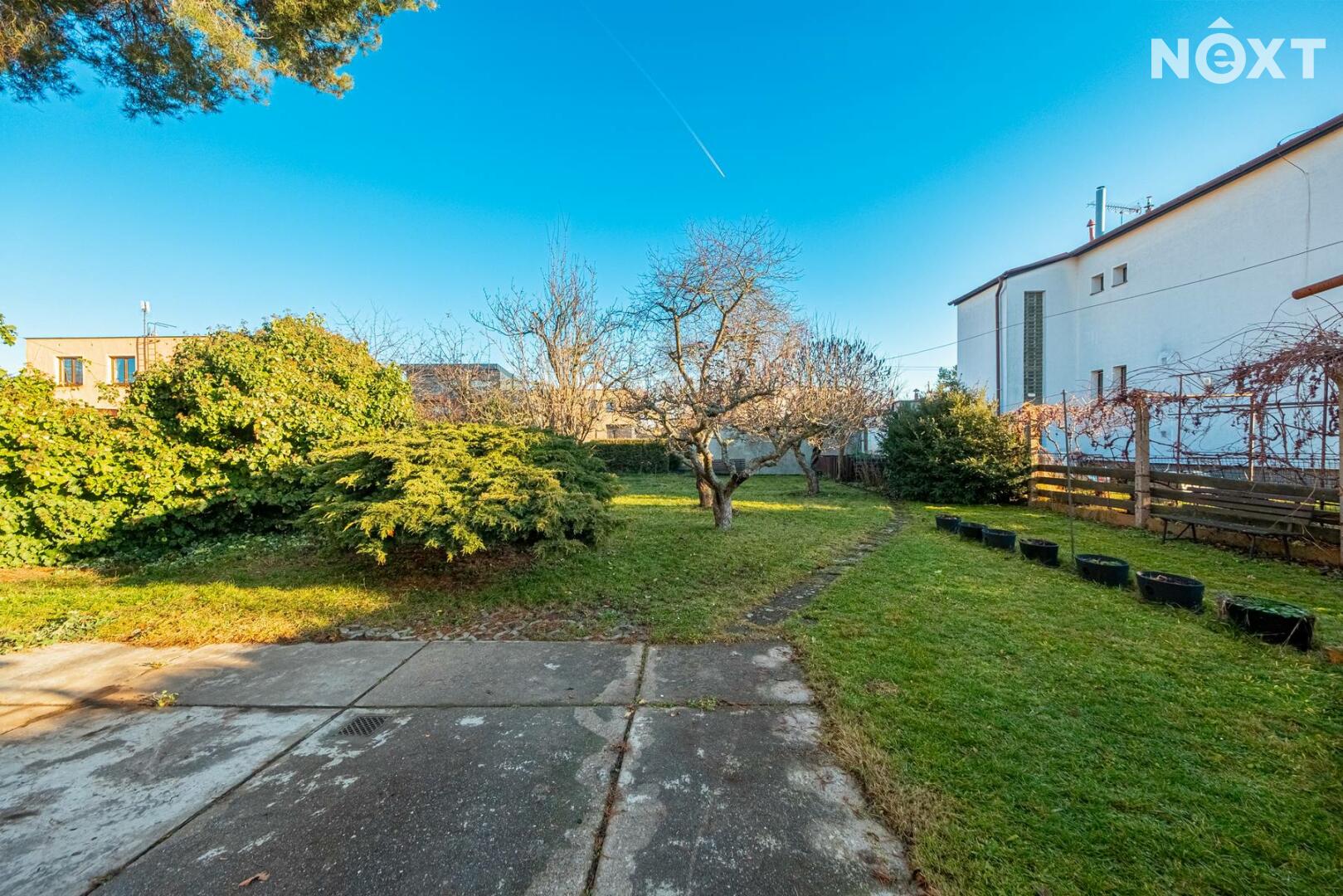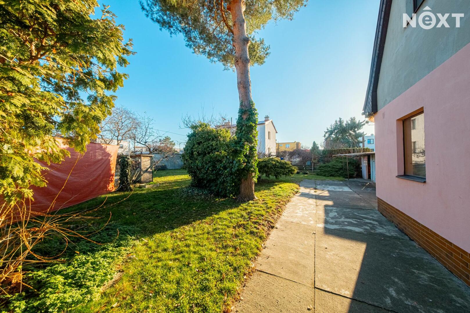 K rodinnému domu náleží udržovaná zahrada s posezením, která poskytuje klidné prostředí pro relaxaci. Na pozemku se nachází vzrostlé stromy a travnaté plochy, které zajišťují dostatek soukromí.