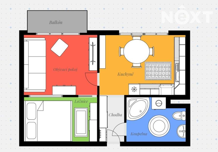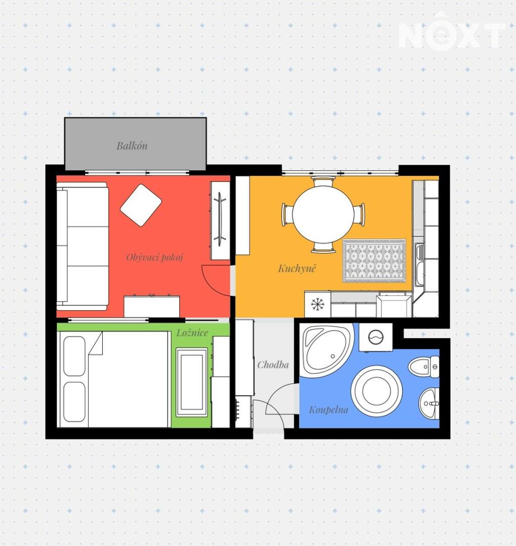 Součástí bytu je balkon, který nabízí příjemné místo k posezení, a také sklep, poskytující praktický úložný prostor.