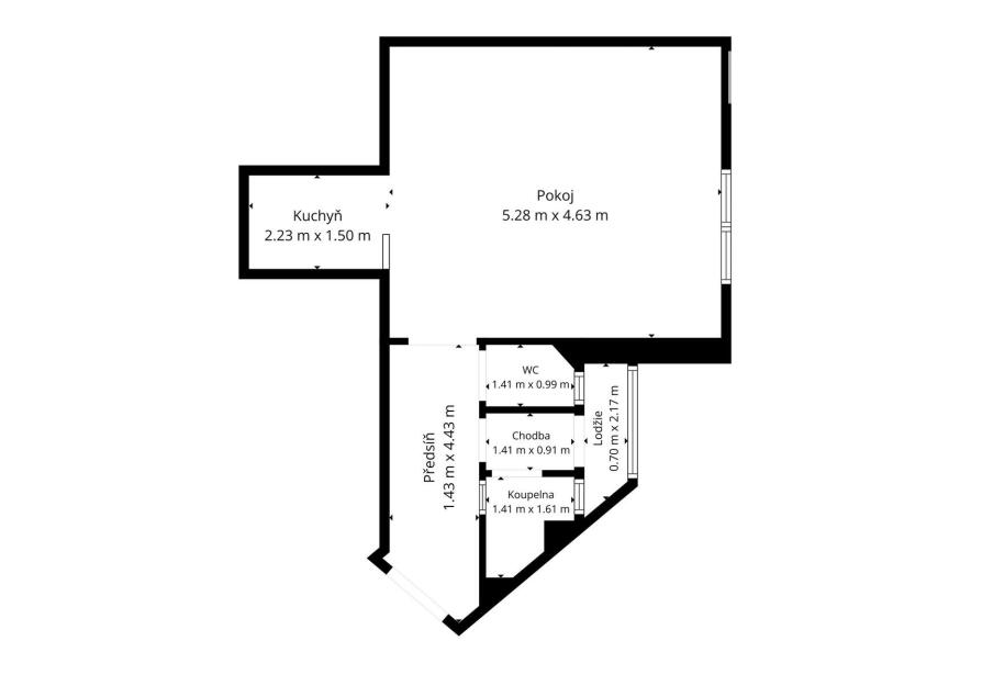 Byt se nachází ve 3. patře udržovaného domu a překvapí svou nadstandardní celkovou plochou 47 m², která zahrnuje užitnou plochu bytu 38,4 m², lodžii 1,8 m² a velkorysý sklep o velikosti 7 m² – ideální pro uložení kol, sportovního vybavení či sezónních věcí.
