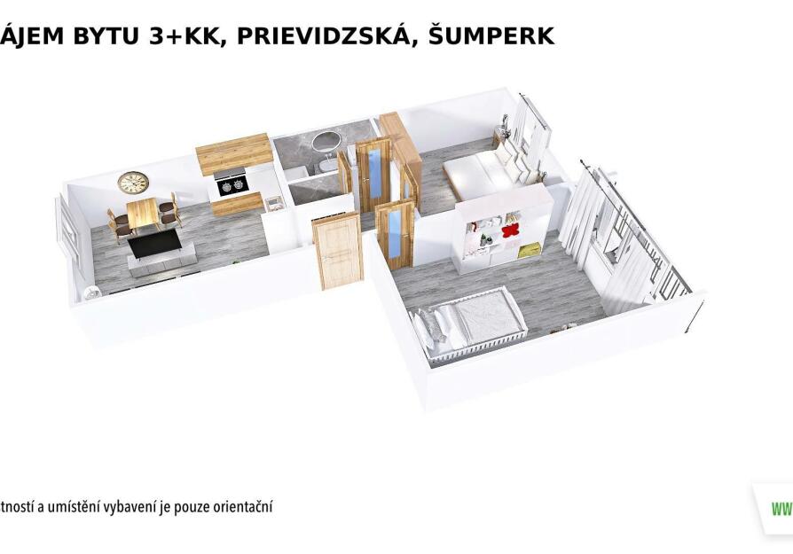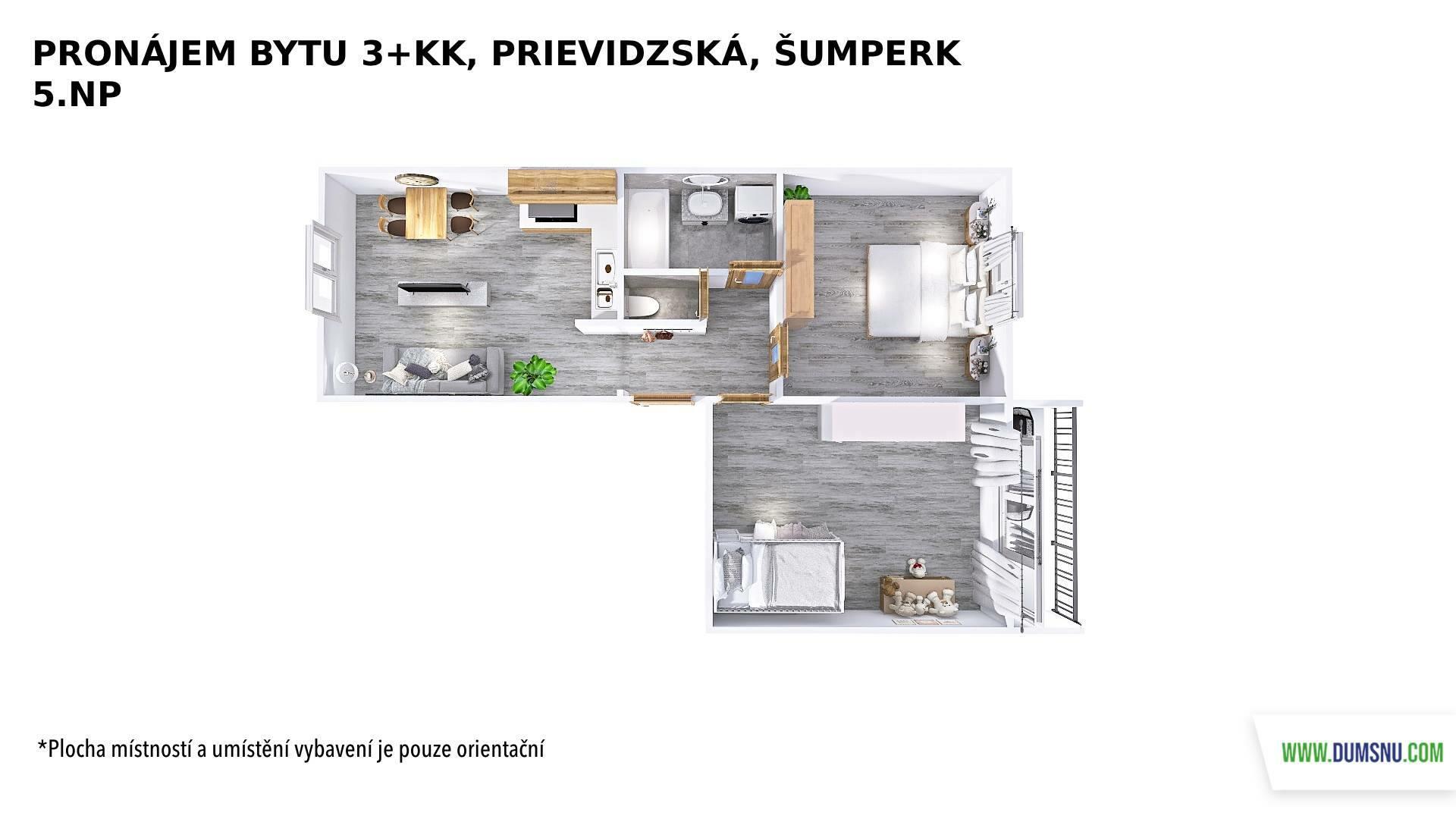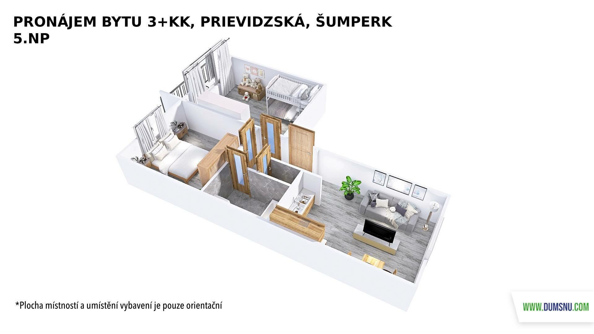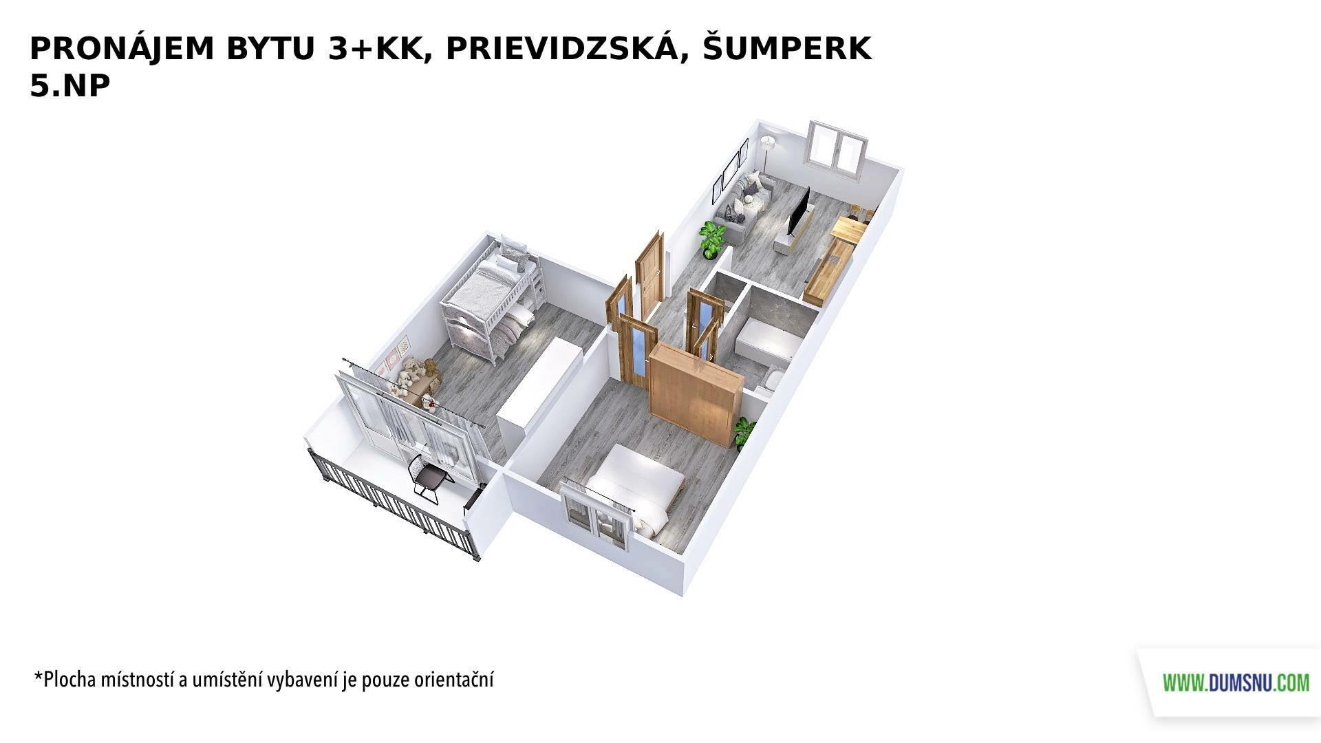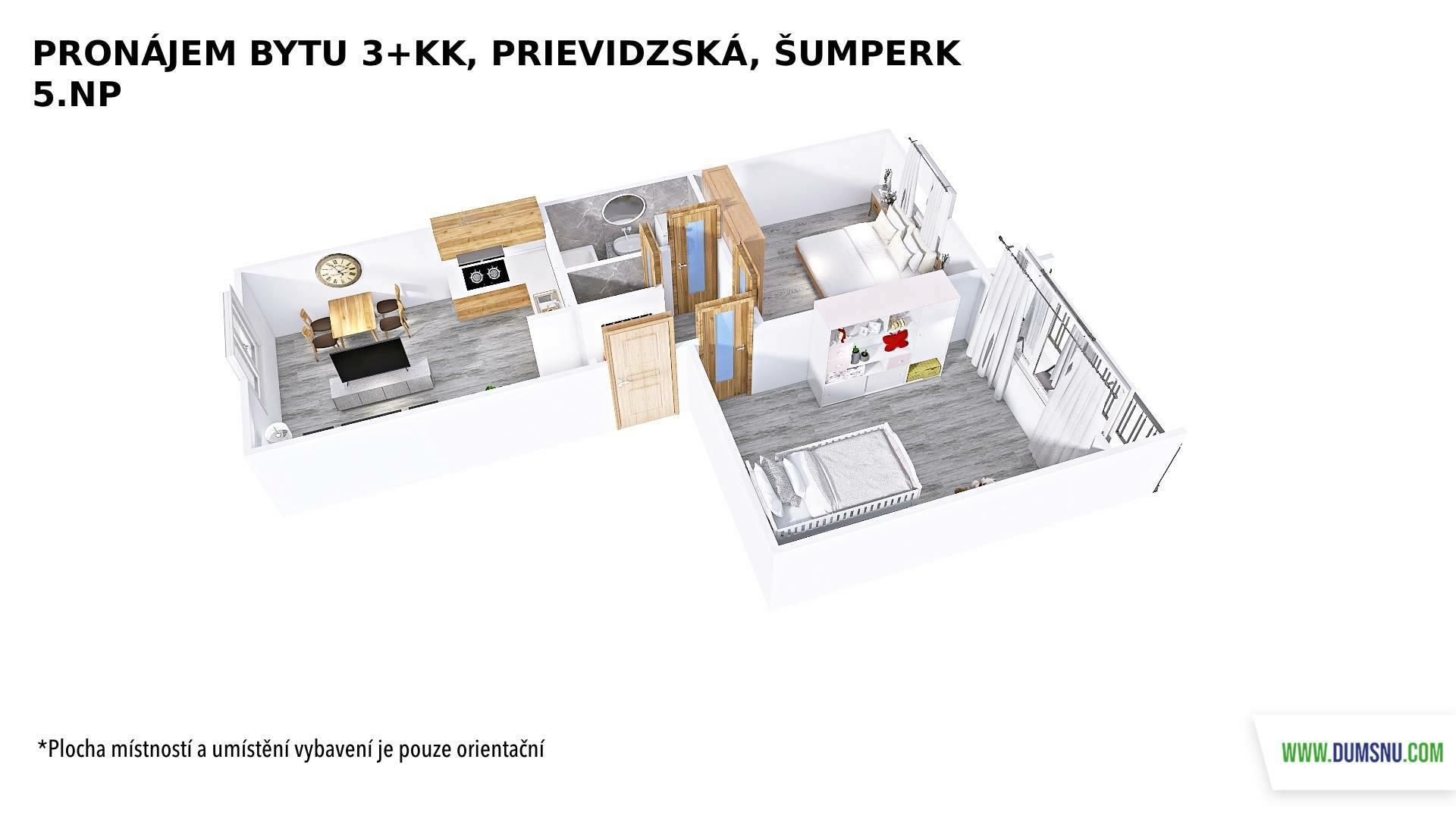 K dlouhodobému pronájmu nabízíme velmi pěkný, zrekonstruovaný byt o dispozici 3+kk, umístěný v 5. NP panelového domu s výtahem. Součástí bytu je lodžie. Byt je ve velmi pěkném stavu a připravený k okamžitému nastěhování.