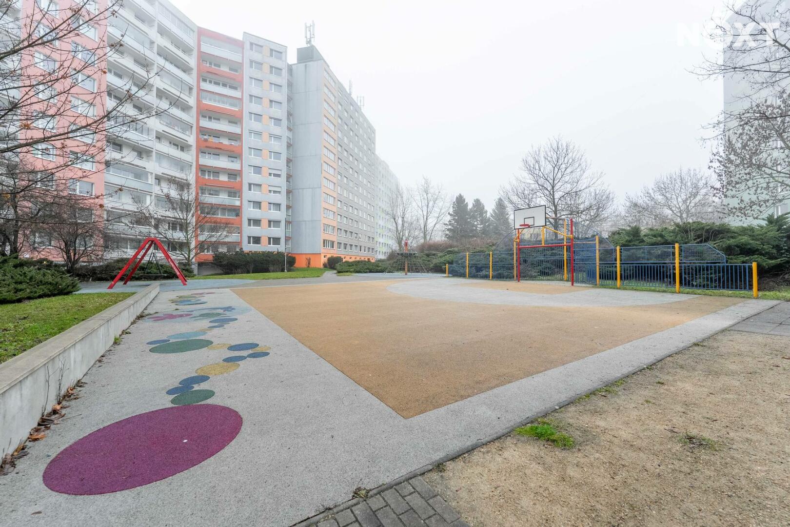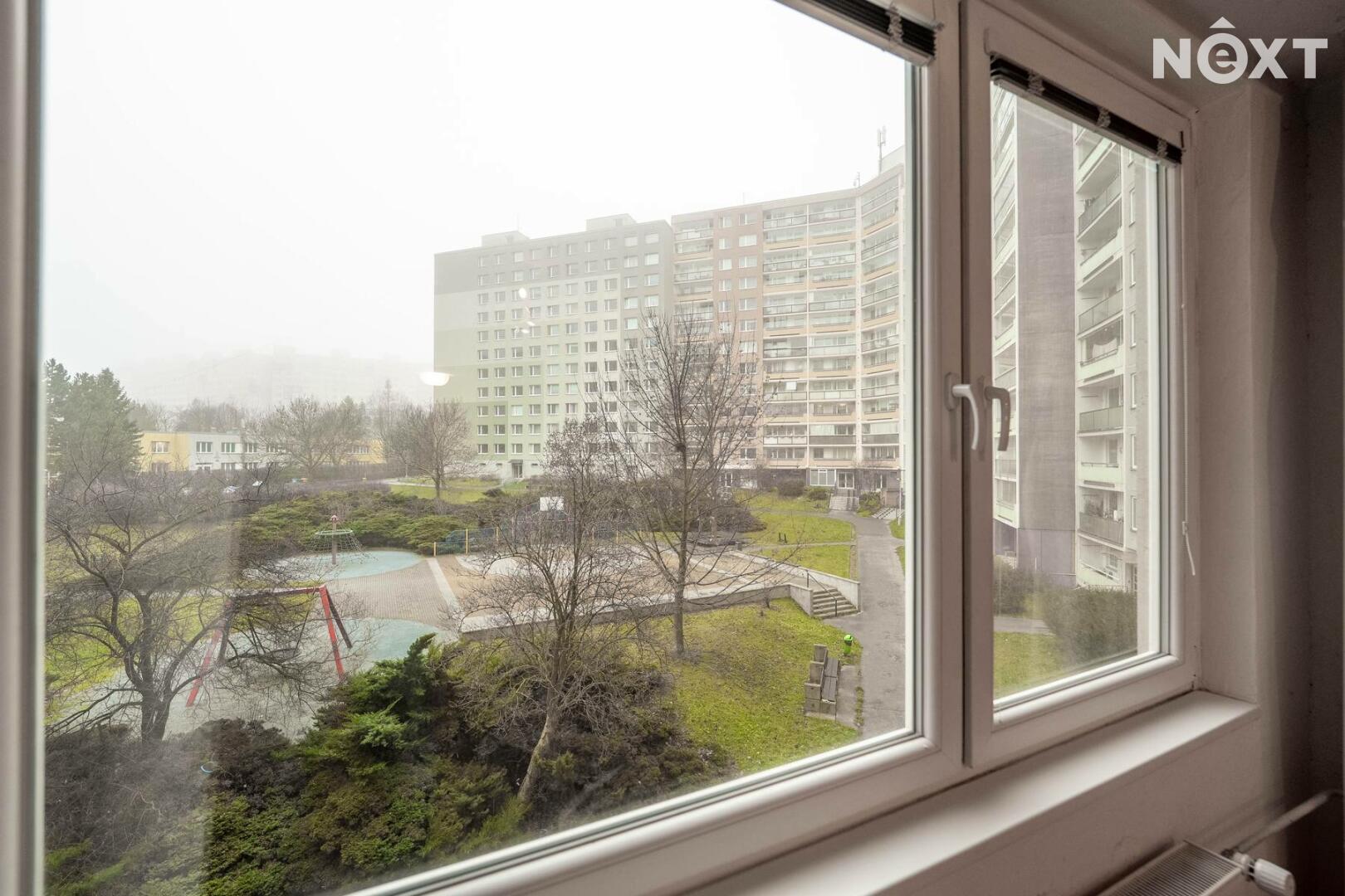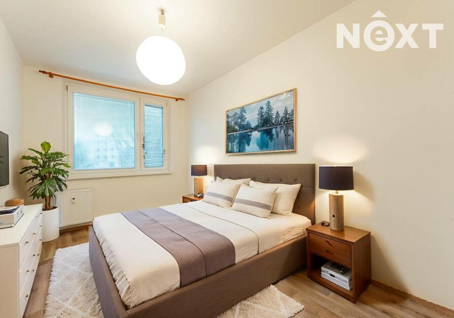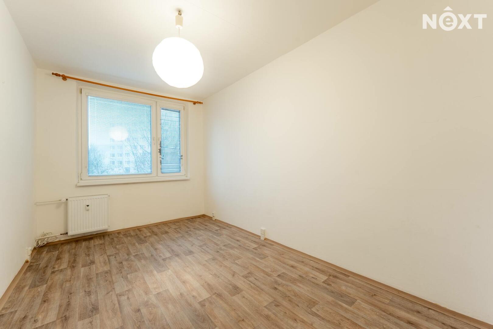 Byt se nachází ve 4 patře panelového domu. Z chodby se vchází do samostatné toalety, koupelny a obytných místností. Ložnice i obývací pokoj jsou situovány do vnitrobloku. Na obývací pokoj navazuje kuchyňská linka. Za domem je dětské hřiště, lékárna, Albert. Parkování je v okolí domu.