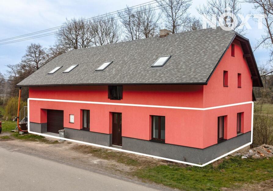Dům prošel v roce 2023 kompletní rekonstrukcí, včetně zateplení a nových rozvodů. K bytu náleží rozlehlá zahrada o výměře 1.028 m², prostorná garáž / dílna pro dvě auta (56 m²), dále dřevník a sklep o velikosti 15 m². Dům je částečně podsklepen.