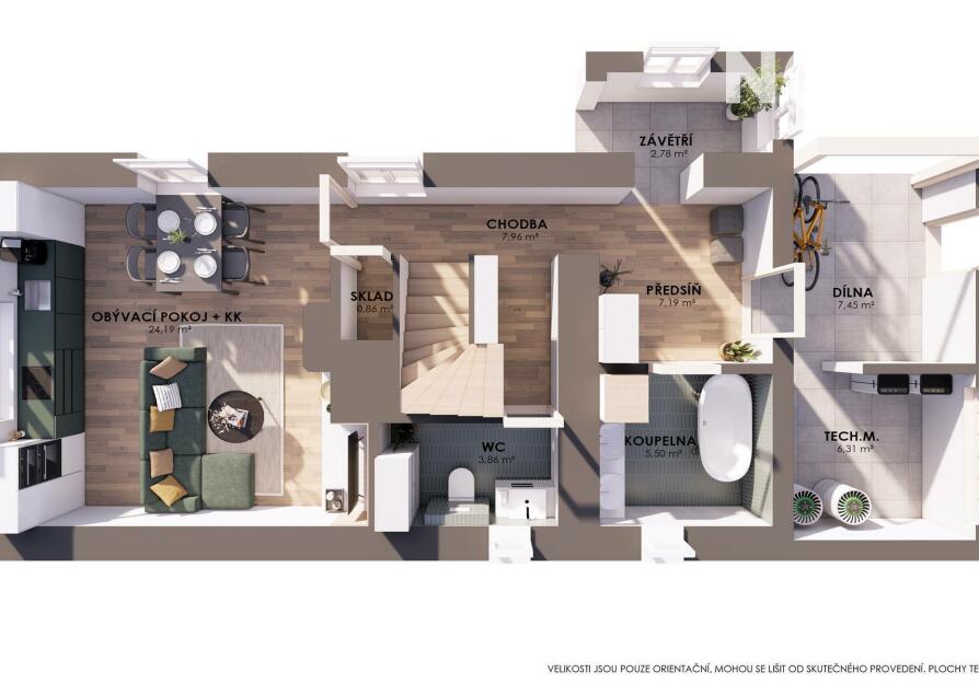 Pokud hledáte místo k trvalému bydlení nebo k rekreaci, které poskytuje soukromí, možnost seberealizace a zázemí pro cykloturistiku, turistiku a další aktivity, ale nechcete se starat o velkou zahradu, pak přesně tato chalupa může být to pravé místo pro vás. Chaloupka je vhodná buď pro vlastní bydlení v přírodě, anebo může být vhodnou volbou pro rekreaci, anebo jako investiční příležitost pro krátkodobé pronájmy. Díky své atraktivní lokalitě (CHKO Brdy) a skvělé dostupnosti na okraj Prahy (cca 45 min jízdy autem), do Příbrami (cca 15 min jízdy autem), či do Plzně (cca 40 min jízdy autem), patří tato lokalita mezi velmi oblíbená a vyhledávaná místa. Zastavěná plocha chalupy je 88 m², přilehlý pozemek 114 m². V přízemí se nachází dvě obytné místnosti, koupelna a toaleta a nad celým domem je prostorná půda, která se nabízí k dalšímu využití. Dům je napojen na místní vodovod a je připojen k elektrické síti. U domu je původní jímka.V současné době je dům ve stavu započetí přípravných prací pro plánovanou rekonstrukci objektu dle projektové dokumentace a vydaného stavebního povolení (dále "SP"). Nic tedy nebrání pokračovat v plánovaných úpravách. Dům o dispozici 3+kk nabízí velký potenciál pro vlastní seberealizaci. Současná užitná plocha v přízemí činí 66,51 m2 a v podkroví 43,6 m2. Pozemek je oplocen a je k němu přístup z veřejné komunikace. Naproti domu je část obce upravená jako parčík, místní hospůdka a požární nádrž, kterou místní využívají i k letnímu osvěžení a zaplavání. Vydané SP ušetří novým majitelům mnoho času a zároveň i peněz. V rámci nového návrhu dojde k úpravě vnitřní dispozice - viz přiložené půdorysy návrhu. V přízemí domu je závětří, předsíň, na kterou plynule navazuje chodba, ve které je schodiště do podkroví. V přízemí je dále samostatná koupelna, samostatná toaleta, sklad a obývací pokoj s kuchyní a jídelním koutem. Na hlavní prostor domu navazuje také dílna a technická místnost. Pro názornost zde přikládáme také vizualizace jak lze pojmout návrh interiéru domu, kde se snoubí kombinace přírodních materiálů a odstínů s požadavky na současné nároky bydlení. V rámci návrhu vznikne v přízemí užitná plocha o výměře 66,10 m2 a v podkroví 42,79 m2 - dispozice 3+kk. Nepomuk pod Třemšínem leží asi 15 km od Příbrami a 5 km od Rožmitálu pod Třemšínem, kde je veškerá občanská vybavenost. V Rožmitále jsou obchody, škola, školka, zdravotní středisko, lékárna, pošta, policie, autobusové nádraží, stavební úřad. V Příbrami je nemocnice. Dopravní obslužnost zajišťuje autobusová doprava. Veřejná prostranství kolem návsi, upravená autobusová zastávka, parčík s lavičkami a zejména čistý potok, jsou dobrou vizitkou obce a jejích obyvatel. Dnes žije trvale v obci 200 obyvatel. V letních měsících ožívá vesnice přítomností chalupářů, kteří se zasloužili o záchranu mnoha stavení, která přestavěli většinou s citem pro venkovskou architekturu. Pro komunikaci uvádějte evidenční číslo zakázky N115522.