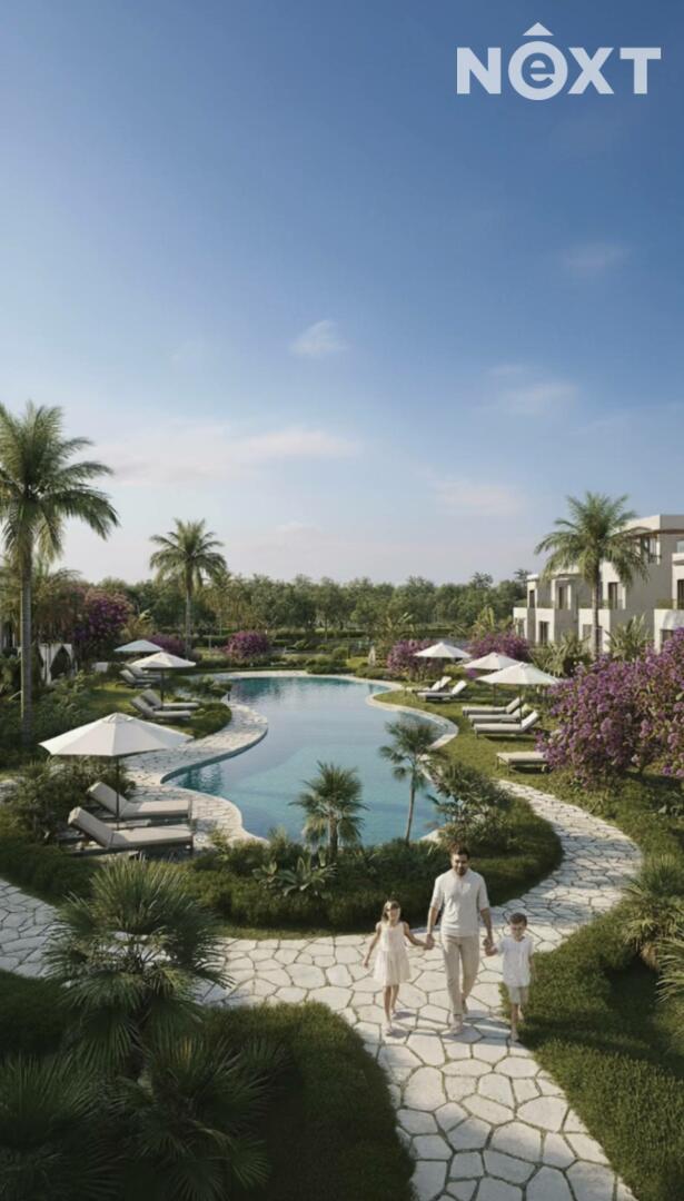Nový projekt v zahradě s bazény. Přízemní apartmán v projektu Rivera Rezidence Amazi 2+kk o vel. 54 m2 s výstupem na zahradu 50 m2, lokalita Hawana Salalah, Sultanát Omán, Arabské moře 3 minuty pěšky od domu, Arabský poloostrov.