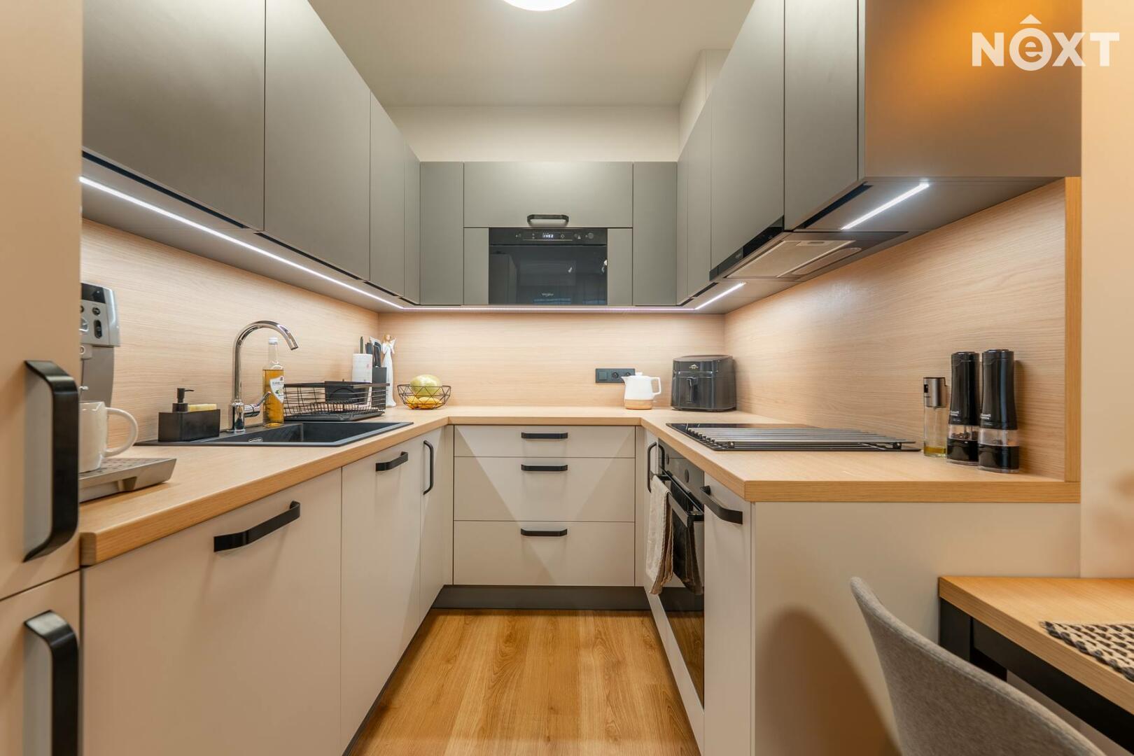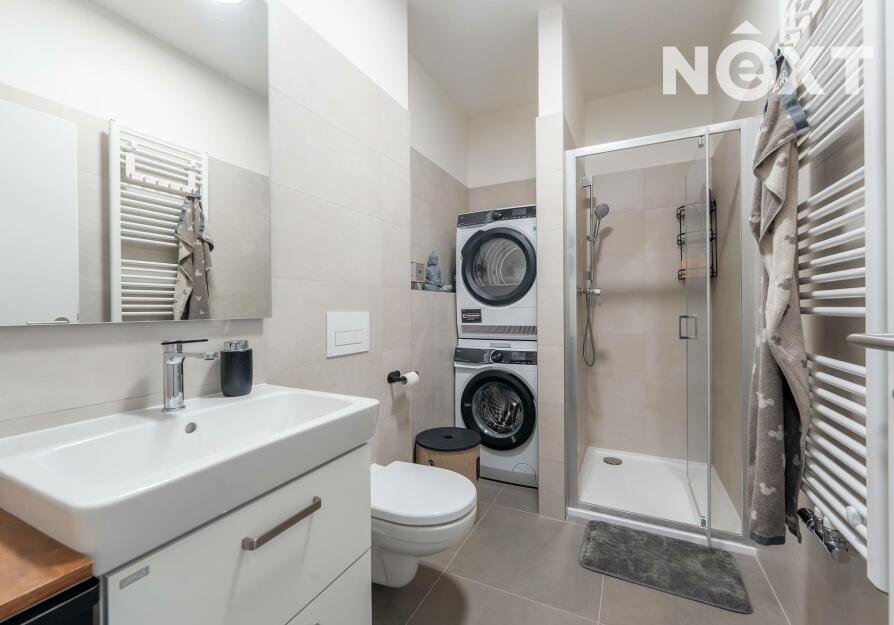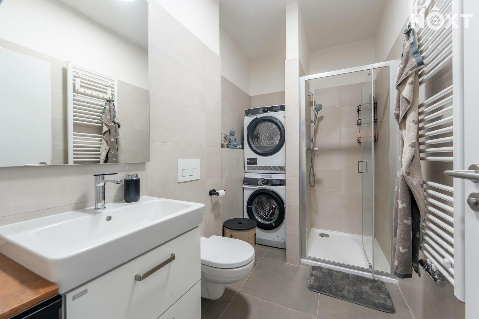 Moderní byt 2+kk, 39,2m2 /sklep, terasa 18 m2 a parkovací stání v podzemních garážích nabízí pohodlné bydlení pro dvě osoby. Byt se nachází v části Kročehlav, kousek od OC Oáza, dvě minuty chůze na autobusovou zastávku MHD a spojů do Prahy. Byt je situován na východní stranu, s okny do hezkého vnitrobloku se zelení. Koupelna je vybavena sprchovým koutem, umyvadlem a toaletou. Z chodby vybavené vestavěnou skříní se vstupuje do obytné místnosti s kuchyňským koutem do písmene "U", který nabízí dostatek úložného i pracovního prostoru. Obývací místnost je vybavena jídelním stolem a židlemi pro dvě osoby, TV stolkem. Odtud je dále vstup na prostornou terasu. Navazující ložnice je vybavena manželskou postelí, šatní skříní , nočními stolky a komodou. I z ložnice je přístup na terasu, kde je dostatek prostoru pro stůl s židlemi a grilem. Okna jsou opatřena sítěmi proti hmyzu a elektrickými venkovními roletami. K bytu patří sklepní kóje a krajní parkovací místo nadstandardní velikosti. Lze parkovat auto i motorku současně. Náklady na bydlení jsou 2.823 Kč zálohy + 900 Kč elektřina, která zůstává na majitele. Měsíční nájem je za byt, parkování a sklep 21.500 Kč, Kauce 43.000 Kč, RK 21.500.