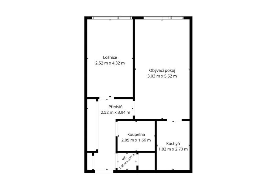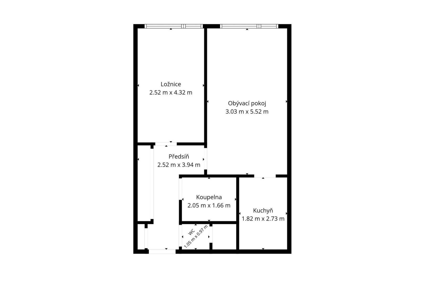 Byt má praktickou dispozici 2+kk s celkovou podlahovou plochou cca 47 m². Dominantou bytu je obývací pokoj o velikosti cca 16,7 m², který nabízí dostatek prostoru pro obývací i pracovní část. Oddělená kuchyň o velikosti cca 5,0 m² je řešena prakticky a nabízí dostatek pracovní i úložné plochy. Samostatná ložnice o velikosti cca 10,9 m² poskytuje klid a soukromí. Součástí bytu je dále koupelna s vanou, samostatné WC a prostorná předsíň s úložnými prostory.