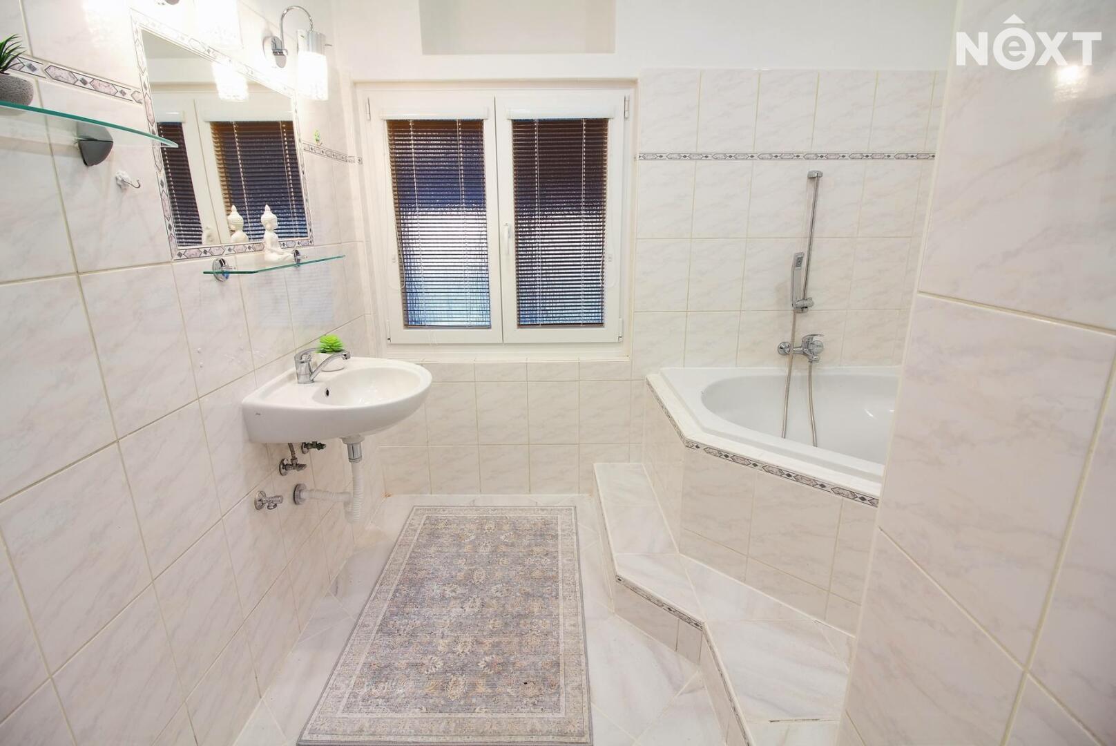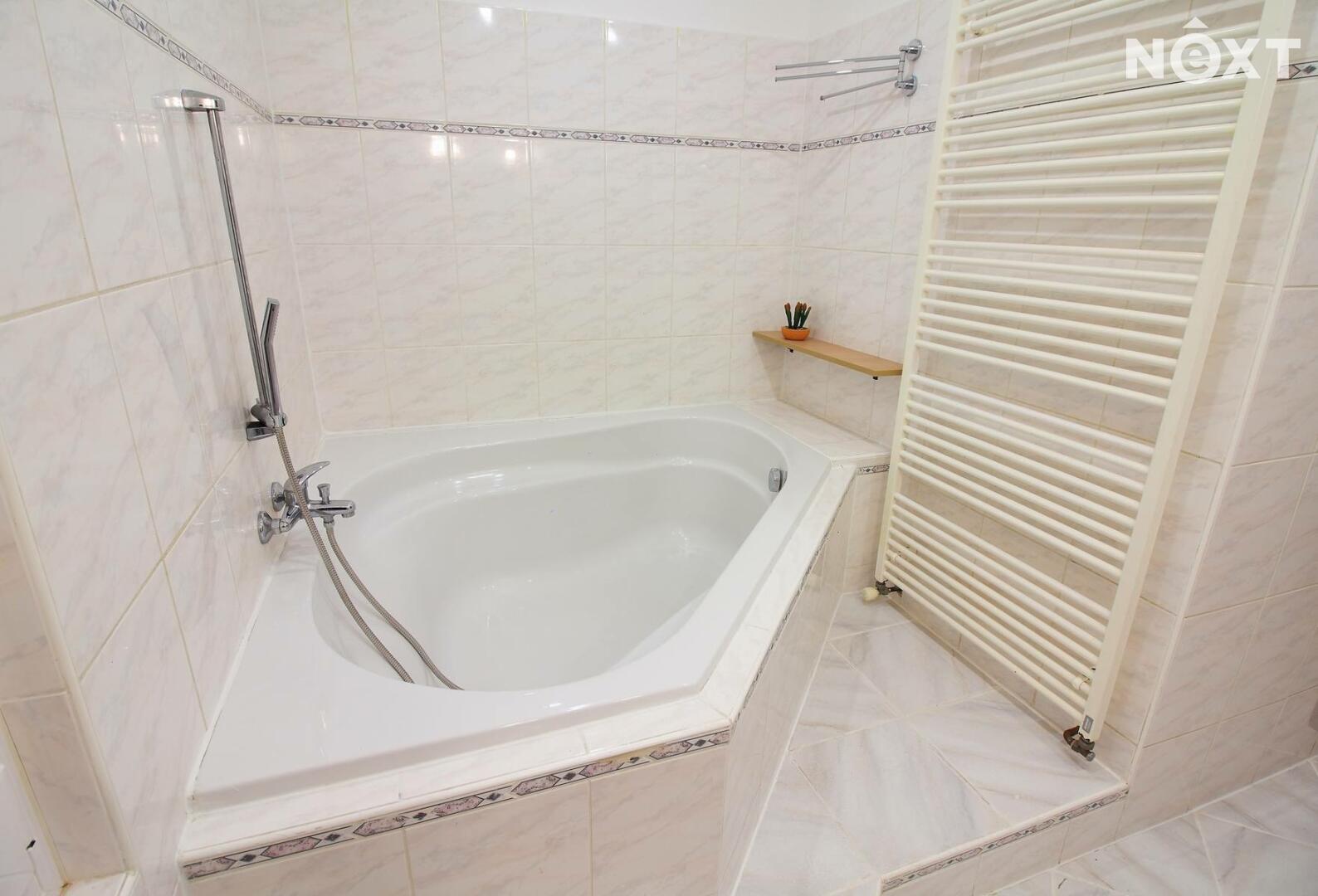 koupelnu s vanou a oddělenou toaletu.