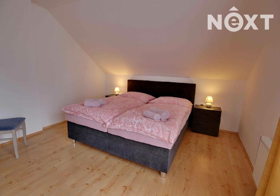 Jedná se o dvoupodlažní rodinný dům s oplocenou zahradou: dispozice přízemí: vstupní hala, kuchyň propojená obývacím pokojem a výstupem na zahradu, koupelna se sprchovým koutem a wc, 2.np: 4 samostatné pokoje s výstupem na terasy, koupelna se sprchovým koutem a wc.