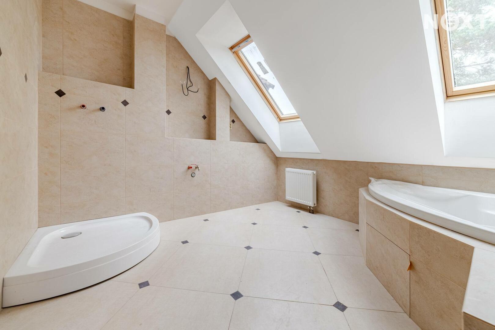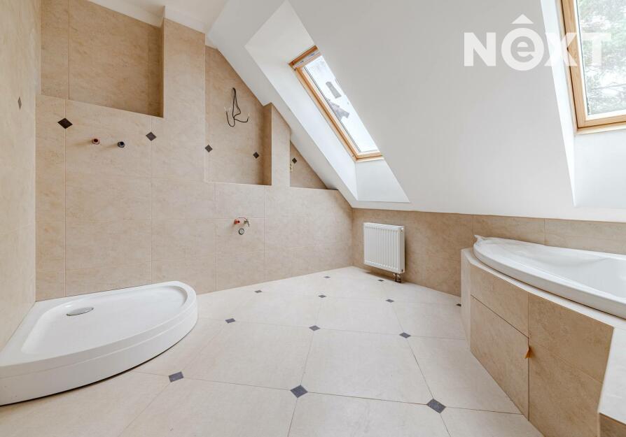 Prodej řadového RD, 5+1, 160 m2, pozemek 469 m2, Chržín, okres Kladno. Tento prostorný dům se nachází v Dolní Kamenici, v části obce Chržín. Dům je z větší části po rekonstrukci, v interiéru je několik prvků k dokončení - kuchyňská linka, podlahy, zárubně a dveře, osvětlení, apod. Dispoziční řešení je: v přízemí prostorný obývací pokoj s funkčním krbem, jídelna, kuchyň, koupelna se sprchou, samostatná toaleta, šatna, komora. Ve druhém podlaží jsou tři neprůchozí pokoje, hlavní koupelna s rohovou vanou a toaletou, technická místnost. V podkroví je k dispozici ateliér s komorou. Zahrada je rovinatá, se vzrostlými tújemi. Parkování možno přímo na pozemku. Klidná lokalita s občanskou vybaveností v blízkém městě Velvary či v okolních vesnicích. Dostupnost na dálnici D8 do 3 minut autem, do centra Prahy cca 35 minut. Financovat lze hypotékou, kterou Vám rádi zdarma zařídíme. Pro více informací volejte makléře. Pro komunikaci uvádějte evidenční číslo zakázky N115617.