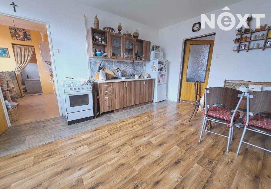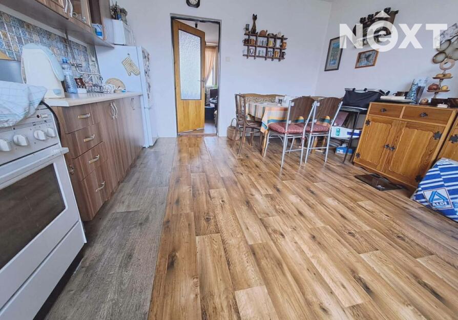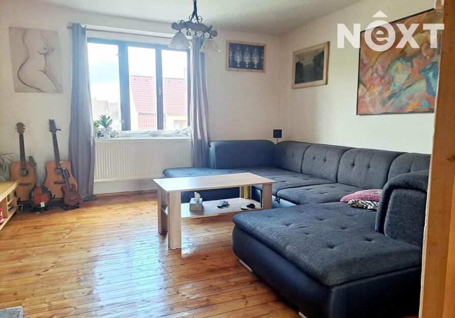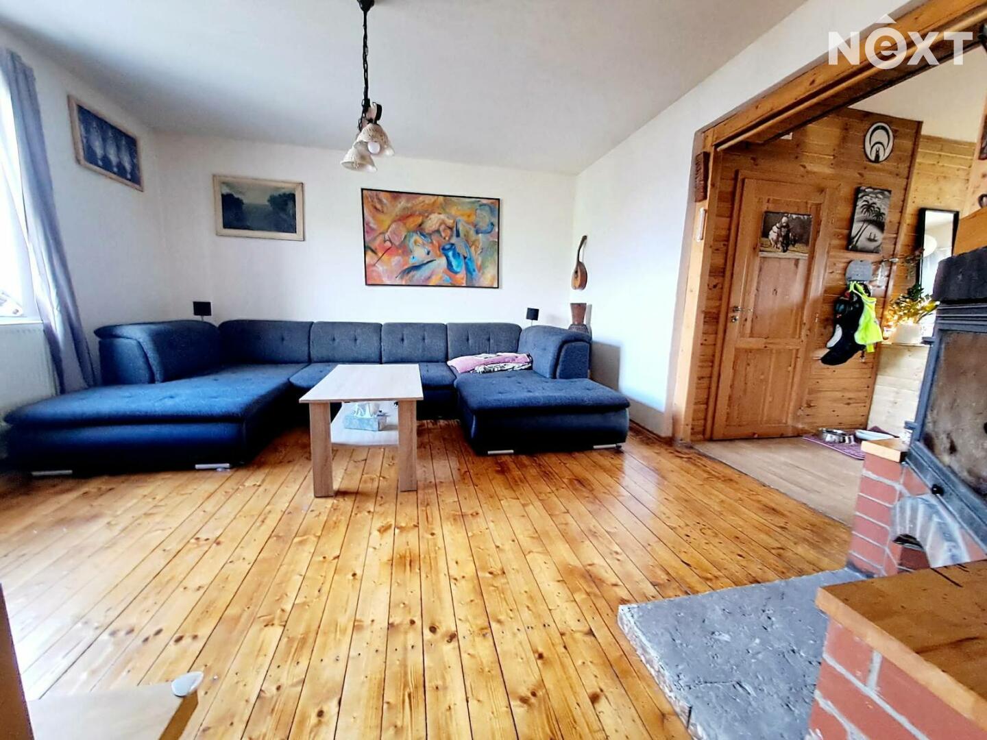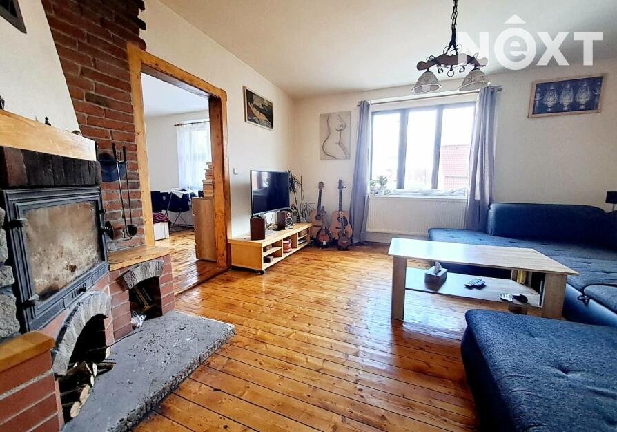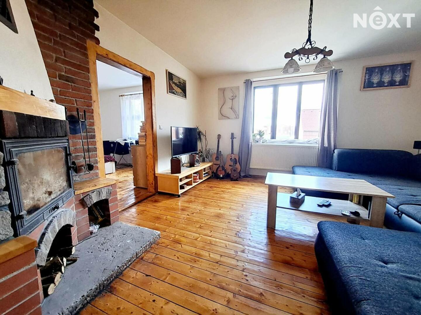 První patro: byt 3+1, 70m2, po zdařilé rekonstrukci, dřevěné podlahy, v koupelně dlažba, v obývacím pokoji je nový krb, je možné vytápět celý byt dřevem, plynový kotel zajišťuje topení a teplou vodu, v bytě jsou radiátory, k bytu náleží prostorná komora na chodbě.