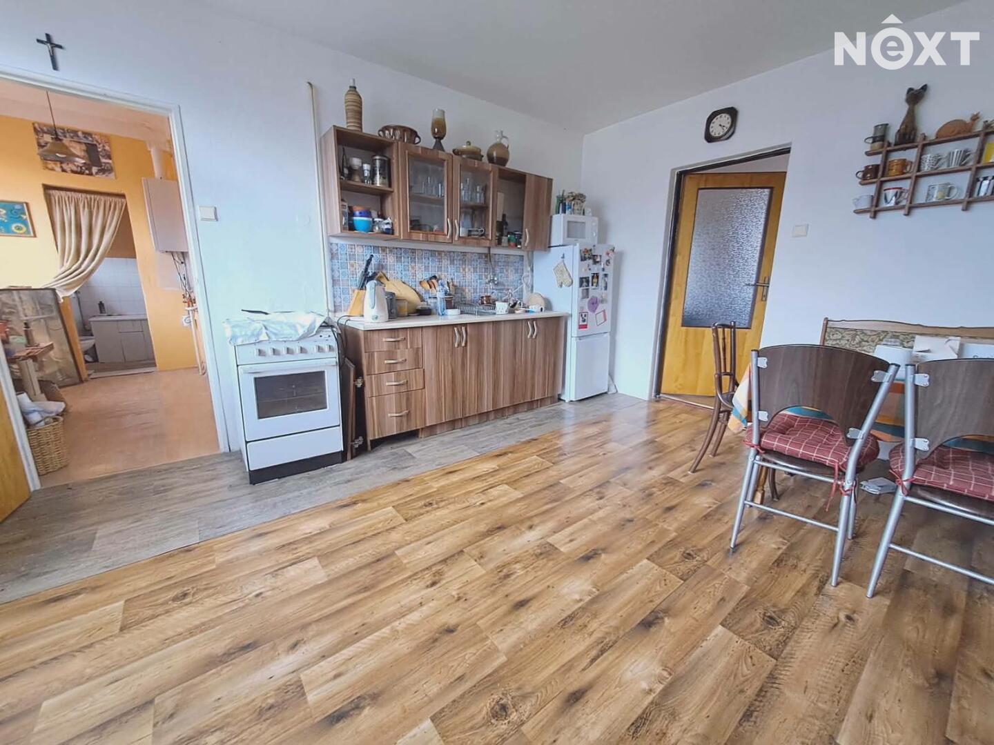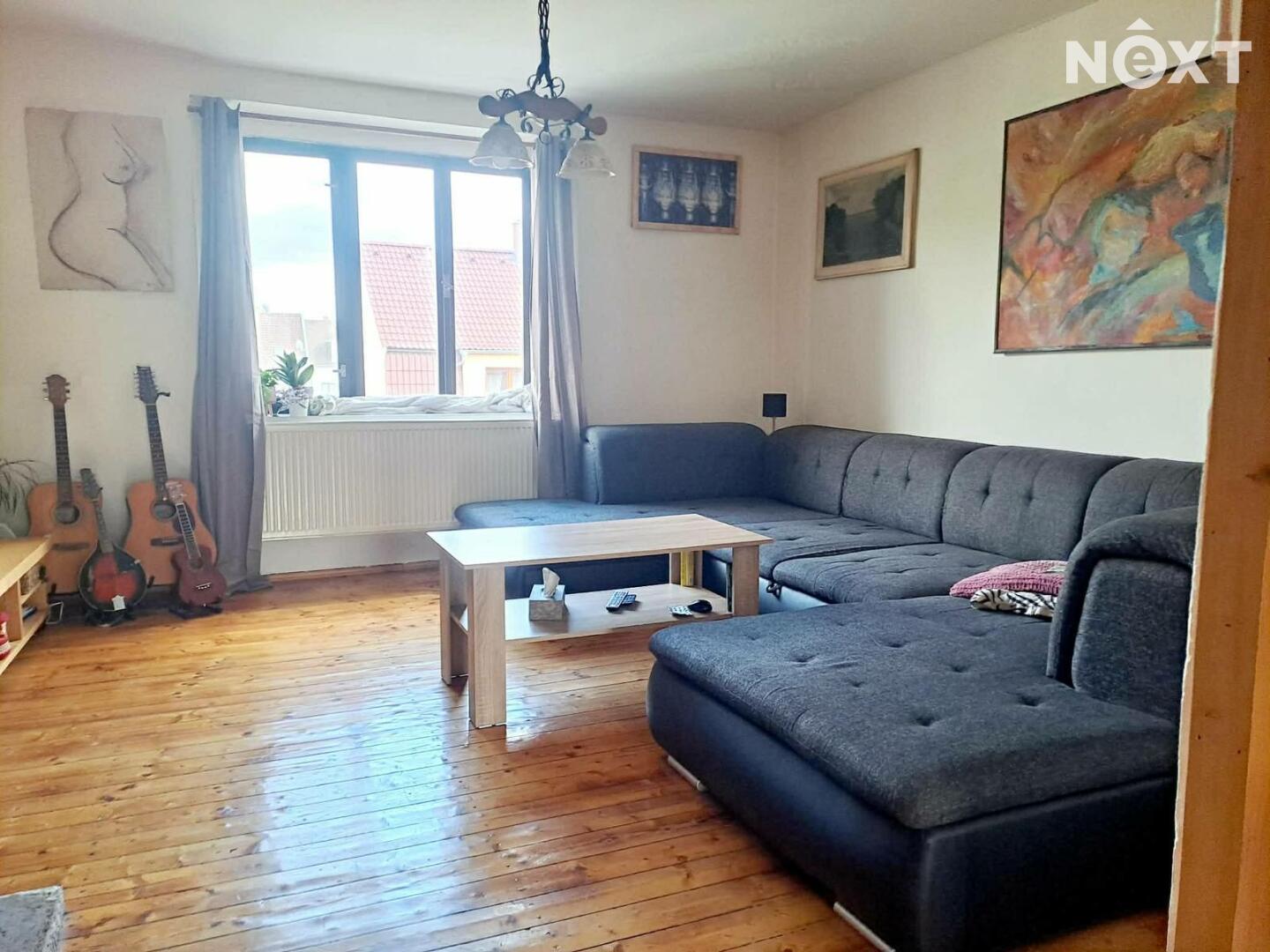 Přízemí: byt 70m2, 3+1, k rekonstrukci, vytápění je plynové, teplou vodu zajišťuje elektrický bojler, k bytové jednotce náleží komora na chodbě.