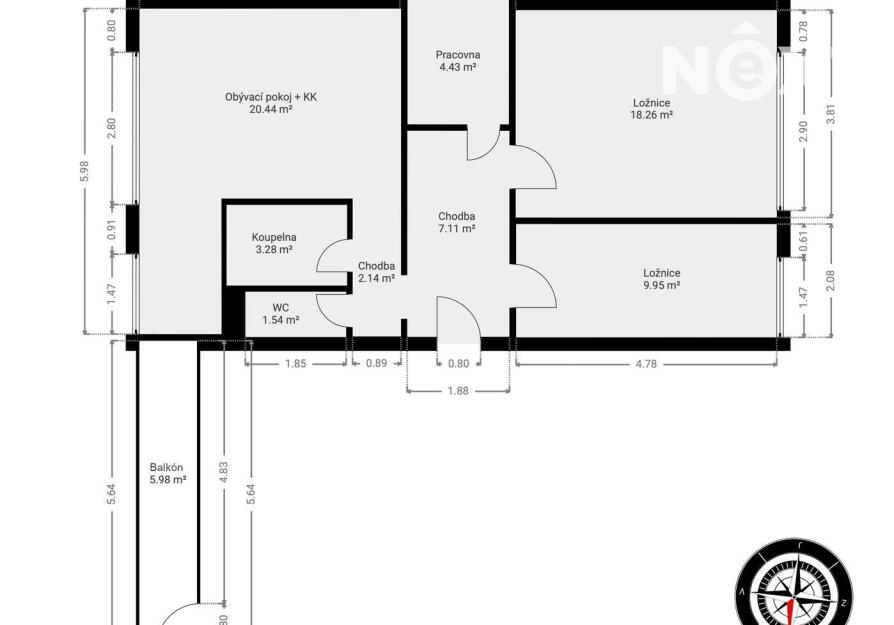 Dispozice a standard dle fotoprezentace (poslední foto pouze ilustrativní s variantou případné další modernizace bytu). Podlahová plocha bytu 67 m2, lodžie 6 m2.