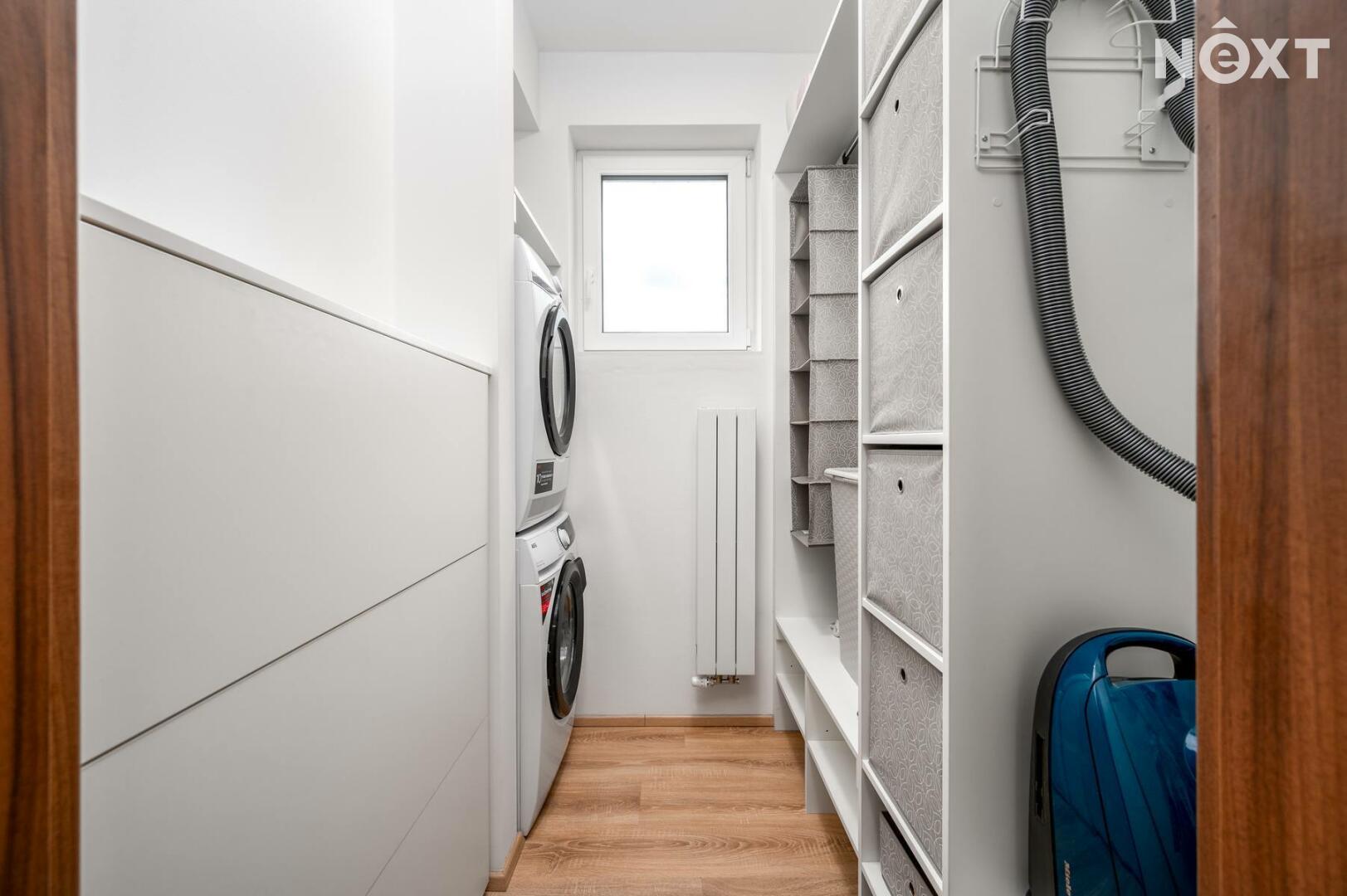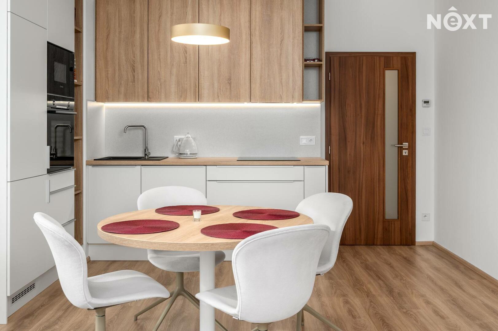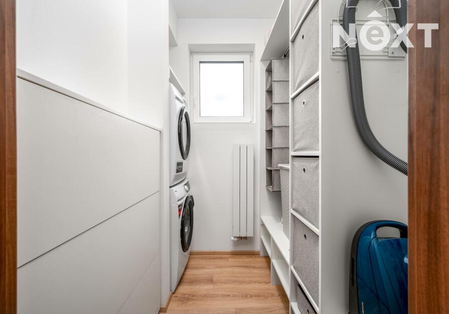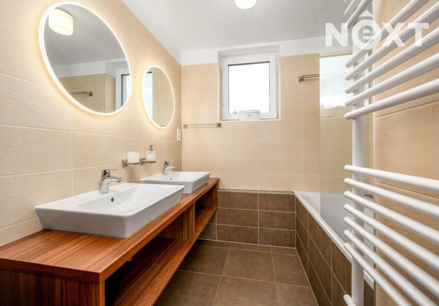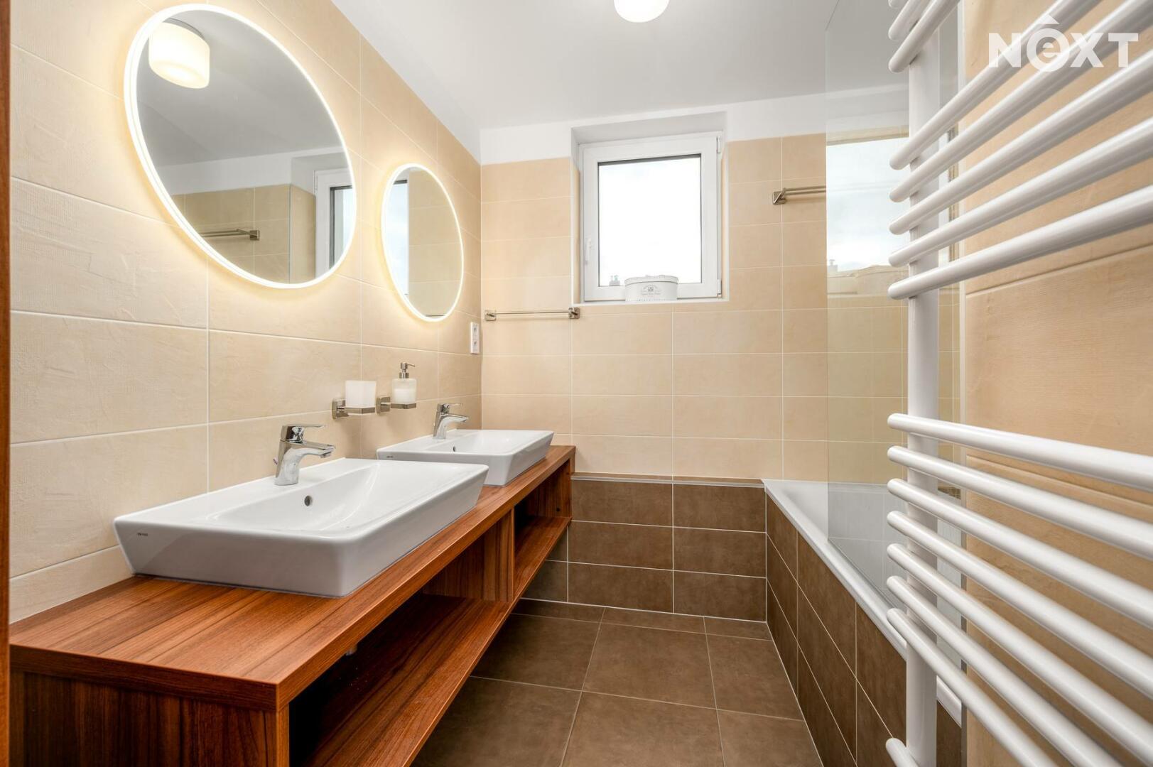 Standardy a vybavení: Kuchyňská linka na míru je vybavena vestavěnými spotřebiči značky Bosch, v bytě jsou kvalitní podlahové krytiny, vestavěné skříně a další vestavěný nábytek Komfort bydlení zvyšuje rekuperace, bezpečnostní vstupní dveře a dostatek úložných prostor. Koupelna je řešena s důrazem na praktičnost i estetiku – disponuje dvojitým umyvadlem, vanou a velkým oknem.