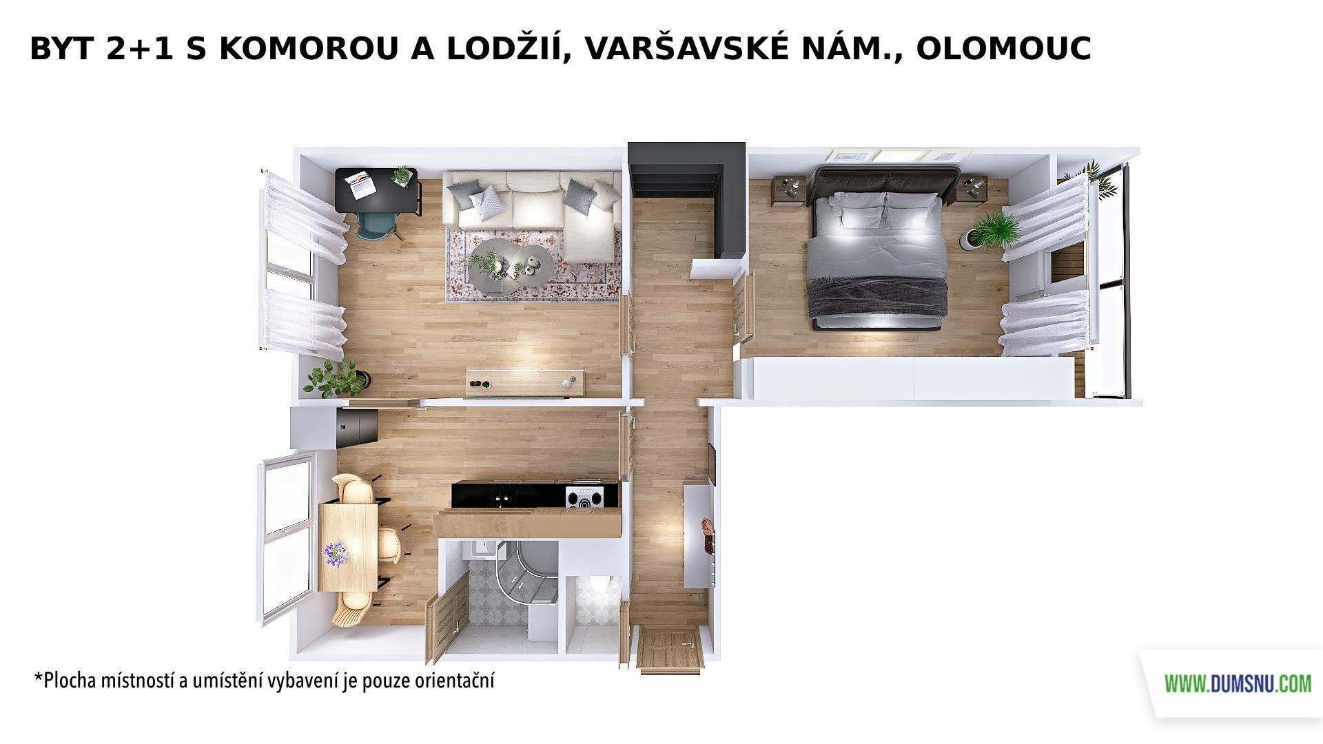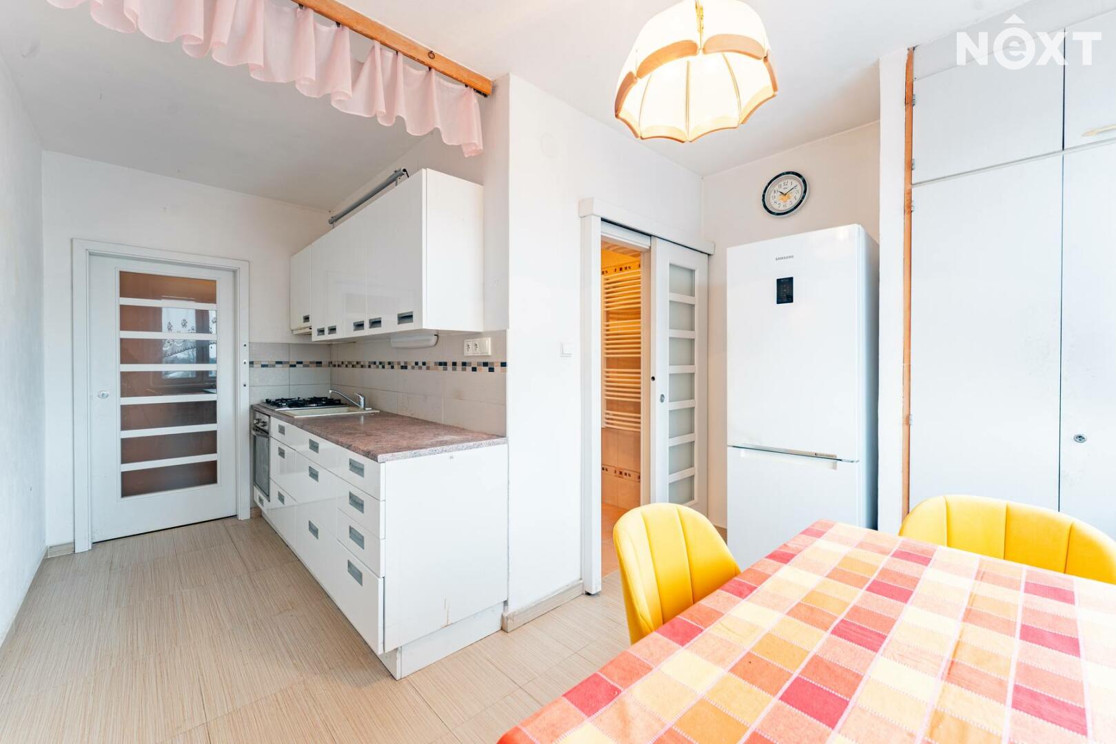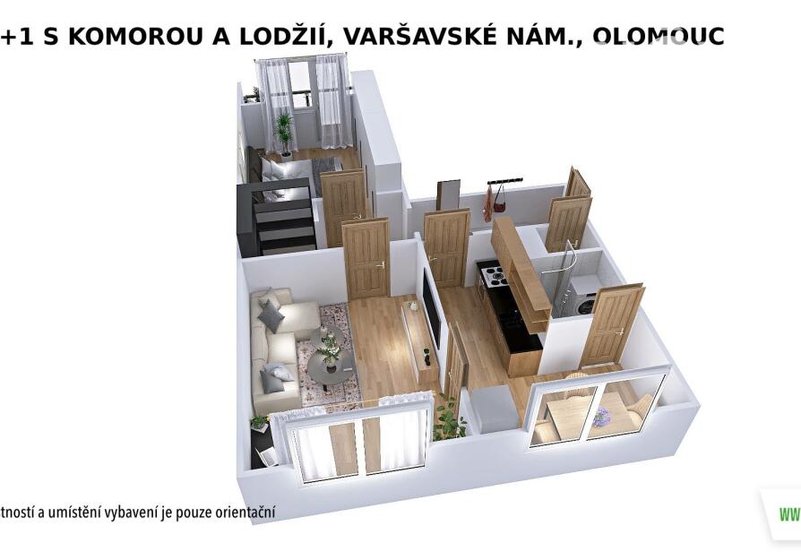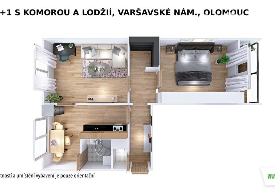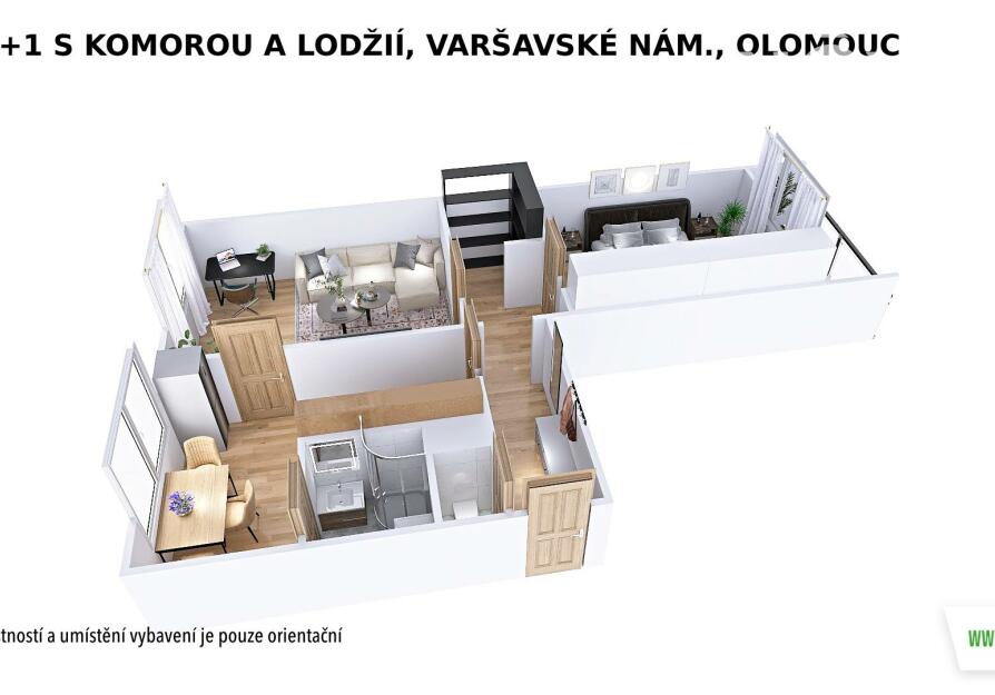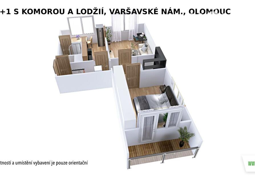 Praktická dispozice nabízí vstup z chodby do všech místností – kuchyně, dvou neprůchozích pokojů i komory, která skvěle poslouží jako úložný prostor. Příjemným bonusem je lodžie (4 m2) orientovaná na jih, která nabízí výhled do zeleně.