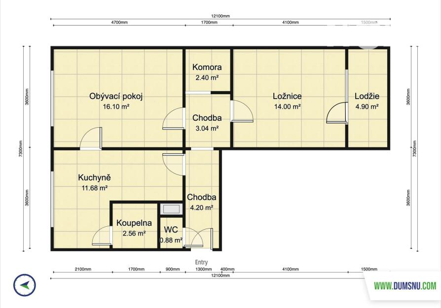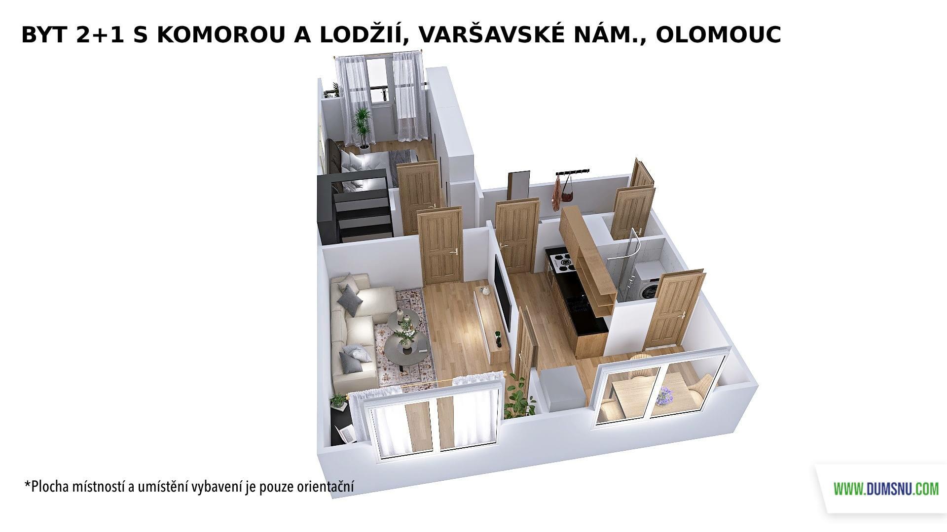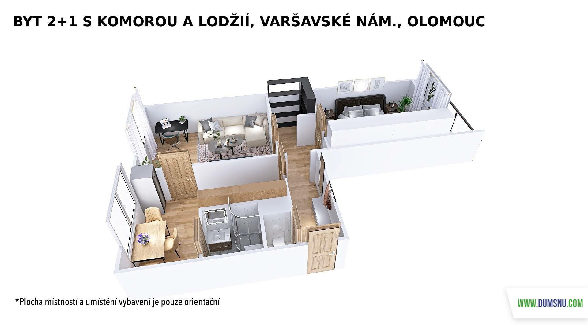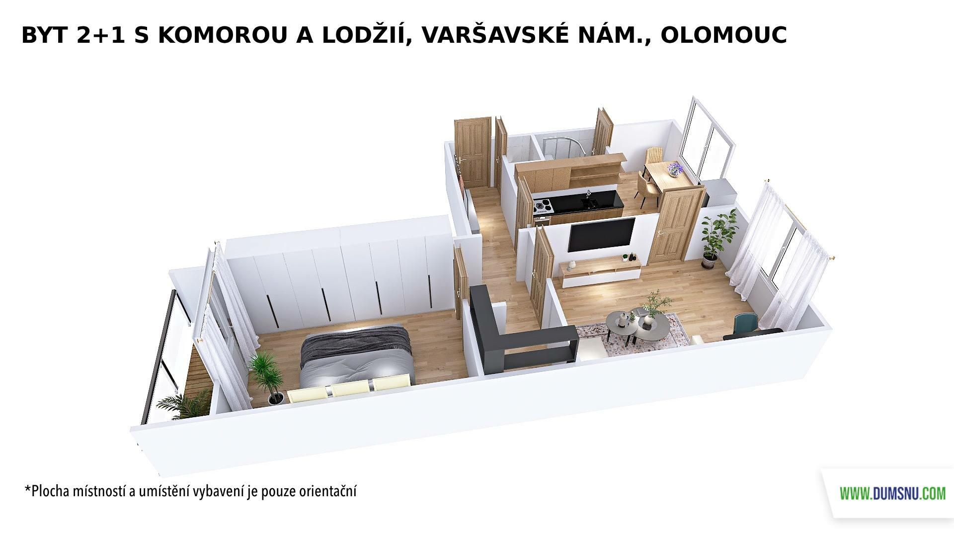 Praktická dispozice nabízí vstup z chodby do všech místností – kuchyně, dvou neprůchozích pokojů i komory, která skvěle poslouží jako úložný prostor. Příjemným bonusem je lodžie (4 m2) orientovaná na jih, která nabízí výhled do zeleně.